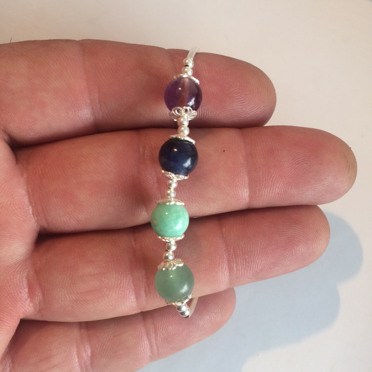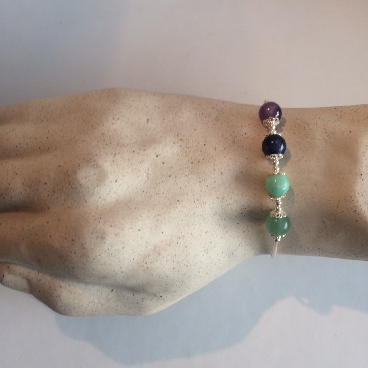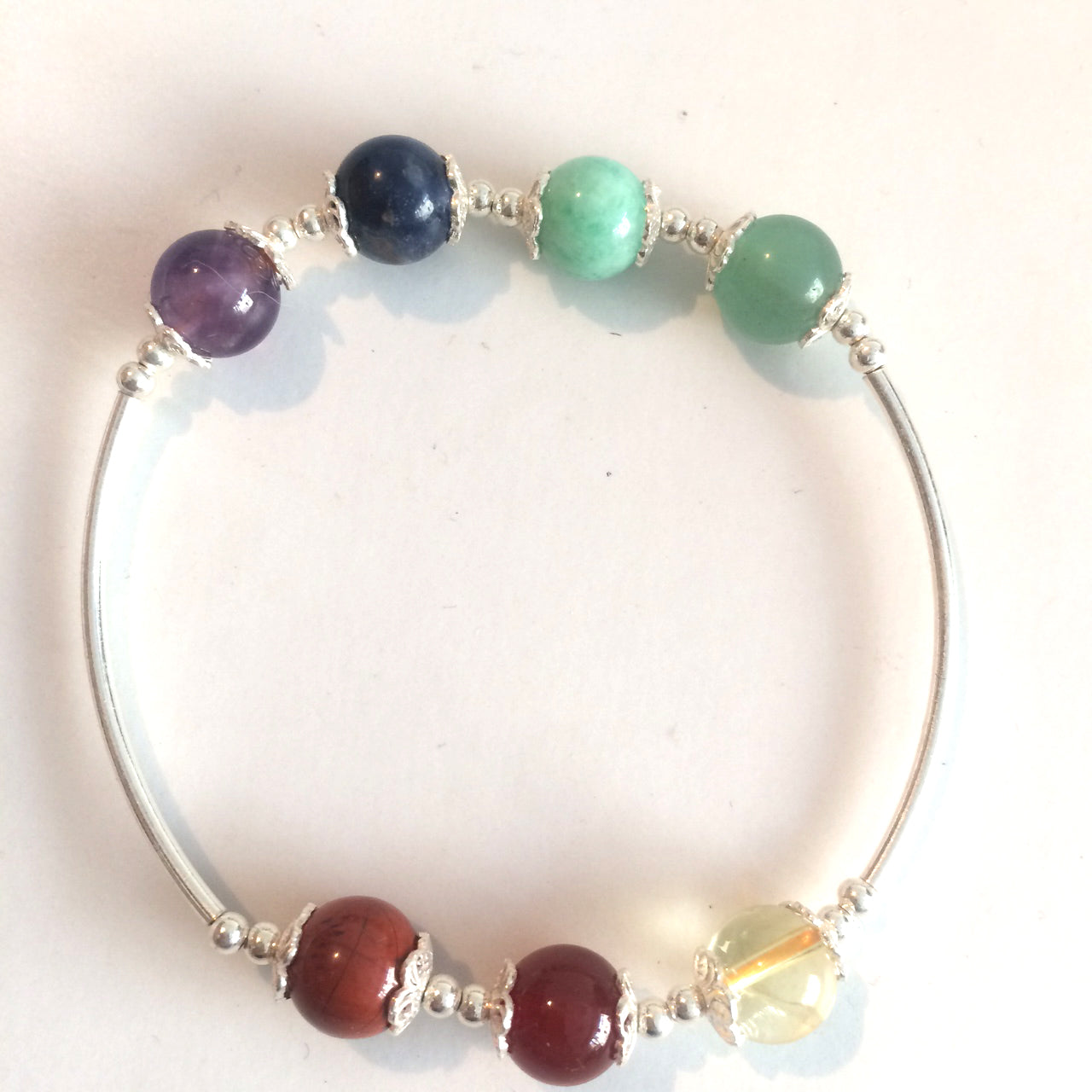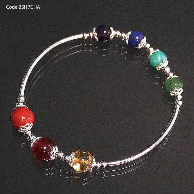 Bracelet '7 chakras', avec perles de 8 millimètres et tubes 100% Argent. Disponible de 17 à 21 cm de long.