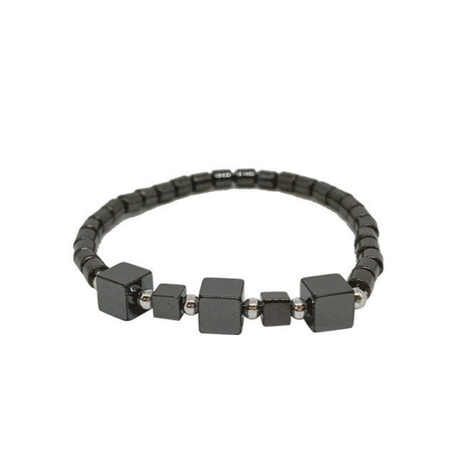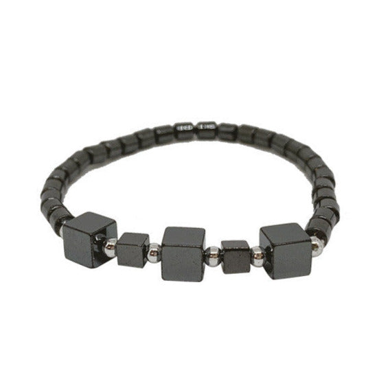 Bracelet en perle d'hématite en forme de tube ou de carré/cube de 4 à6 mm. Disponible de 17 à 21 centimètres. Monté sur élastique haute résistance !