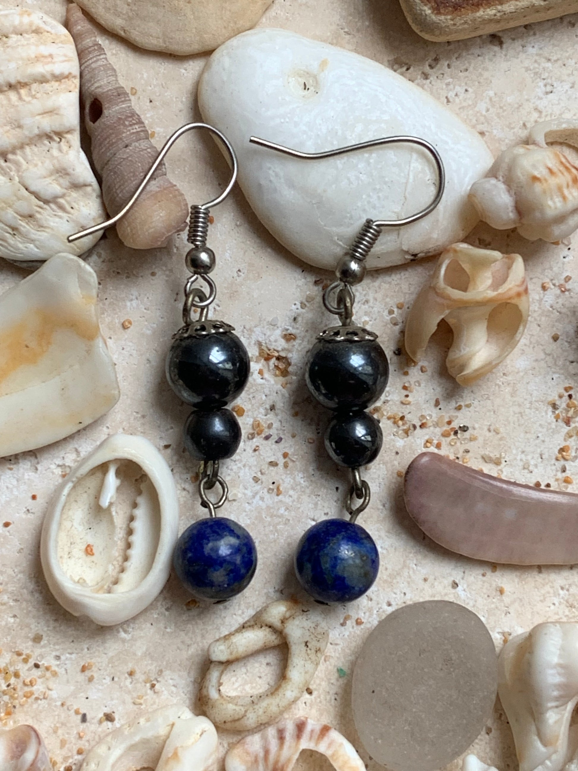 💎 Type de minéral : Exemple en photo en hématite et lapis lazuli - Composé à la main avec 2 perles fixes et 1 perle articulée, pour un effet de mouvement délicat.