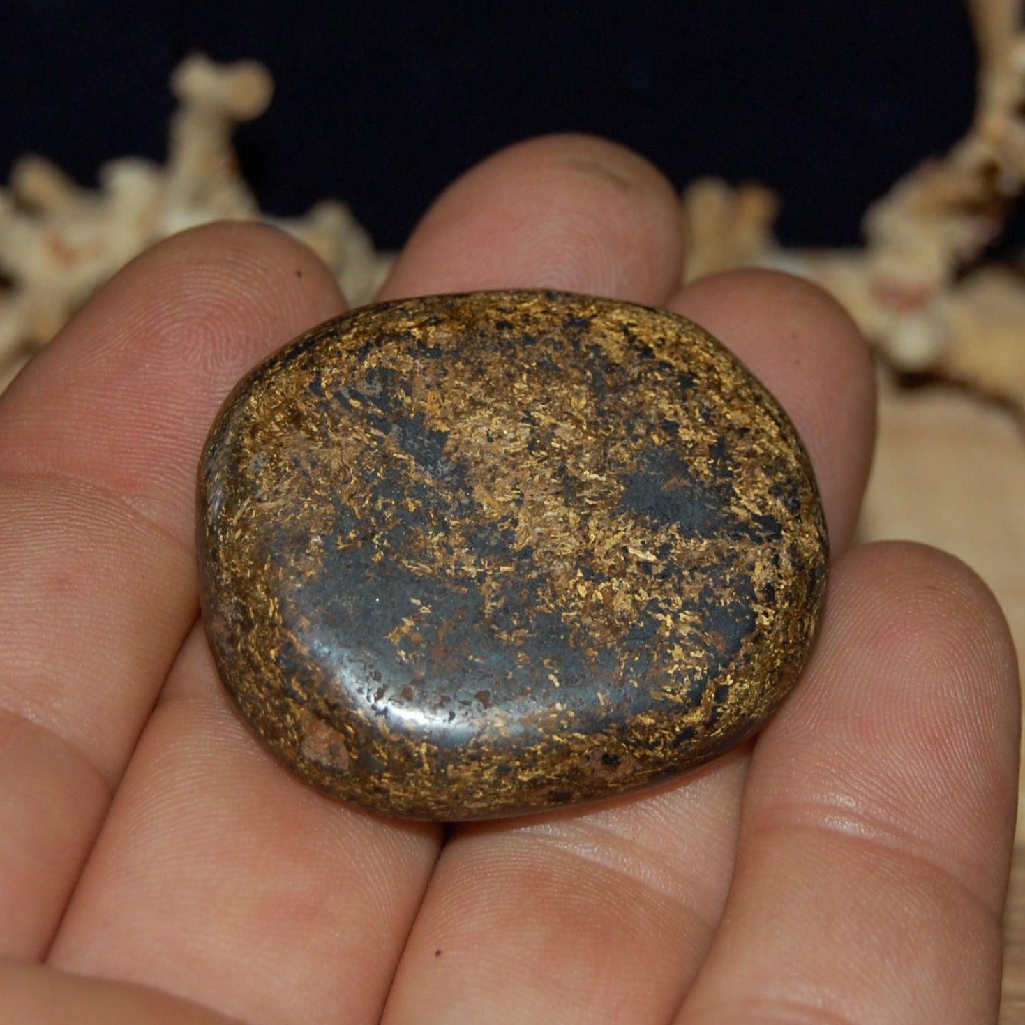 Bronzite, galet/ pierre plate de 40 x 30 x 10mm - 20 gr. Superbe petit galet !