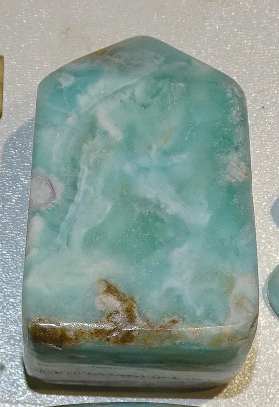 Vertus / Lithothérapie | - Calme et sérénité 🌊 - Favorise la communication et l’expression - Apaise le stress et les tensions émotionnelles |