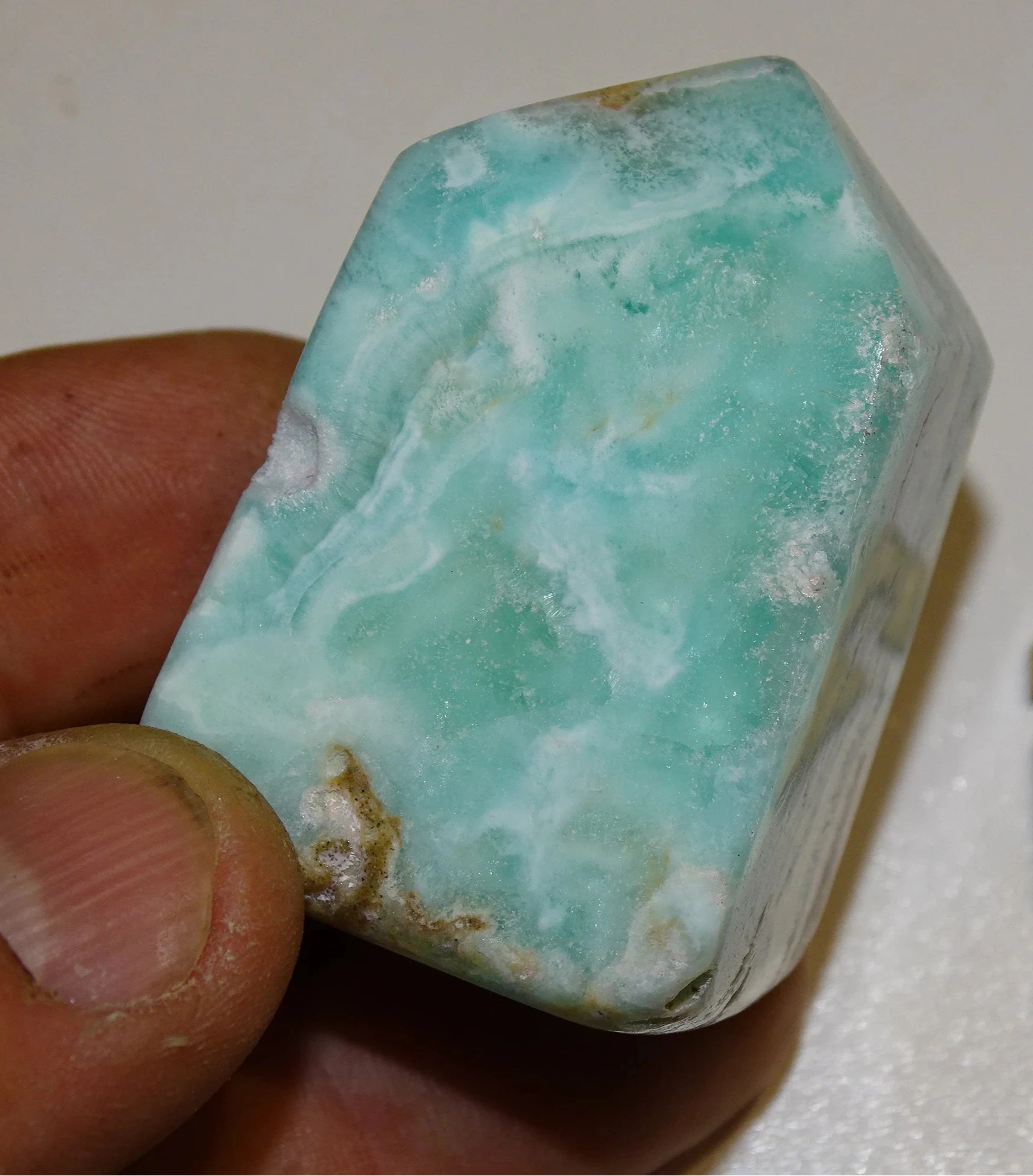 Calcite Aragonite Bleue, pointe/ laser de 50 x 30 x 30mm - 25 grammes. Superbe petite pièce !