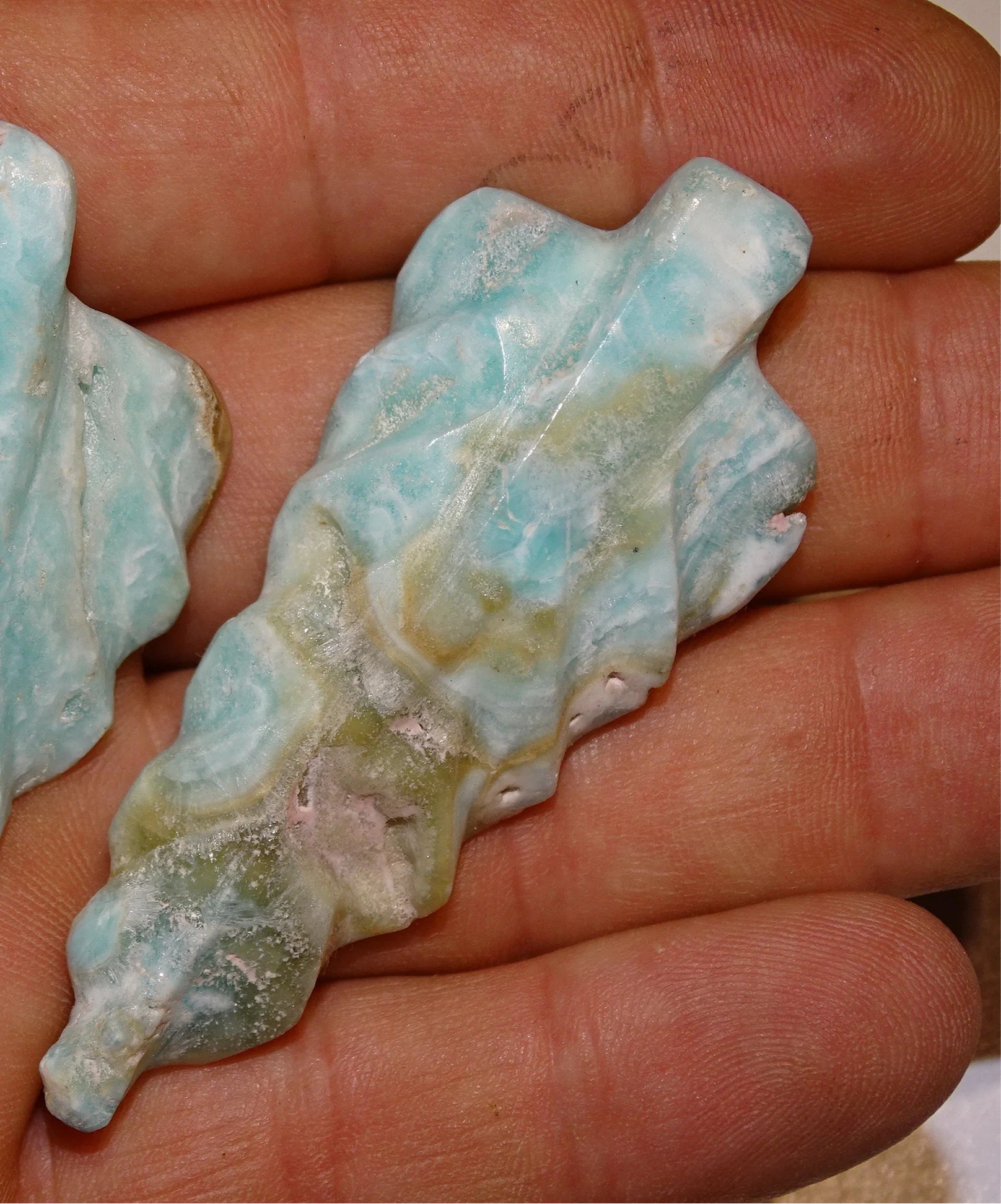 Calcite Aragonite Bleue, superbe feuille de 70 x 30 x 10mm - 20 grammes. Superbe pièce !