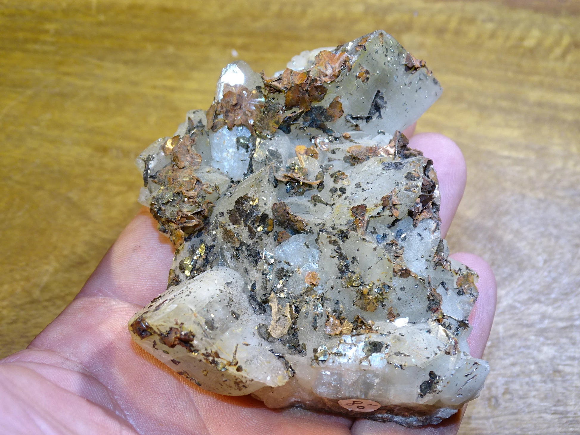 + Pyrite (potentielle) : Couleur dorée plus claire et brillante que la chalcopyrite.