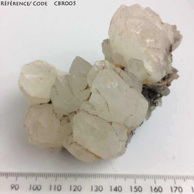 La pièce est constituée principalement de Calcite blanche brute (cristaux bien visibles, translucides à opaques, forme rhomboédrique typique).