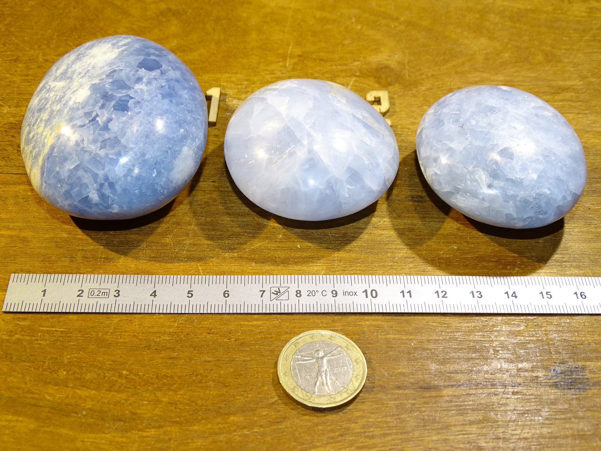 Calcite bleue, spécimens de galets XL au choix, de 50 x 40 x 30mm - 35 à 50 gr. environ !