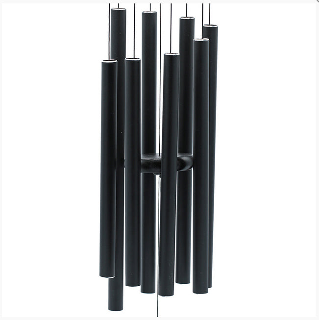 Carillon à vent avec huit tubes noirs qui forment une gamme musicale en 528 hertz (Mi/E majeur), une gamme ultra relaxante et très douce ! 95 centimètres - 740 grammes.