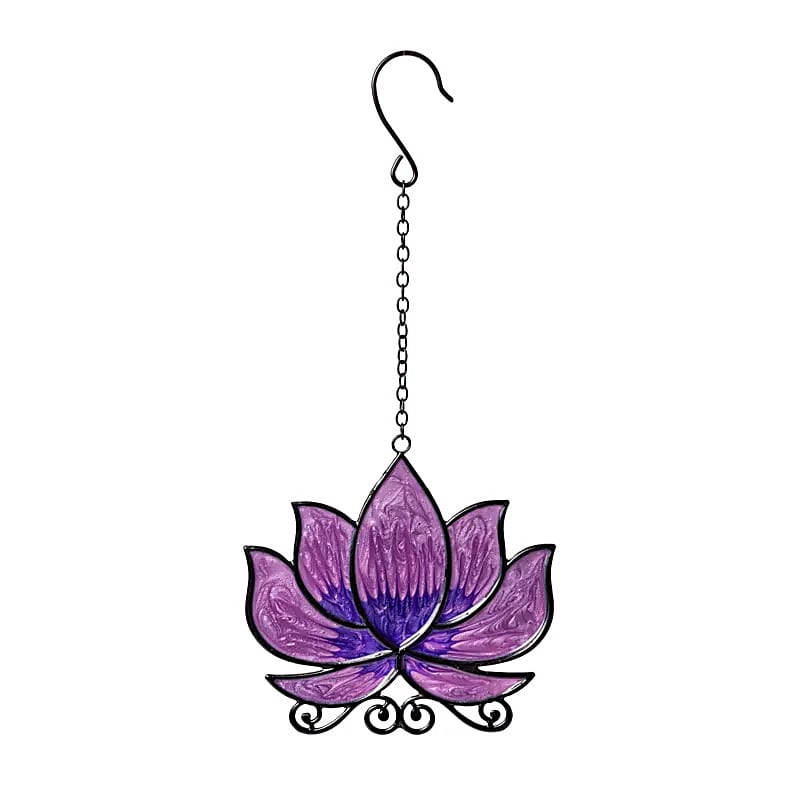 Suspension décorative pour fenêtre en forme de lotus, couleur violette, 24 x 12 cm - 40 gr. / Superbes effets quand la lumière traverse le verre !