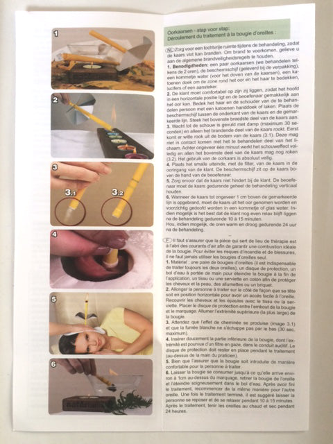 * Le nettoyage des oreilles à la bougie est une thérapie complémentaire et ne remplace pas un avis médical professionnel. En cas de doute sur votre santé, veuillez consulter votre médecin, votre thérapeute ou votre pharmacien.