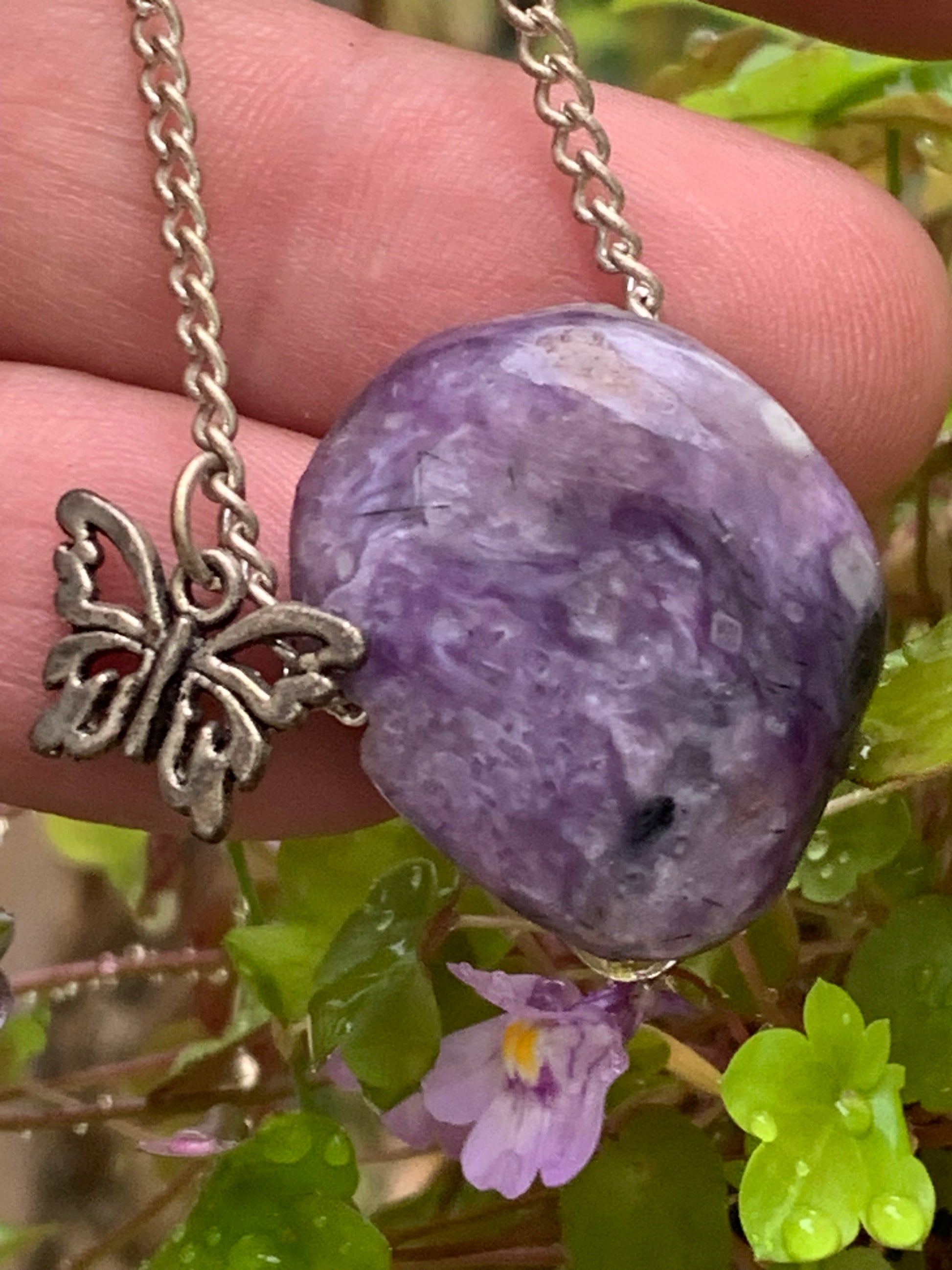 Charoïte, pendentif en Argent 925 de 27mm de hauteur x 21 de largeur x 10 d'épaisseur. Vendu avec cordon réglable de couleur noire !