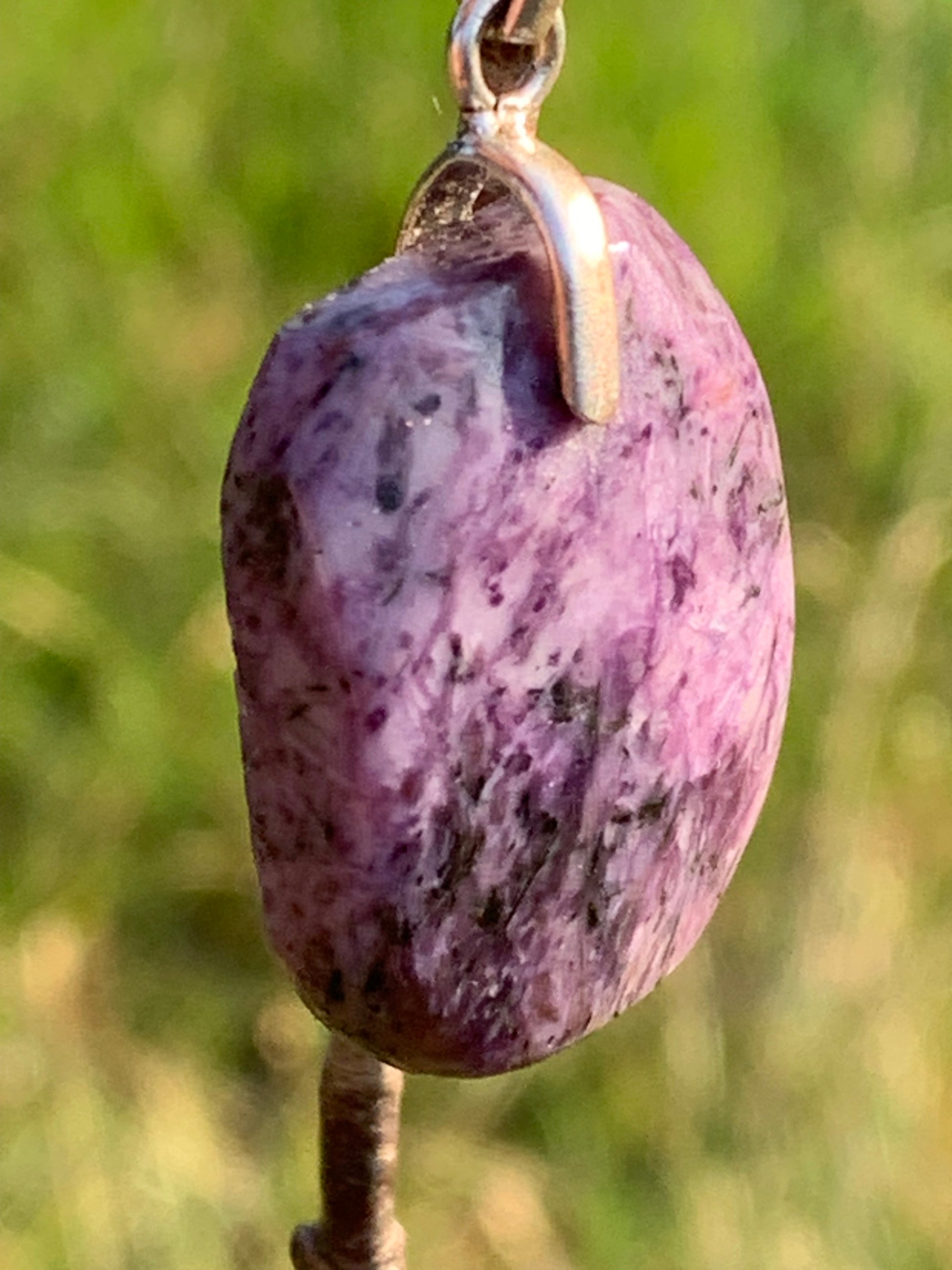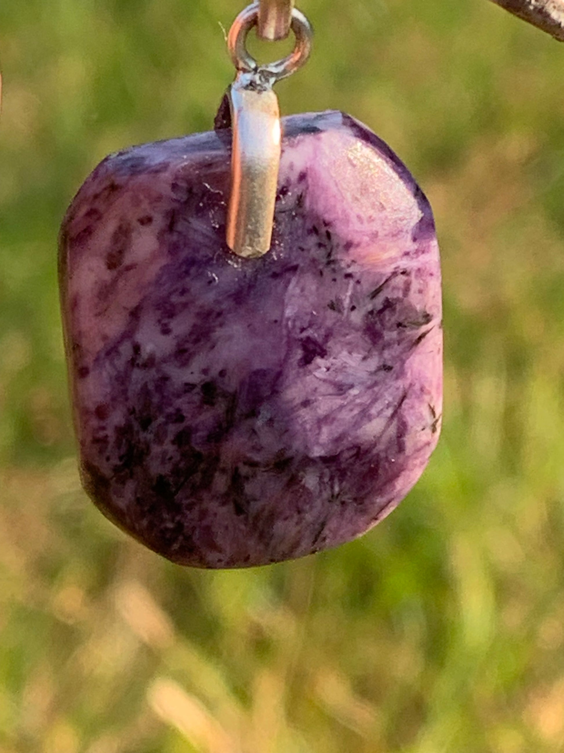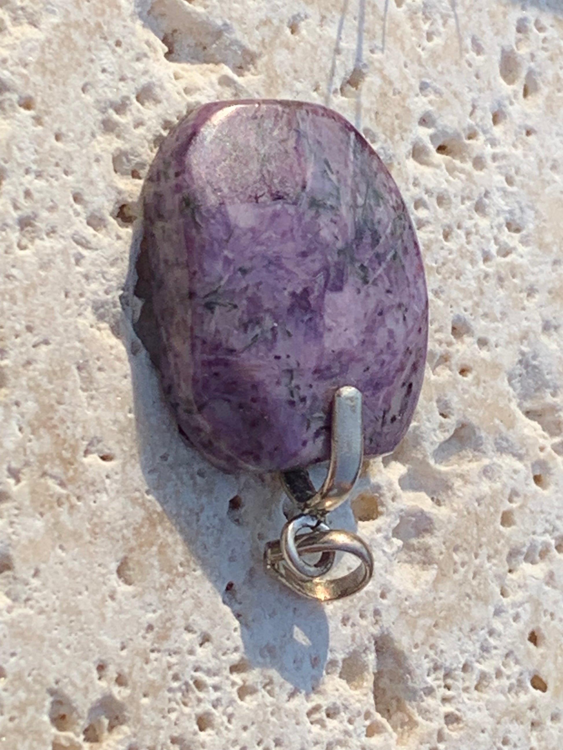 Charoïte, pendentif en cabochon percé de 35mm x 20x 7. Vendu avec cordon noir réglable !