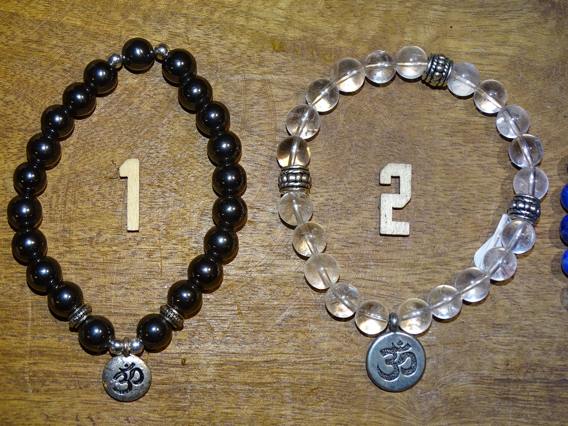 Collection de bracelets avec 3 charms au choix : Lotus Om ou Bouddha... En perle de 8mm + Médaille gravée de couleur argenté. Longueur au choix de 17 à 21 cm. Fait main par Zen Curiosity !