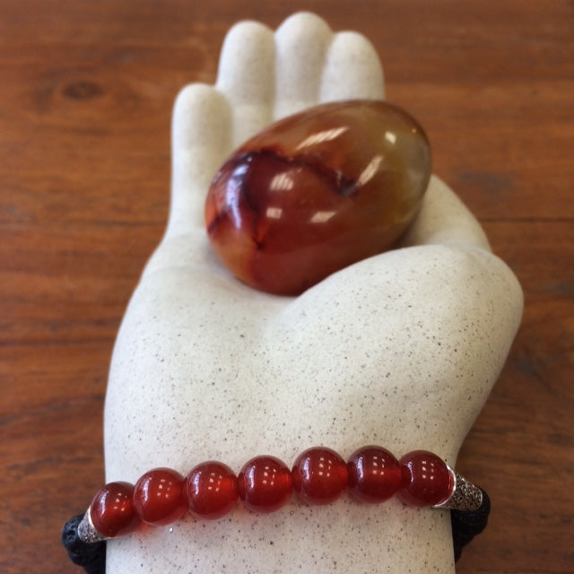 Bracelet Collection 'Ethnique', perles de lave 8 mm + 7 semi-précieuses, longueur 17-21 cm, fait main par Zen C° !