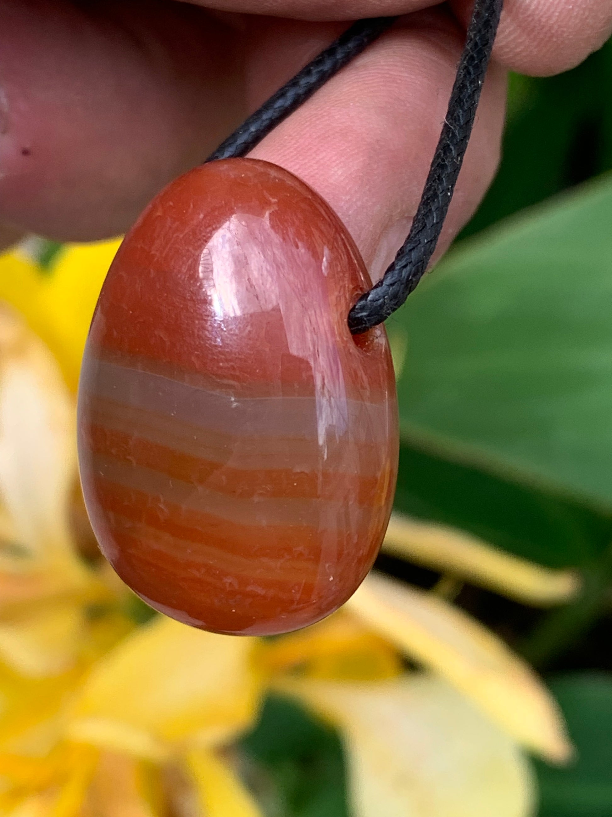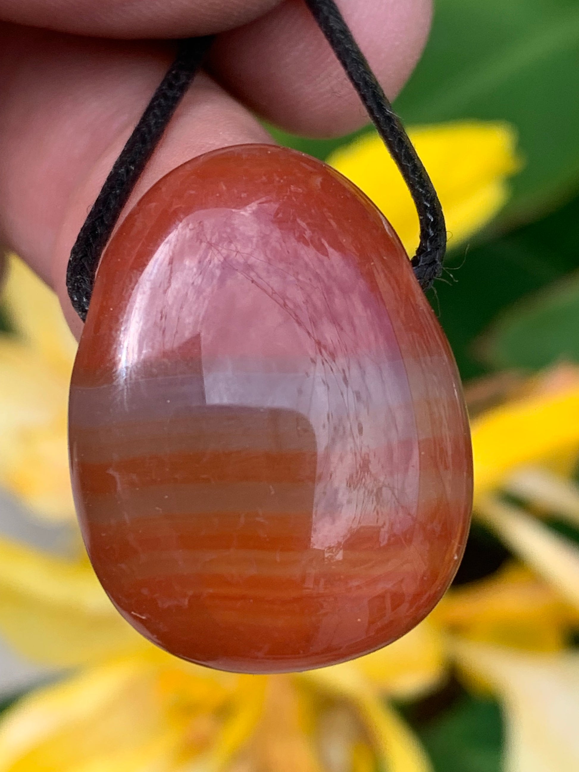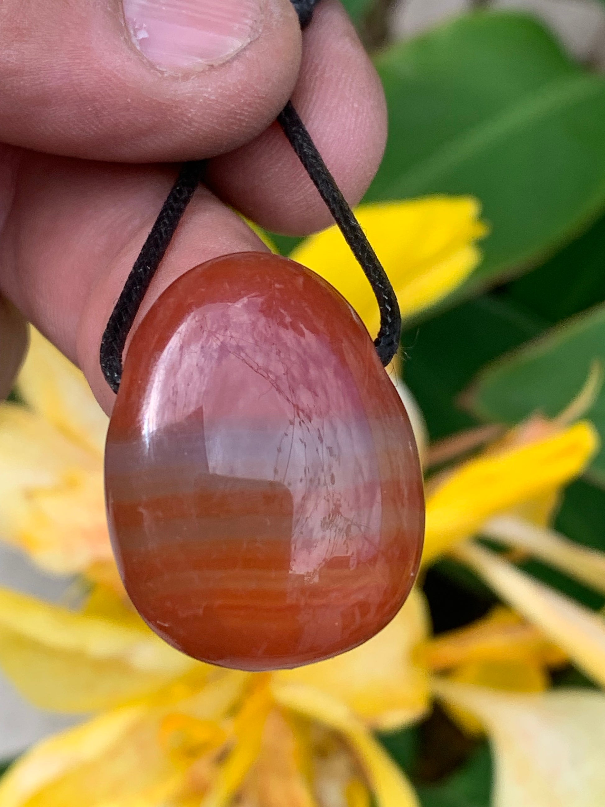 Cornaline, pendentif de 31mm de hauteur x 23 de largeur x 12 d'épaisseur. Vendu avec cordon réglable de couleur noire !
