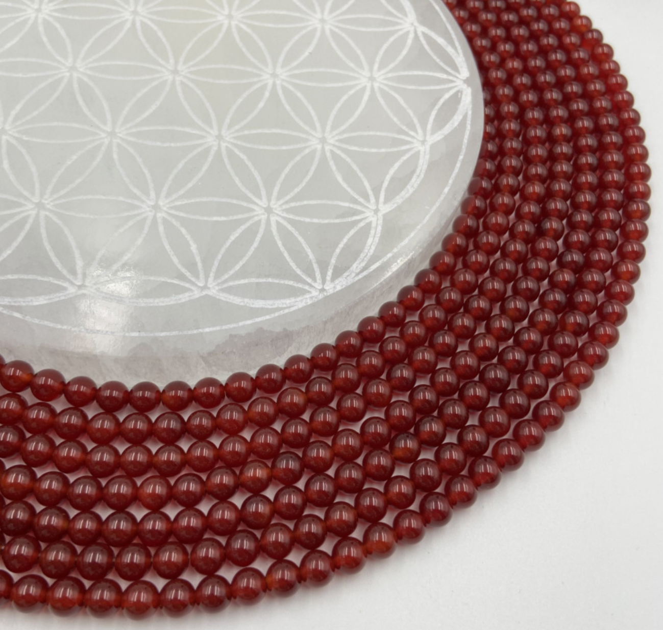 Cornaline, perles rondes de 6 ou 8 mm. Vendu en fil de perle 38/39 cm, en bracelet de 17 à 21cm, en collier de 45 ou sautoir de 60cm. Qualité AA à AAA !