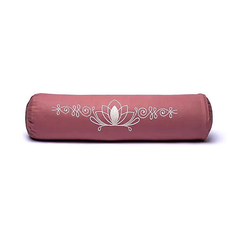 Coussin/ Bolster/ Traversin de Yoga ou Méditation en coton avec le motif du Lotus, de 60 centimètres de longueur x 16 de diamètre - 2,365 kilogrammes. Housse extérieure en coton ! La housse intérieure est remplis de graines de Sarrasin !