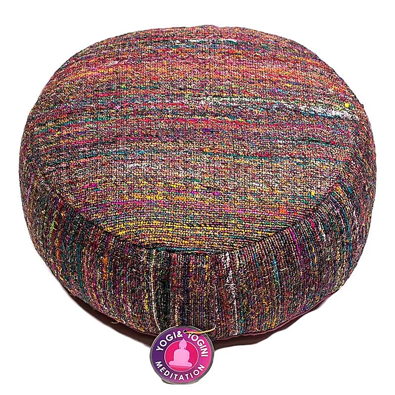 Coussin de Méditation ou de Yoga en soie grège. Taille 33 centimètres de diamètre x 13 centimètres de hauteur. 2300 grammes. De chez Yogi & Yogini, fait en Inde !