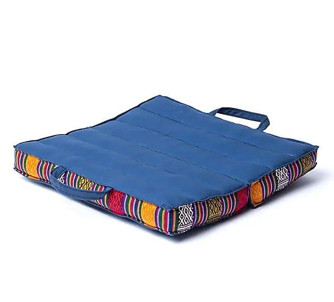 Coussin de méditation re-pliable pour un format 'voyage' pratique. Fabriqué avec amour et soin, ce coussin de méditation est non seulement très confortable, mais aussi un engagement envers la durabilité. 43x43x3.5 centimètres / 1230 grammes