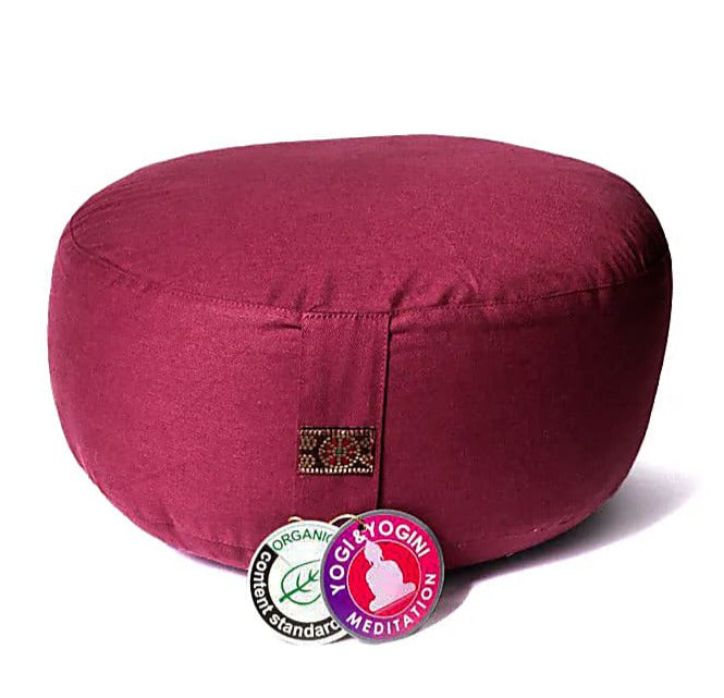 Coussin de Méditation/ Yoga, en coton biologique (OCS). 33 centimètres de diamètre x 17 centimètres de hauteur. 2300 grammes. De chez Yogi & Yogini, fait en Inde !