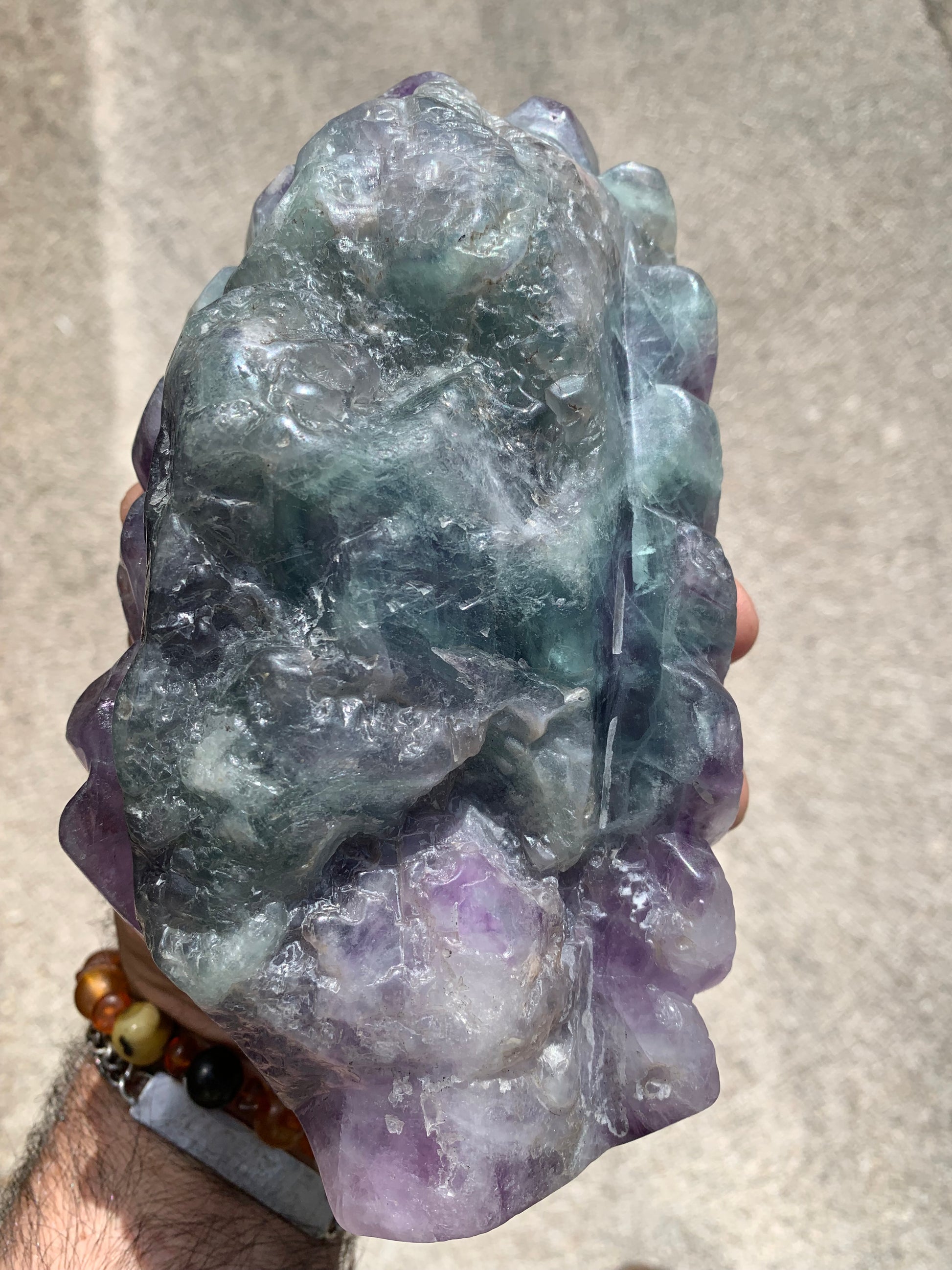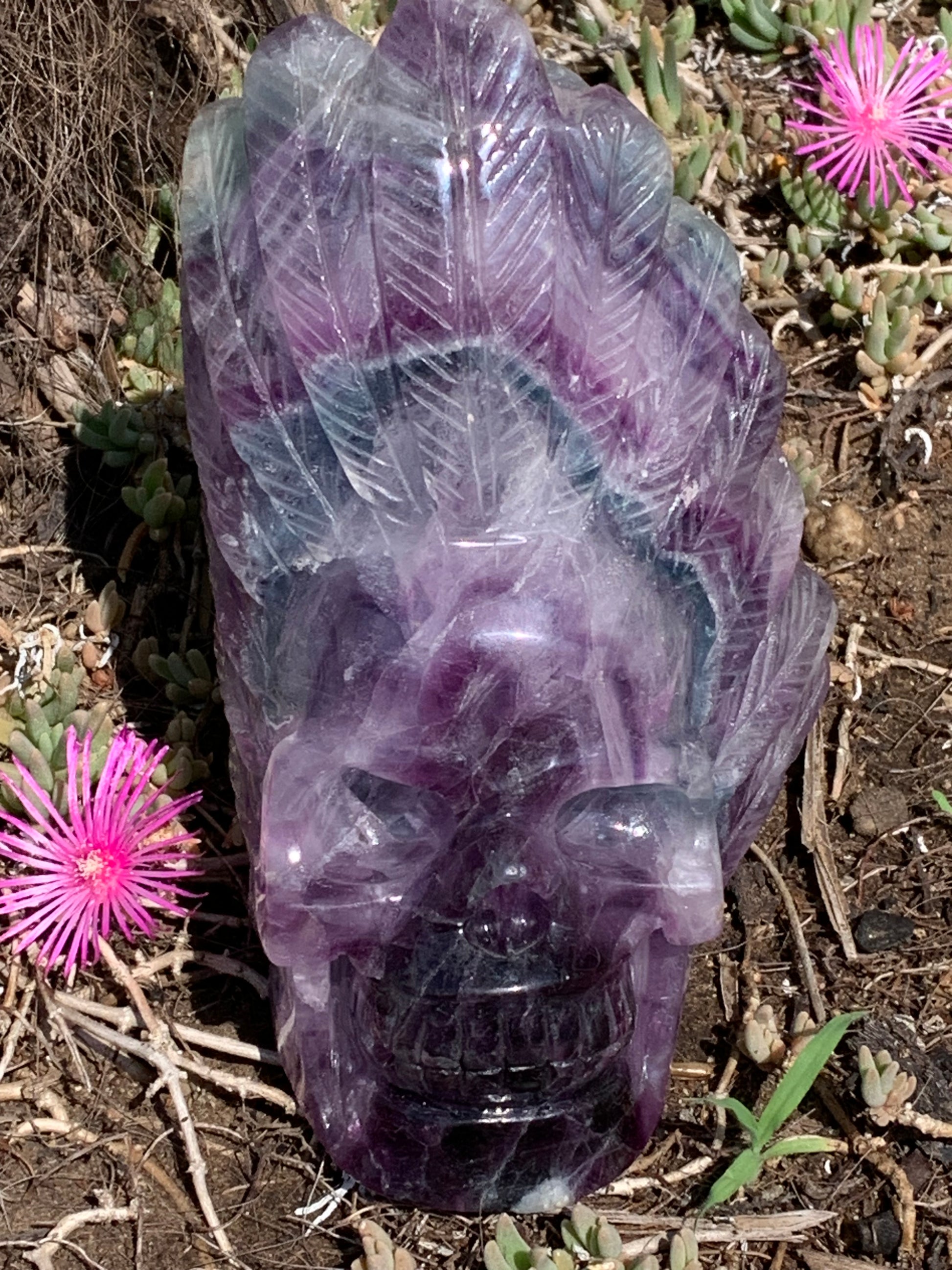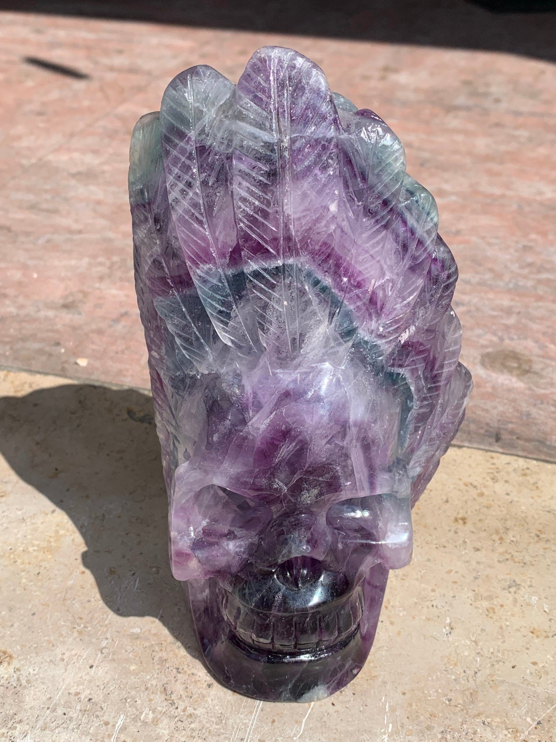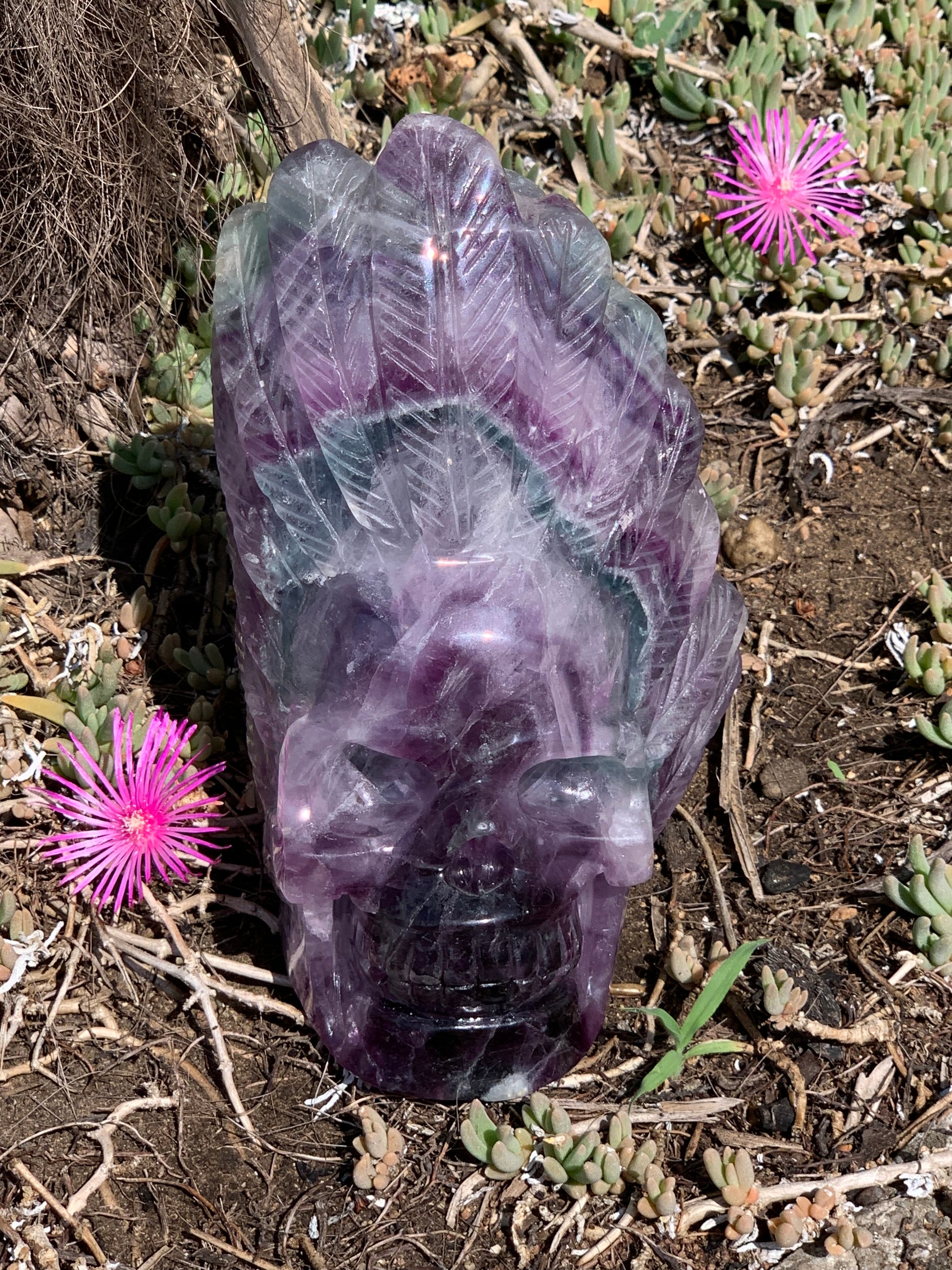 Crâne en Fluorite multicolore fait main, de 18cm x 10 x 9 / 1450 grammes. Belle qualité, de belles finitions, magnifique pièce !
