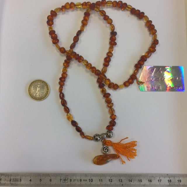 Création Gem & Zen, Mala de 108 perles en perle d'Ambre de 70 centimètres de longueur environ. Qualité AA à AAA, superbe pièce avec pochette de rangement offerte !