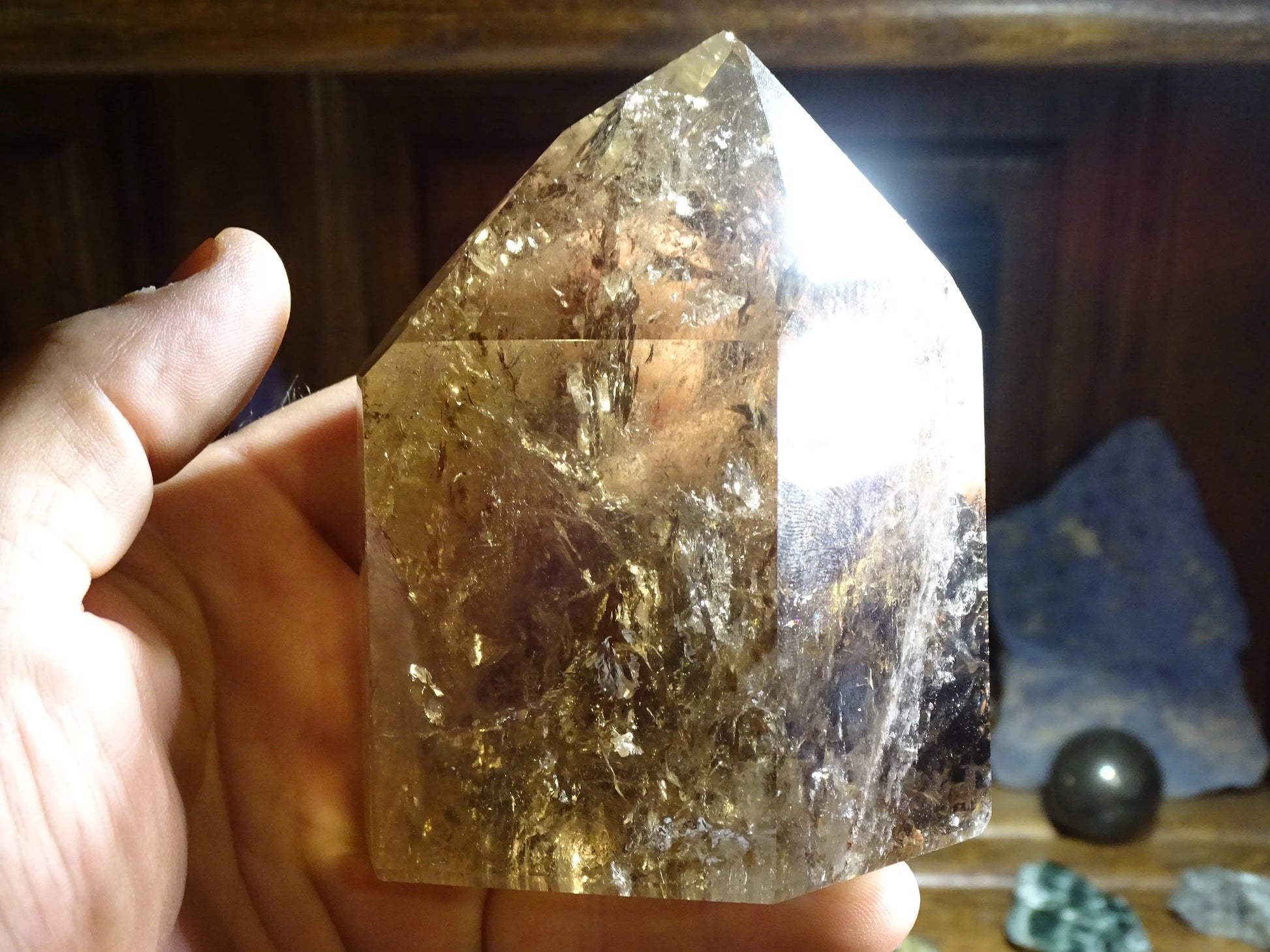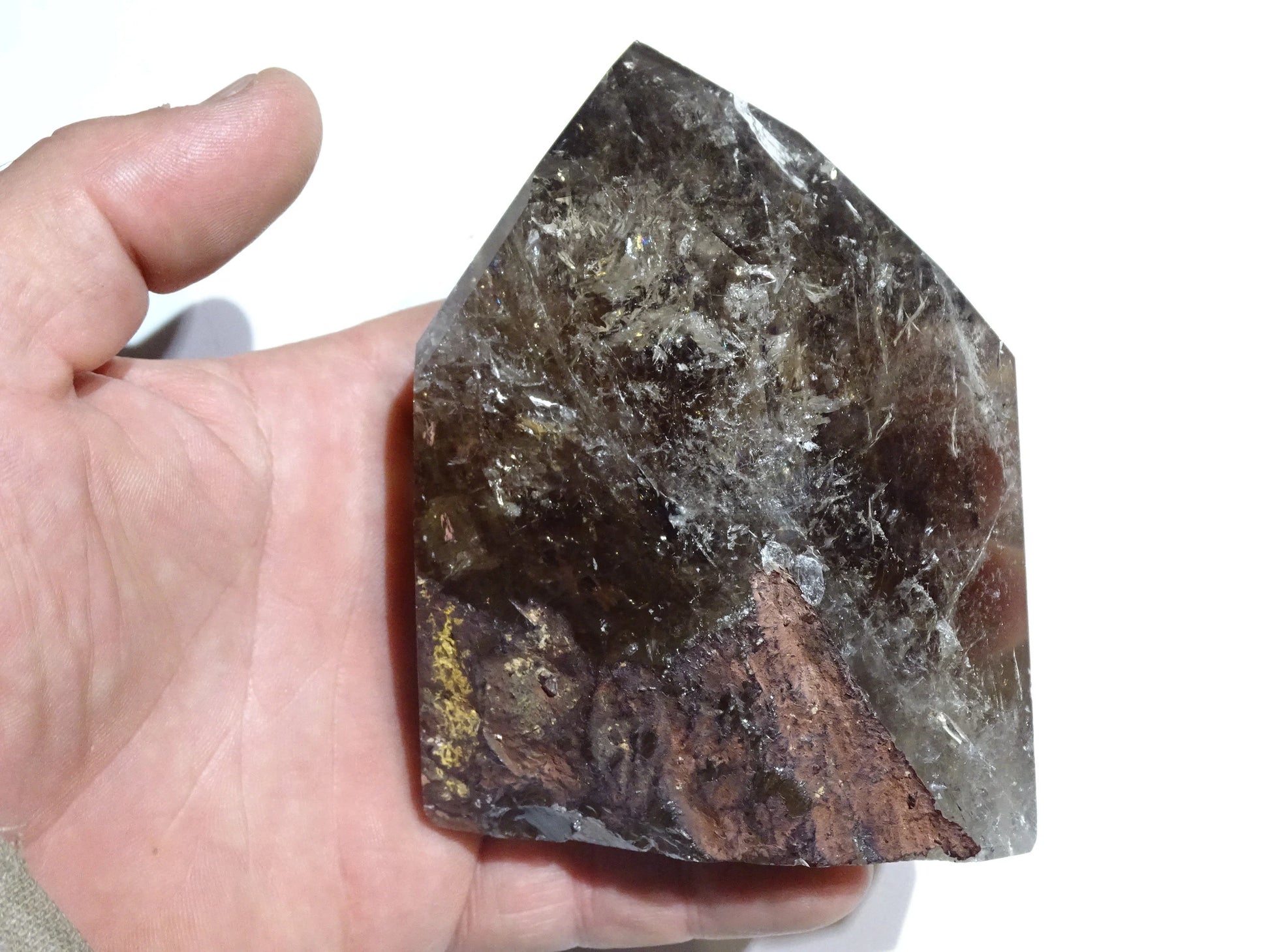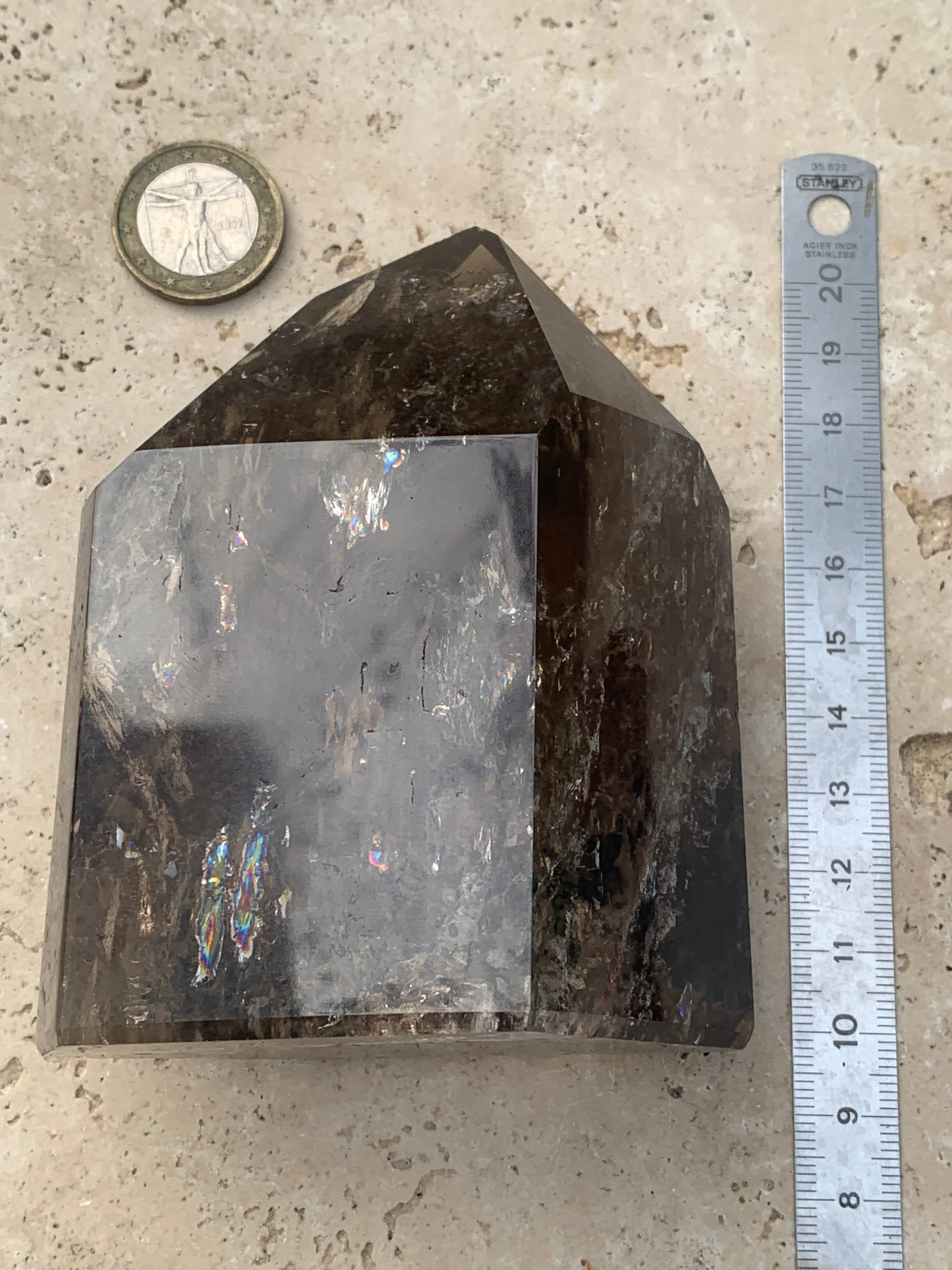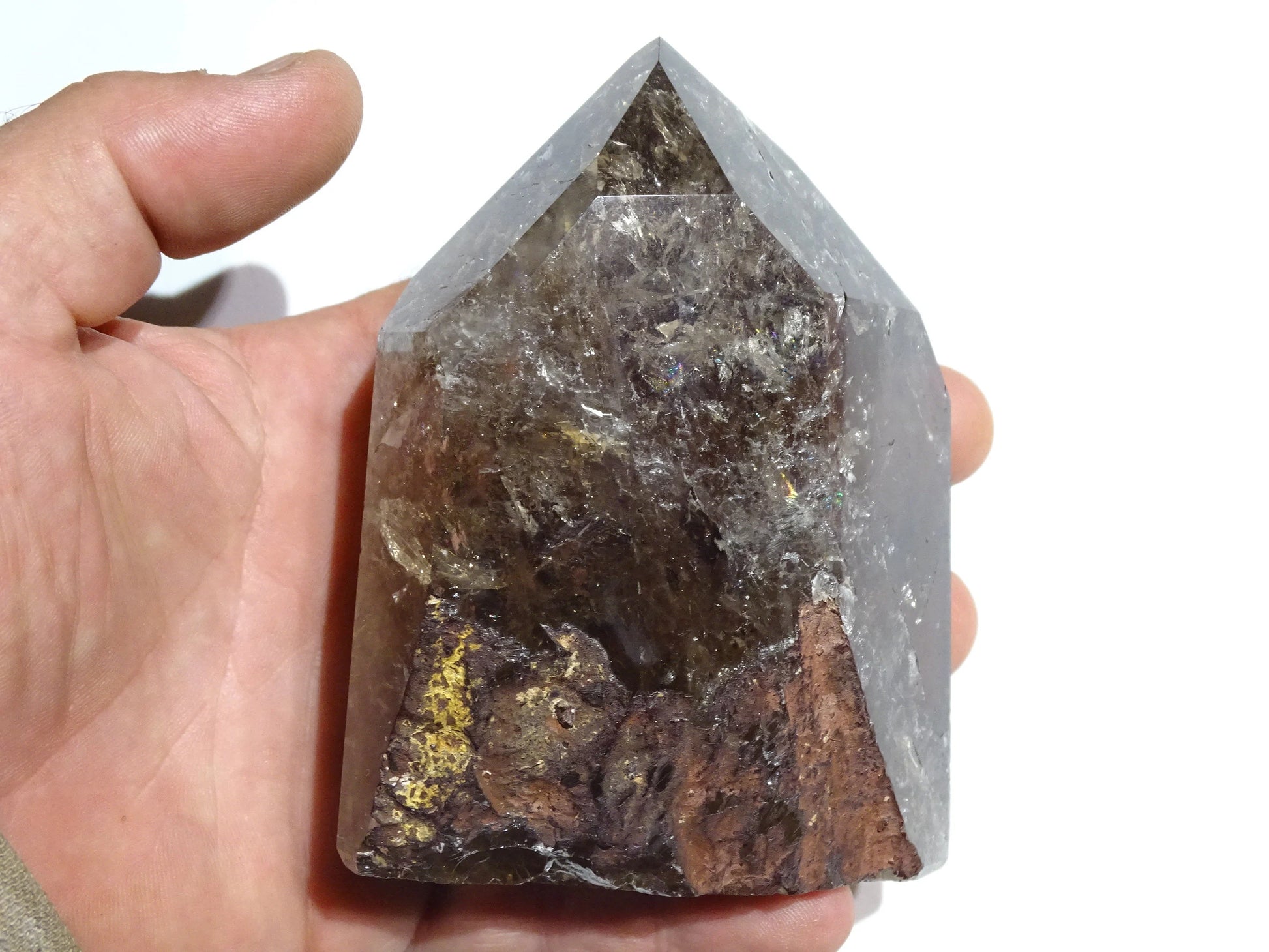 Cristal de roche fumé/ Quartz fumé, pointe laser de 105 x 82 x 49 mm - 553 grammes. Magnifique pièce pour exposition, lithothérapie, collection !