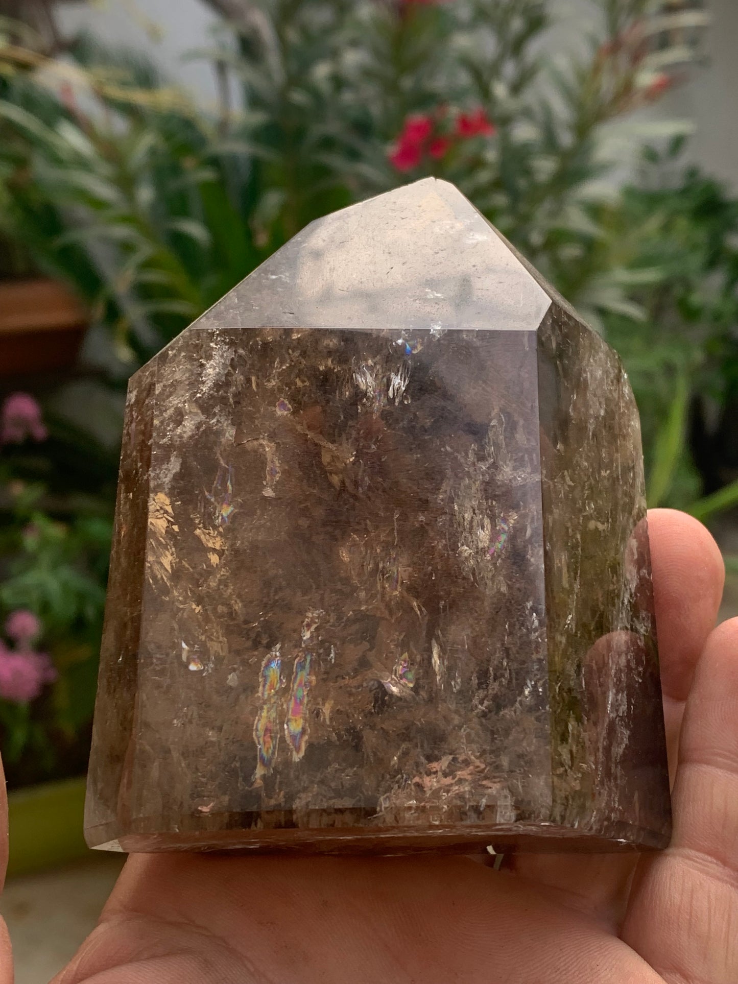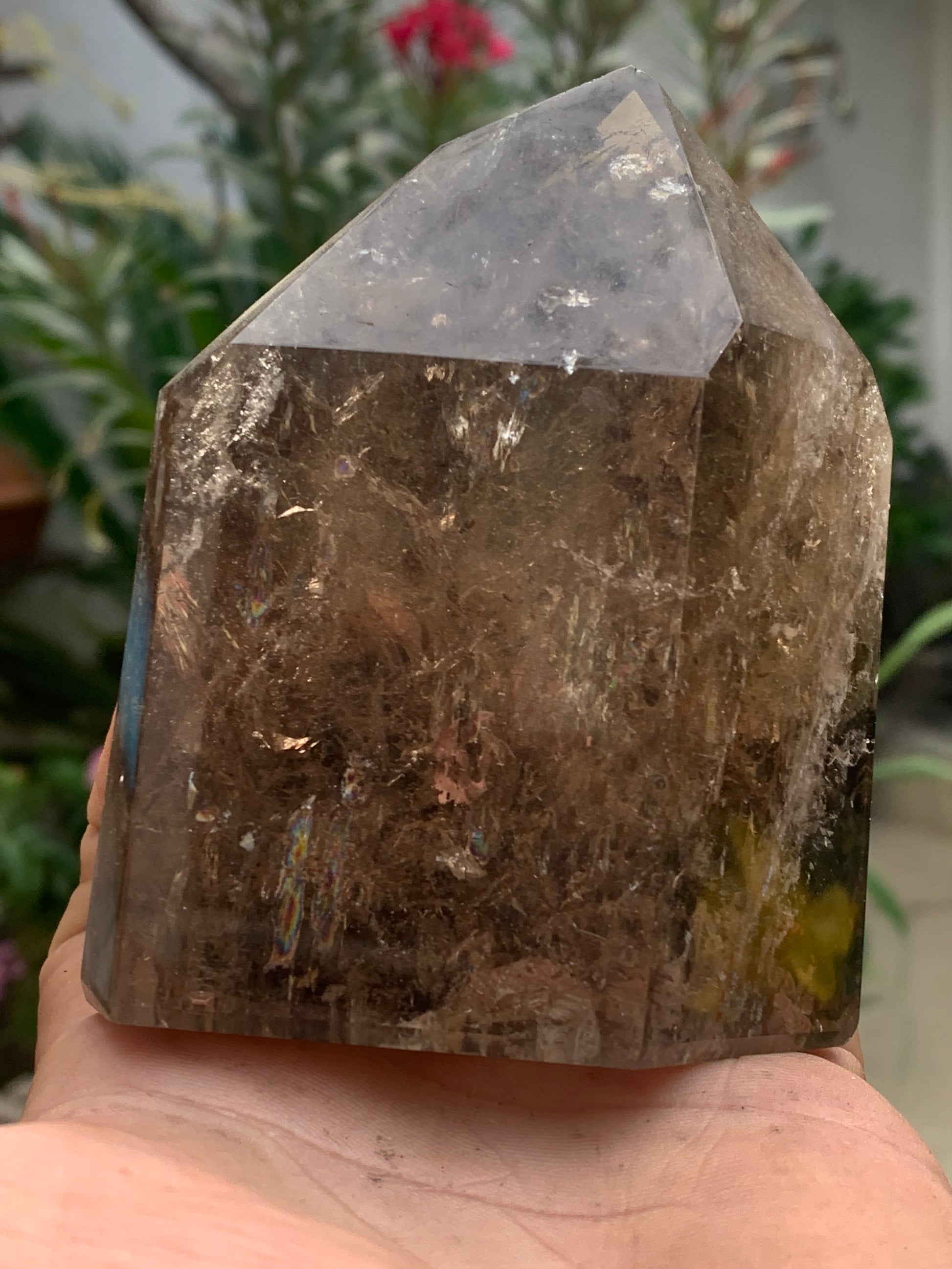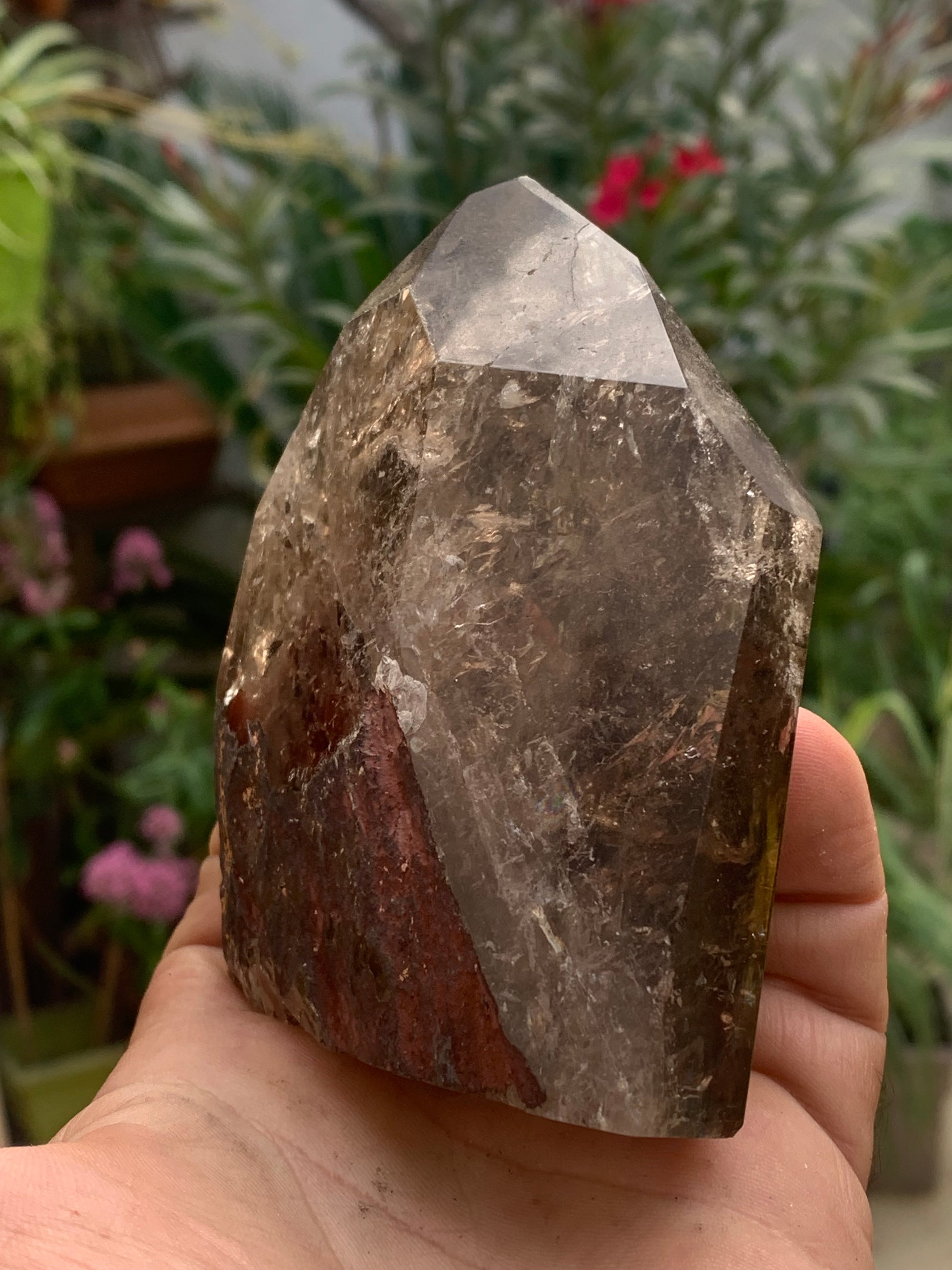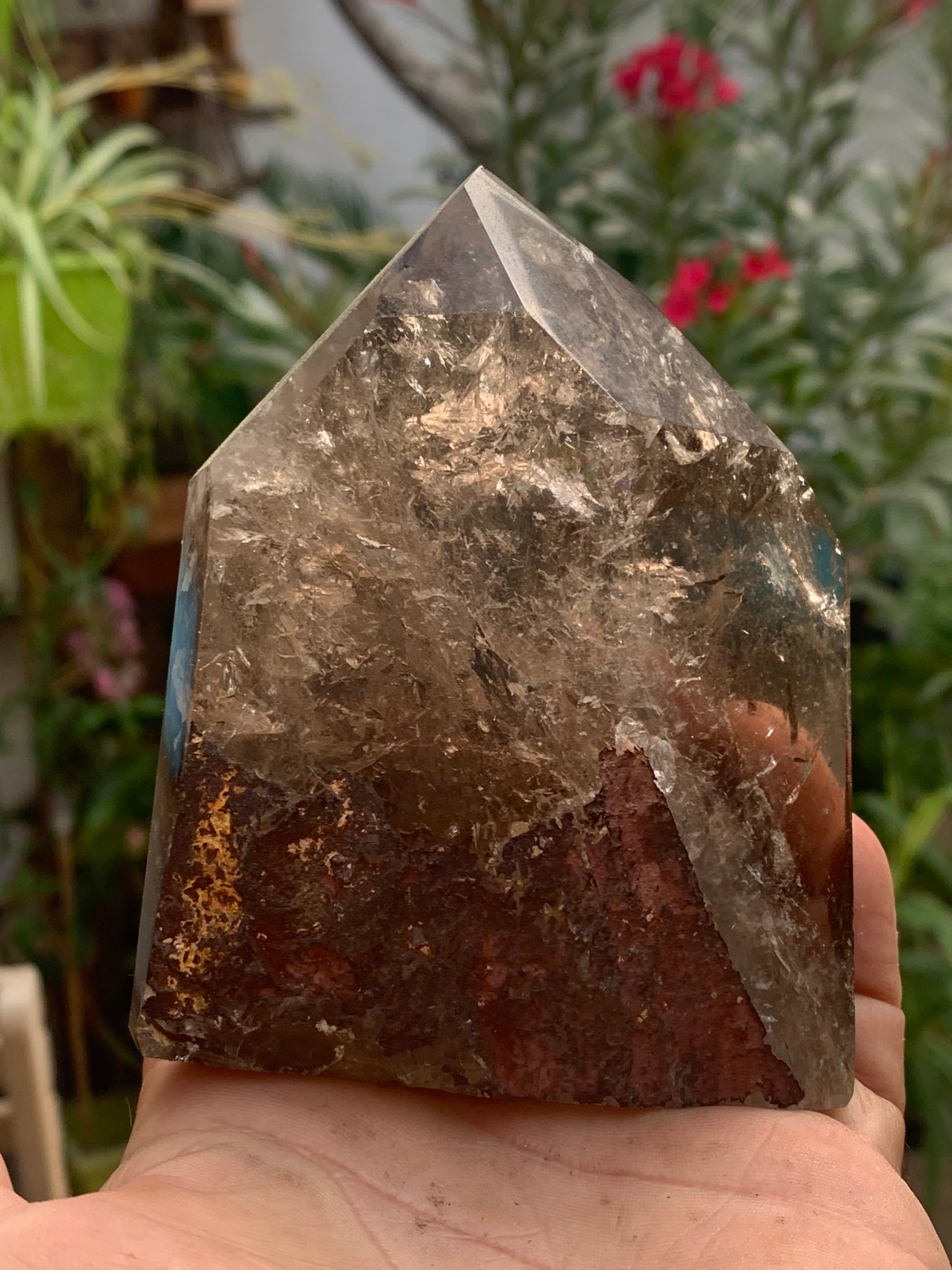 Cristal de roche fumé/ Quartz fumé, pointe laser de 105 x 82 x 49 mm - 553 grammes. Magnifique pièce pour exposition, lithothérapie, collection !