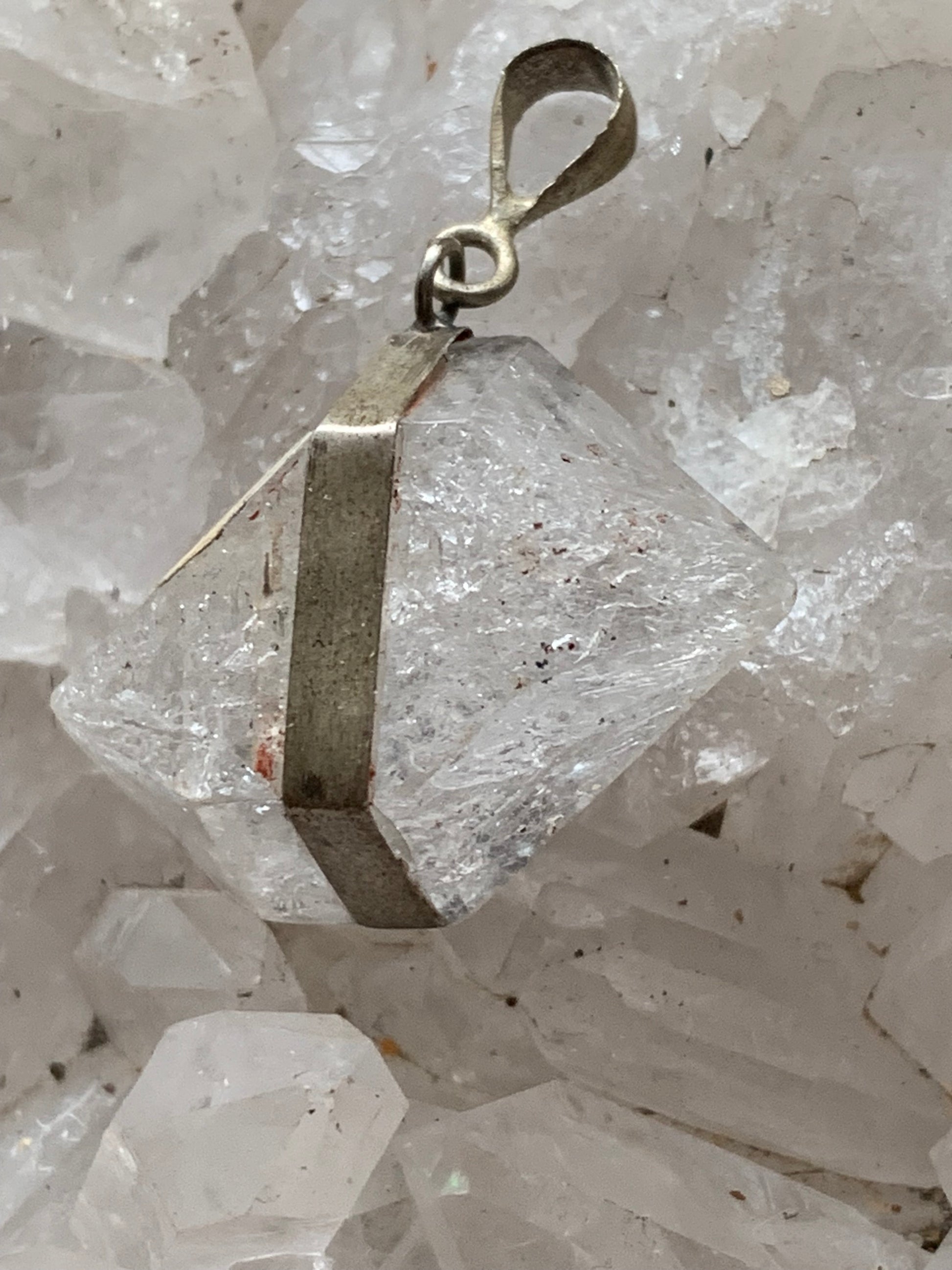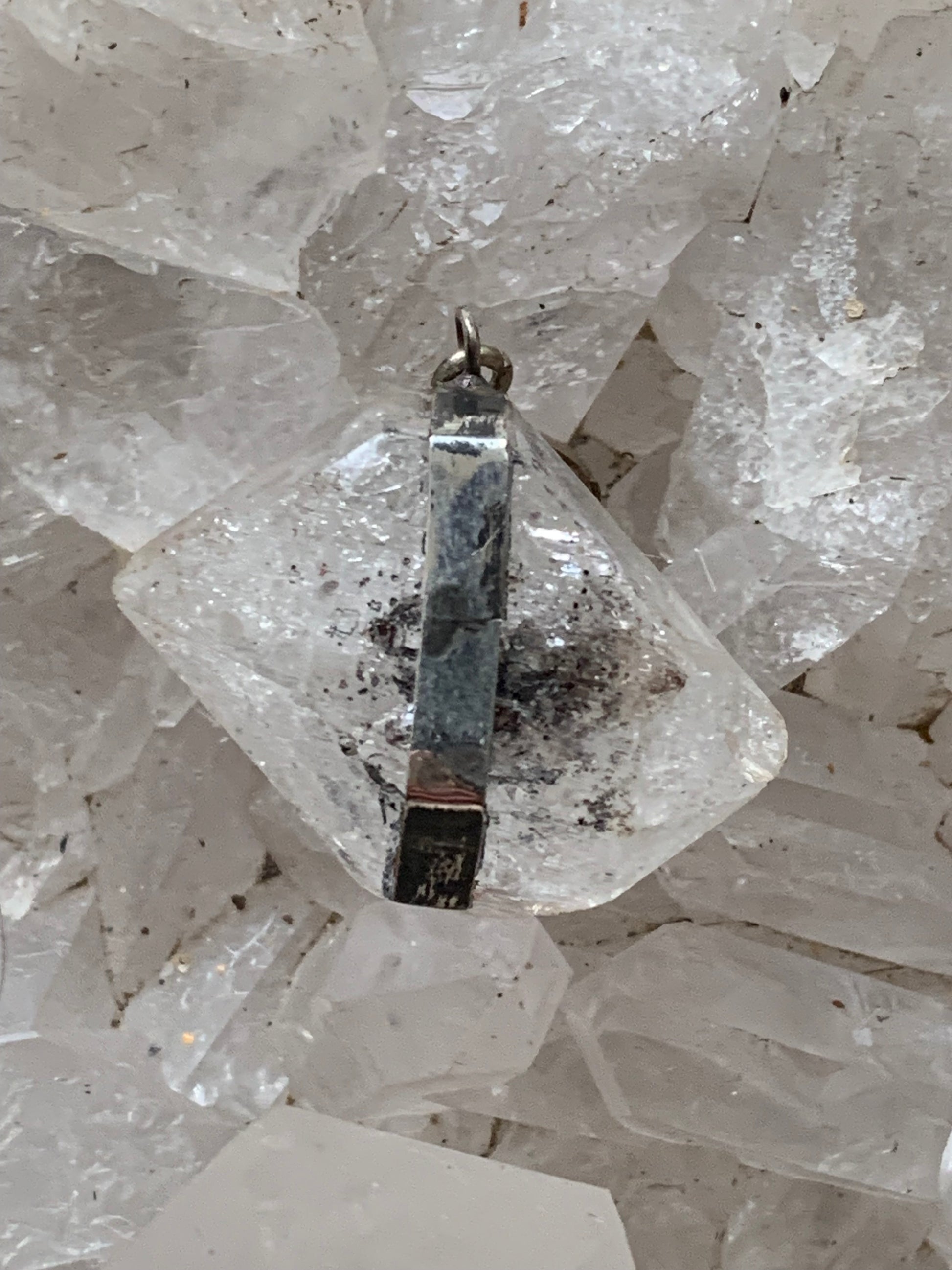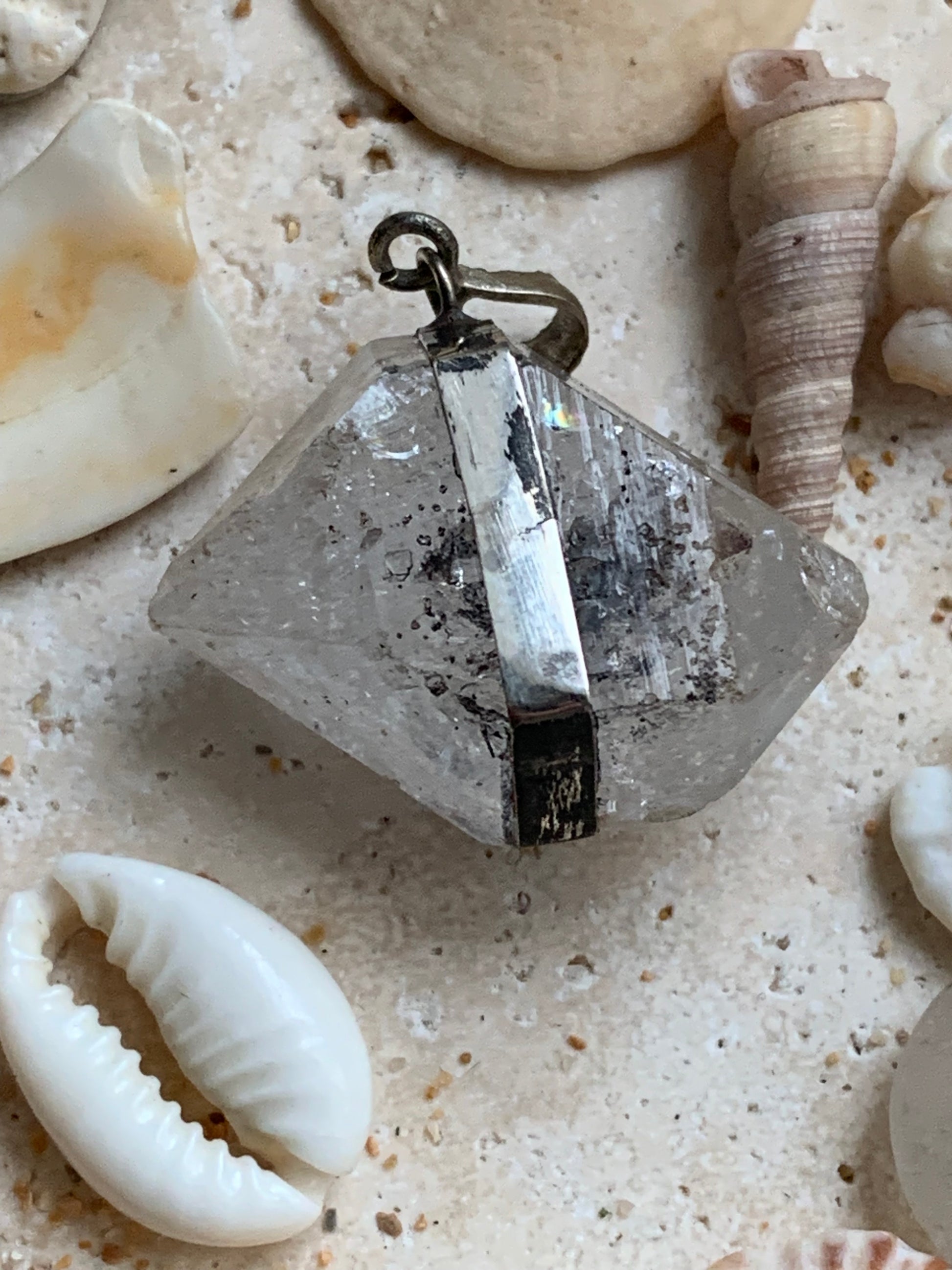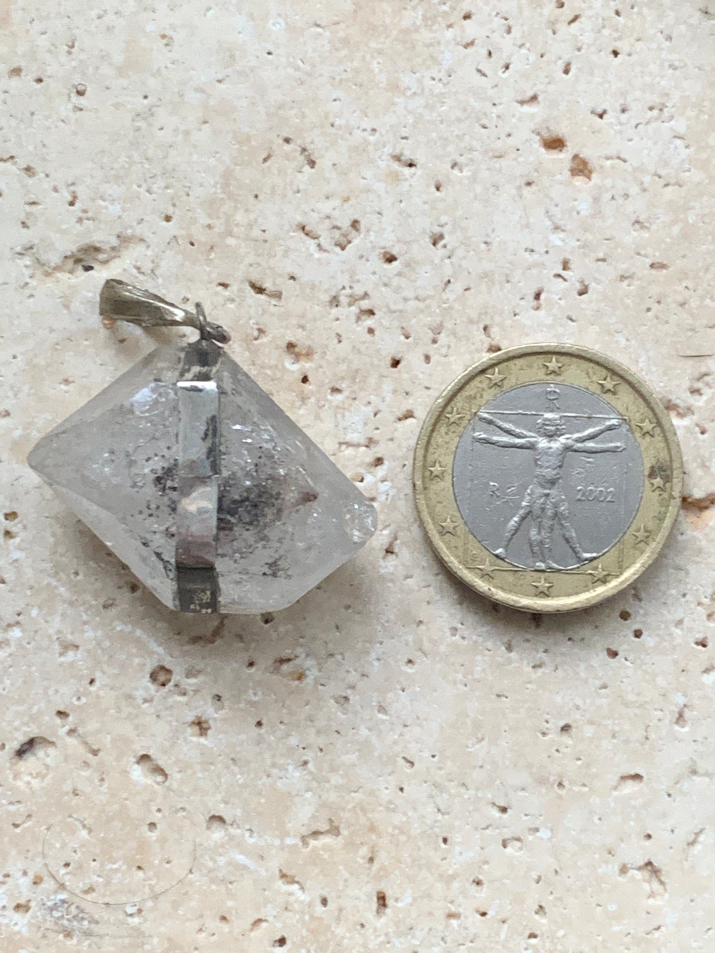 Cristal de roche Herkimer bi-déterminé, pendentif de 32mm x22 x12. Fait sur Argent 925. Vendu avec cordon réglable de couleur noire !