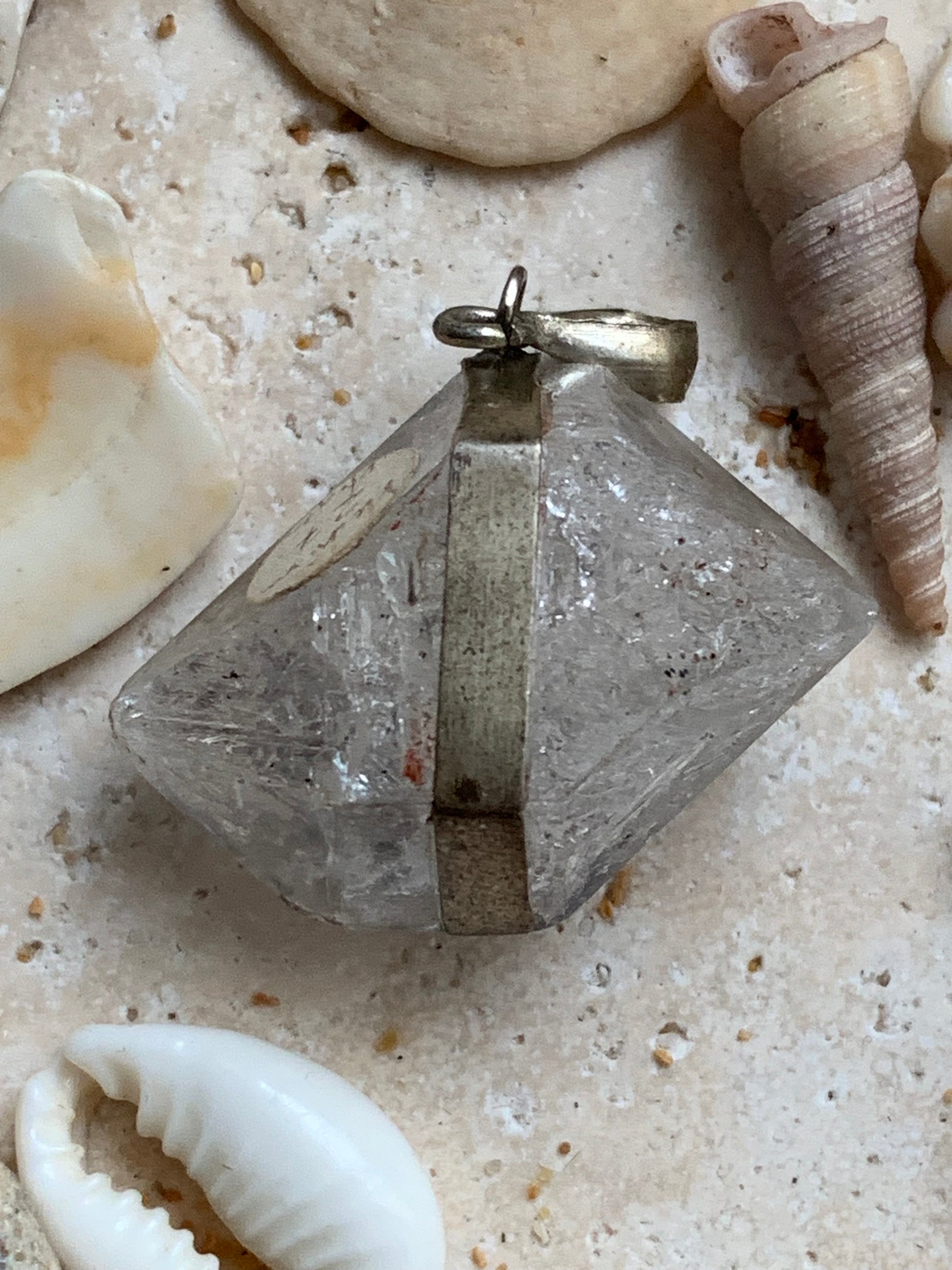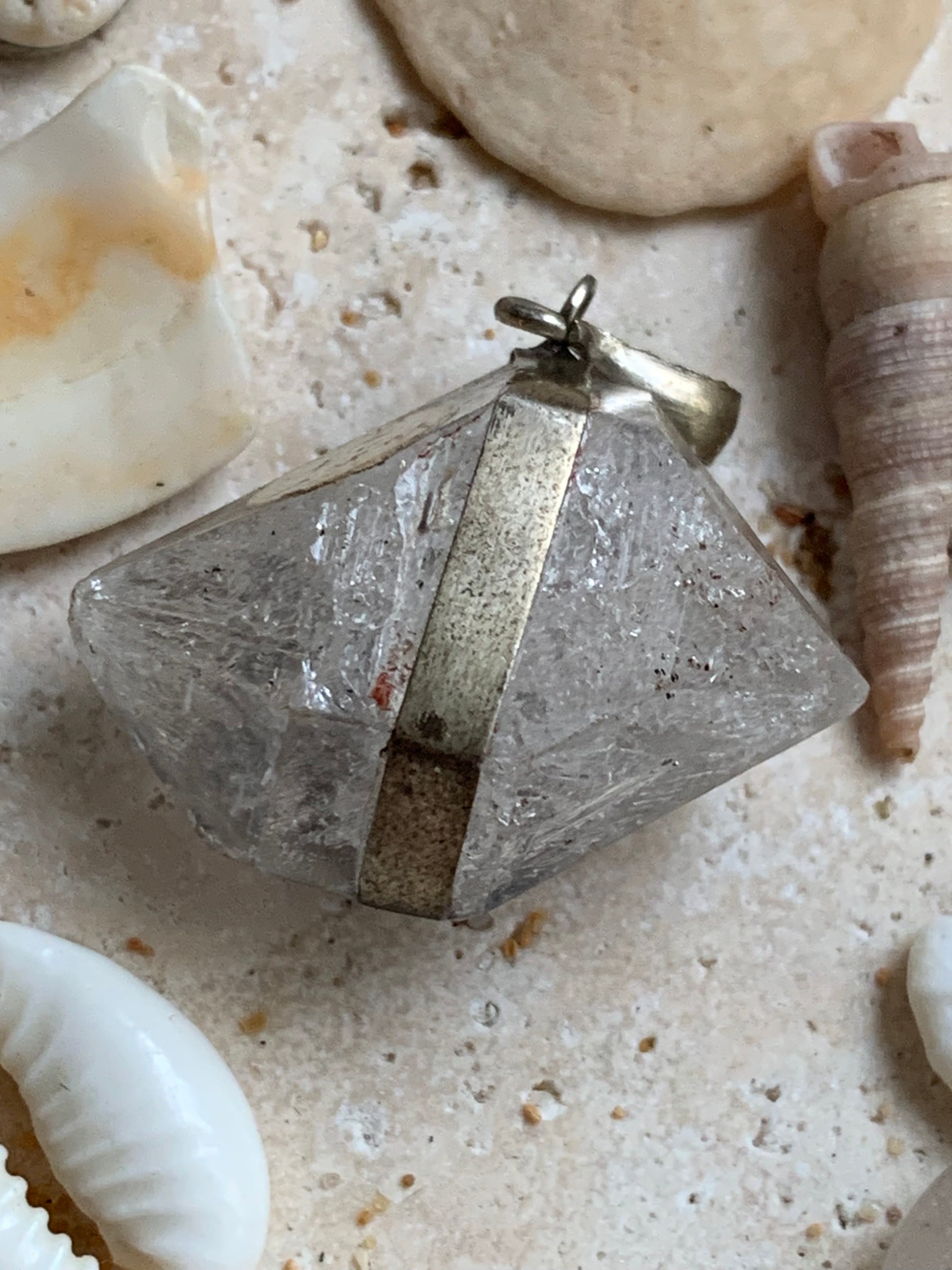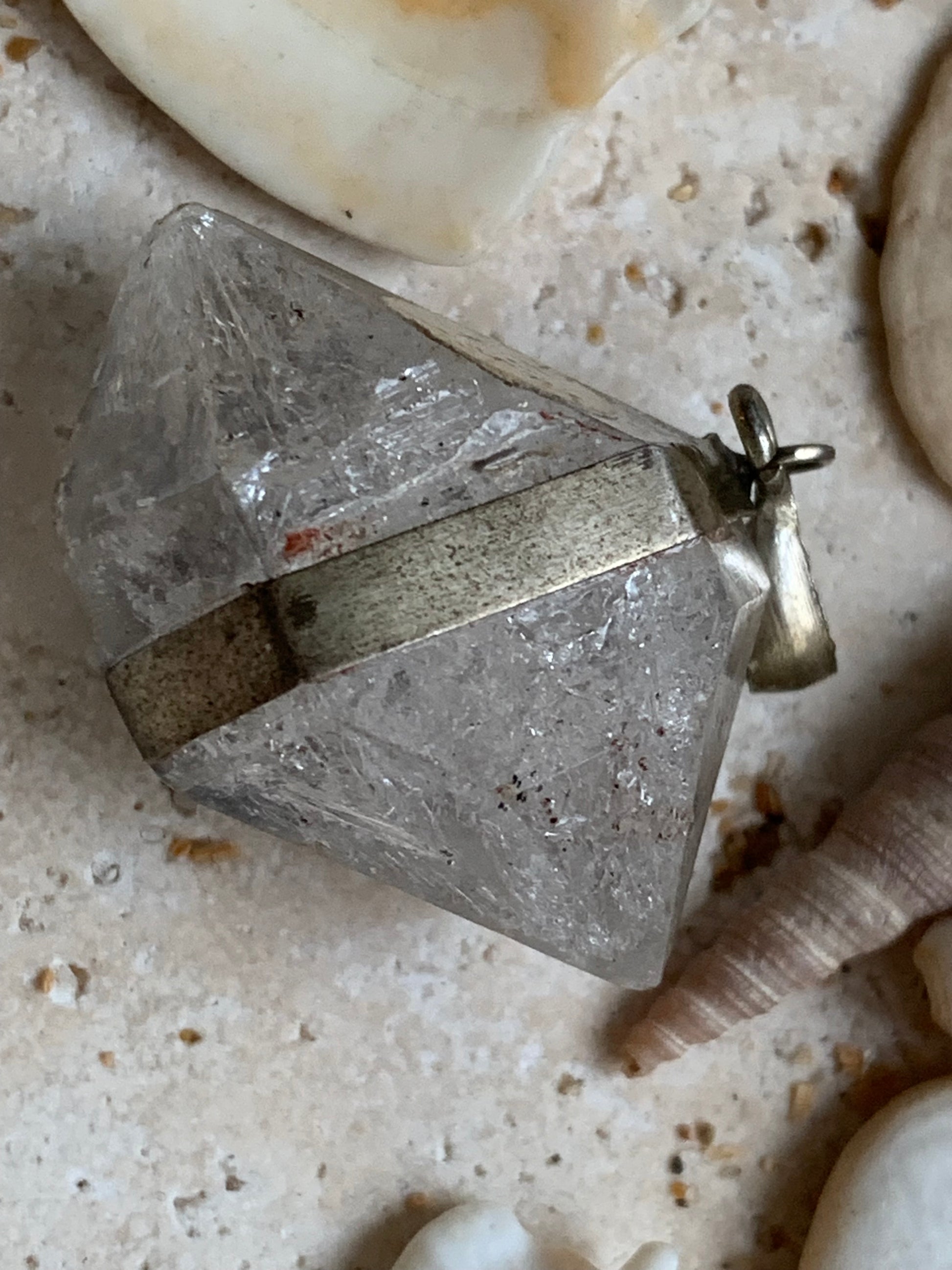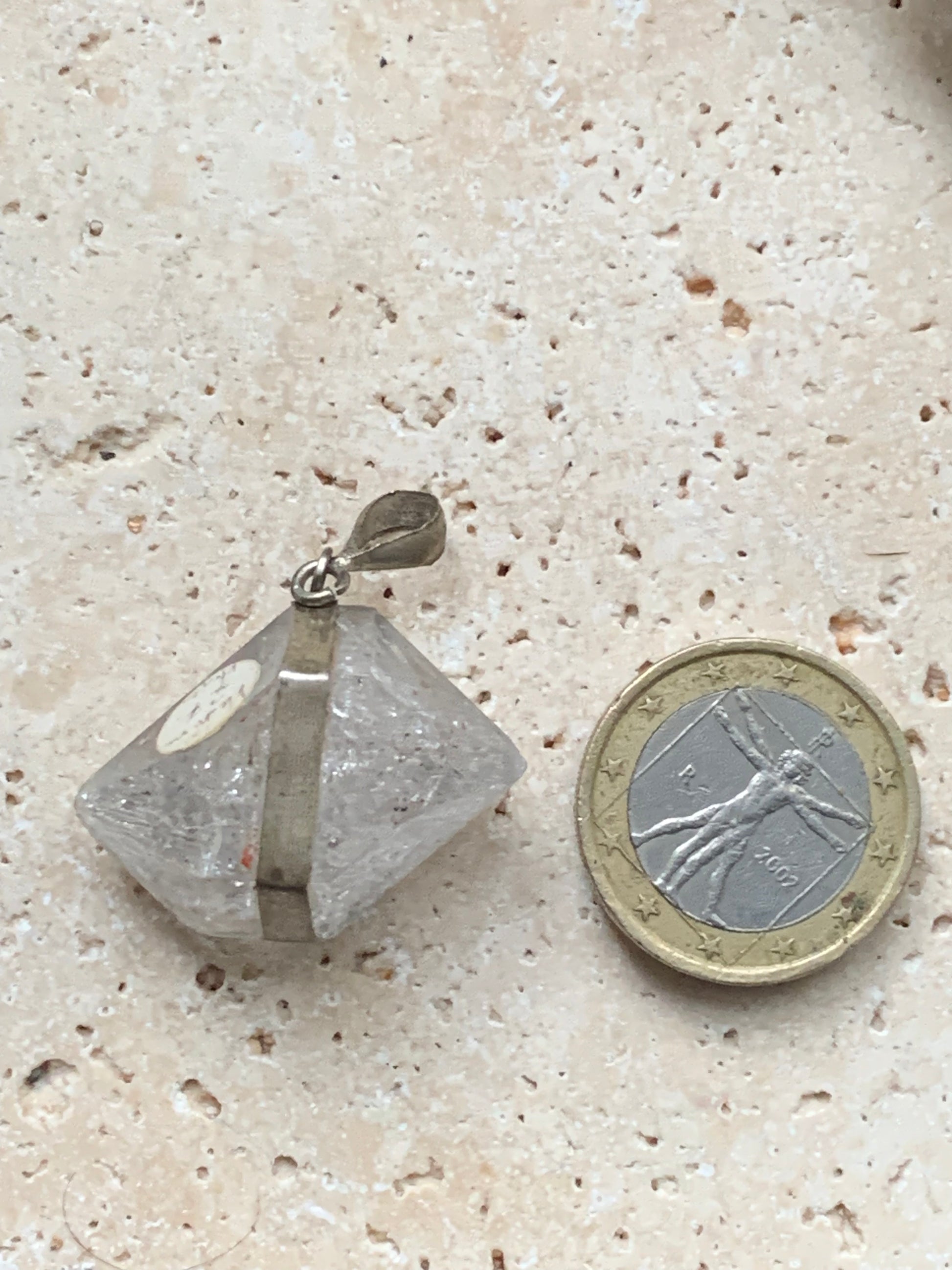 Cristal de roche Herkimer bi-déterminé, pendentif de 32mm x22 x12. Fait sur Argent 925. Vendu avec cordon réglable de couleur noire !