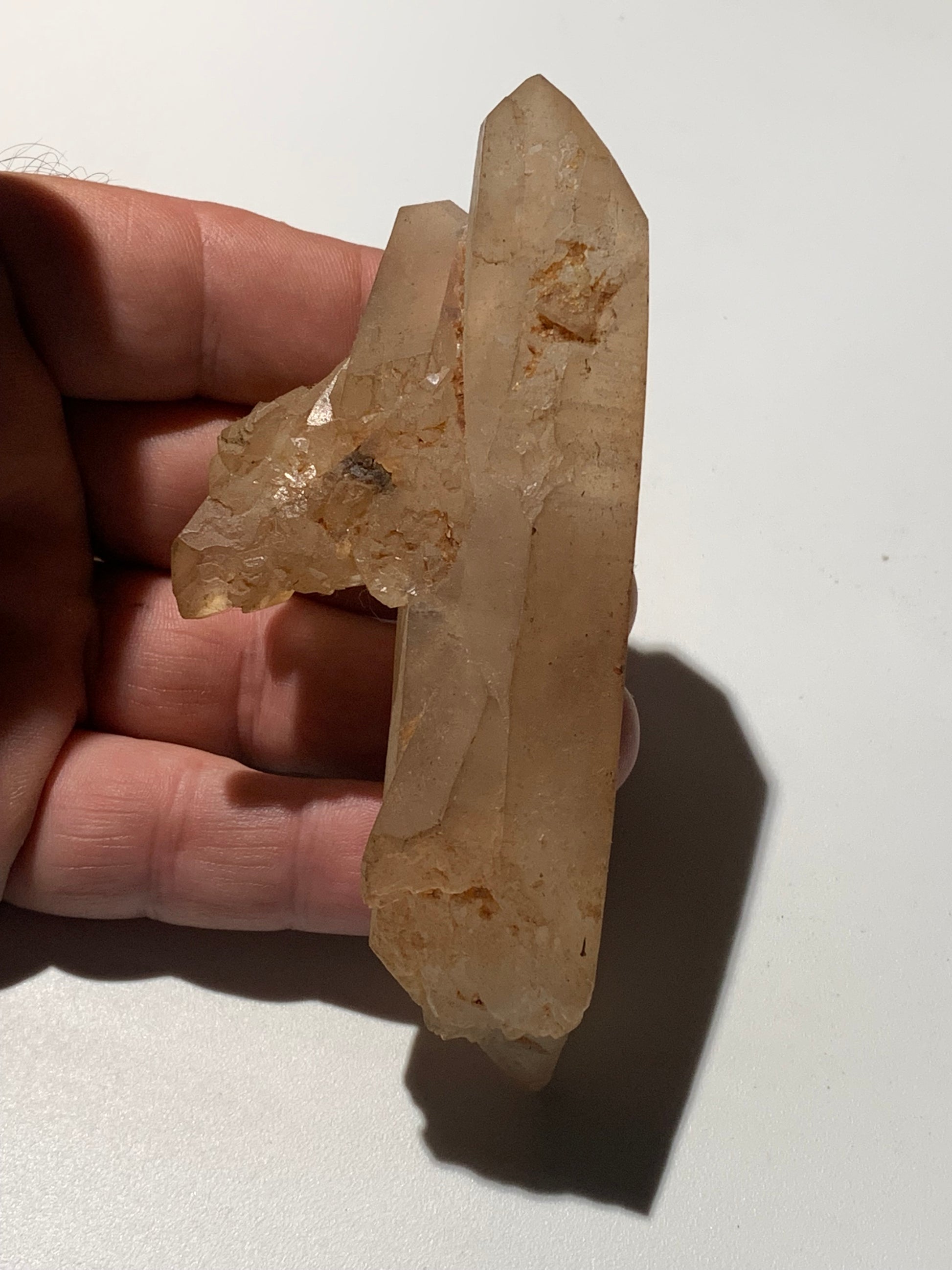 Cristal de roche - Pointe jumelée avec nid de cristaux - 104 L x 50 l x 32 mm - 134 grammes !