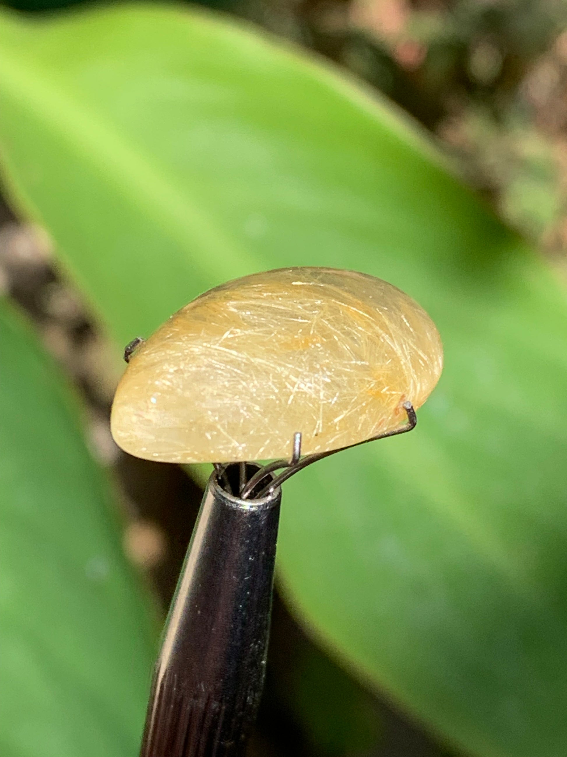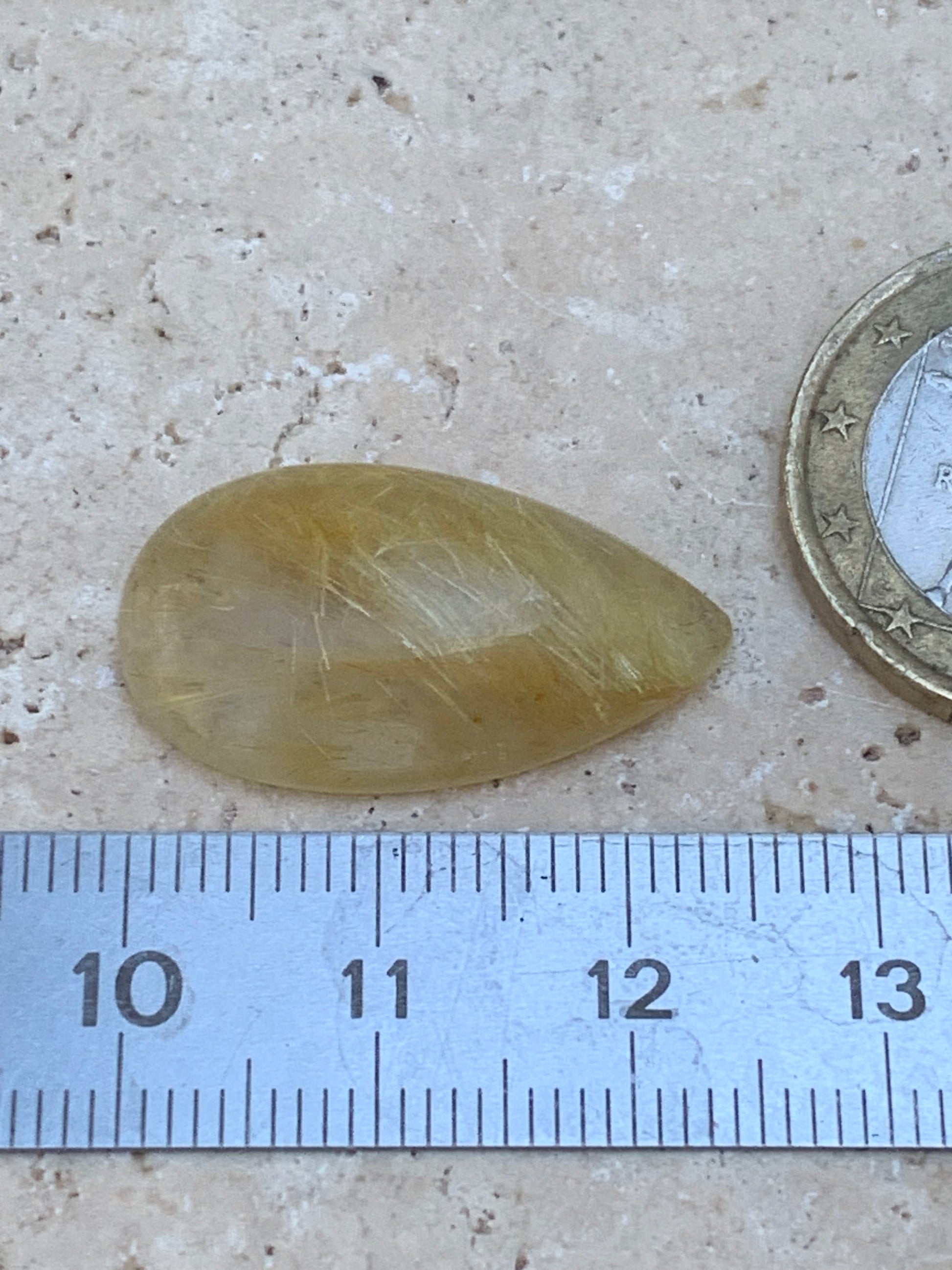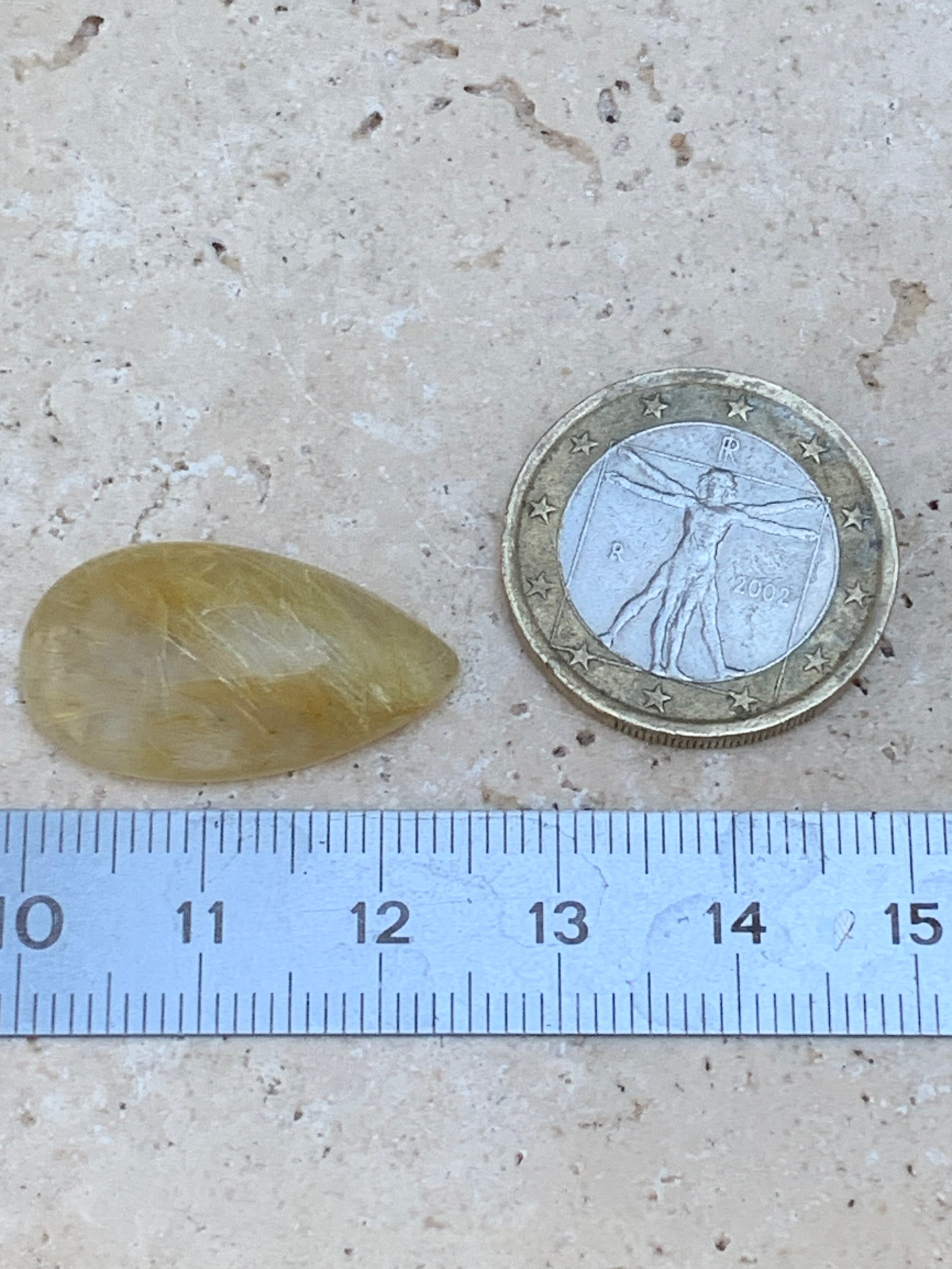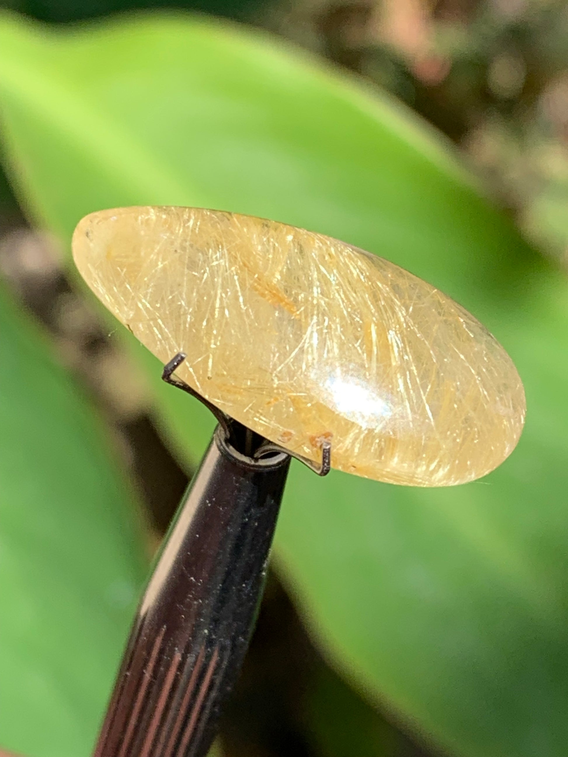 Cristal de roche/ quartz à rutiles dorés, cabochon de 25mm x15 x6 - 15,5 carats. Parfait en bijouterie, collection ,exposition...