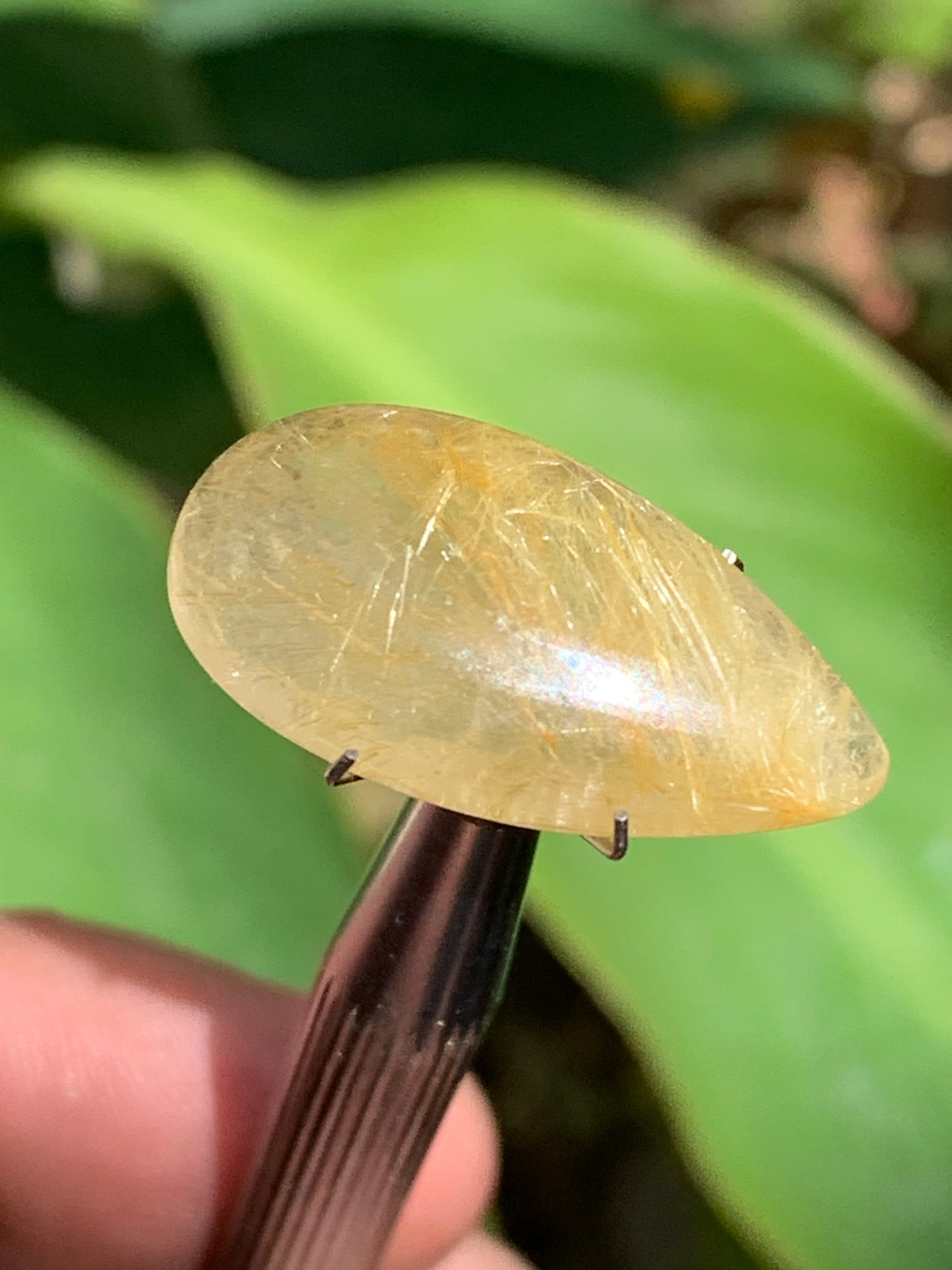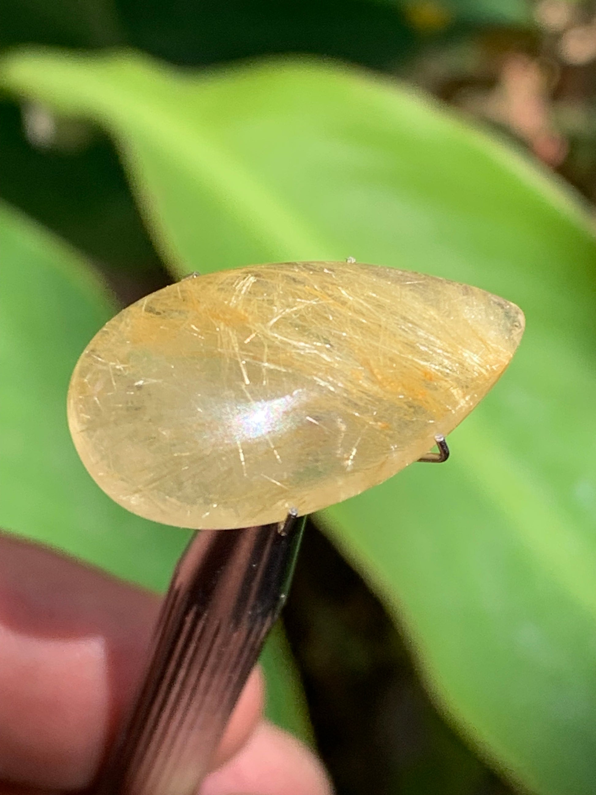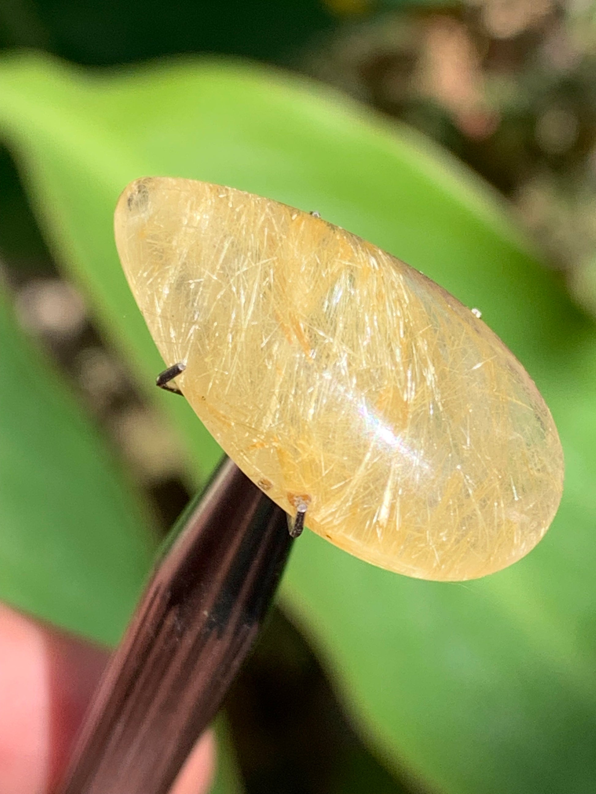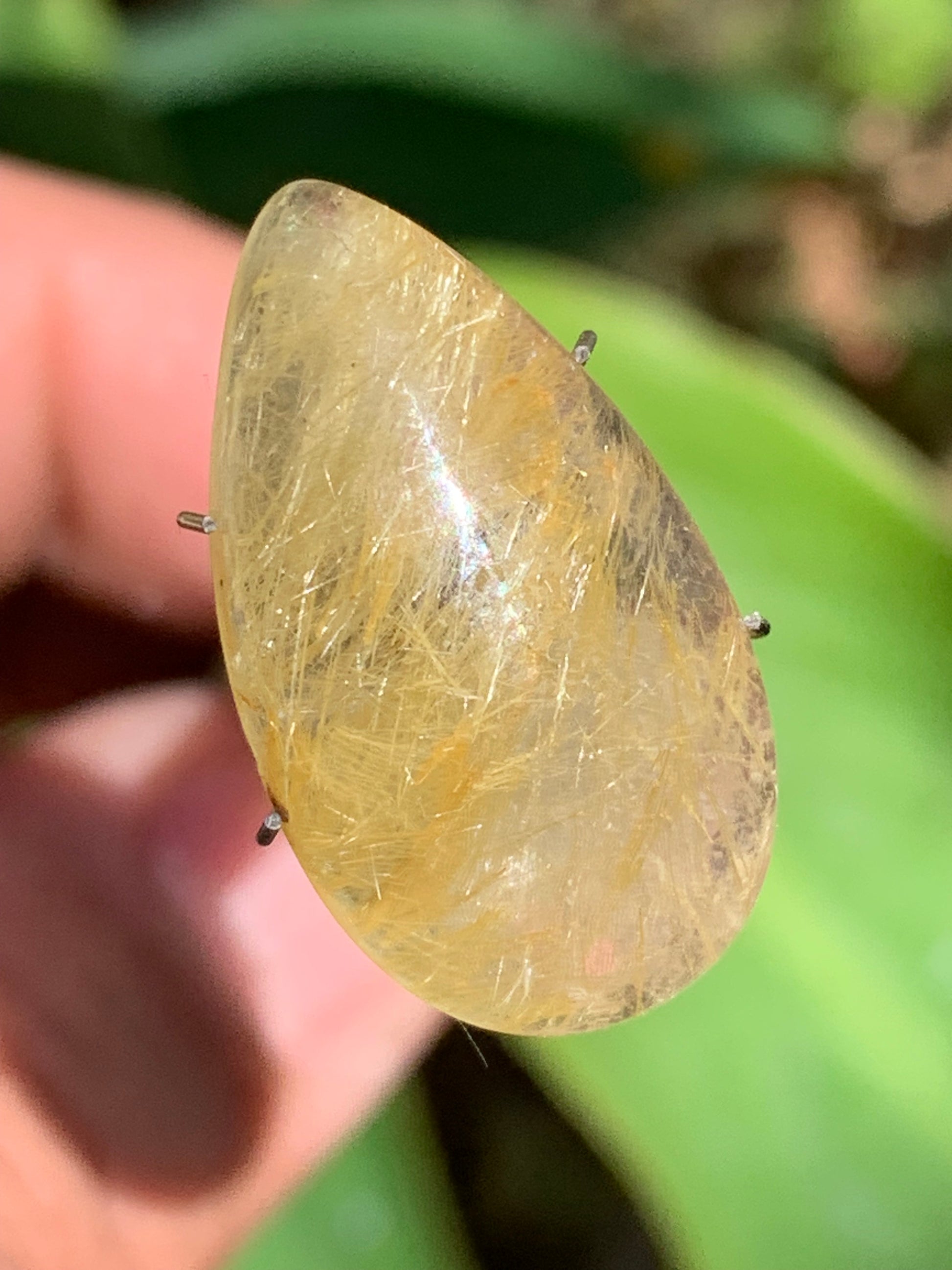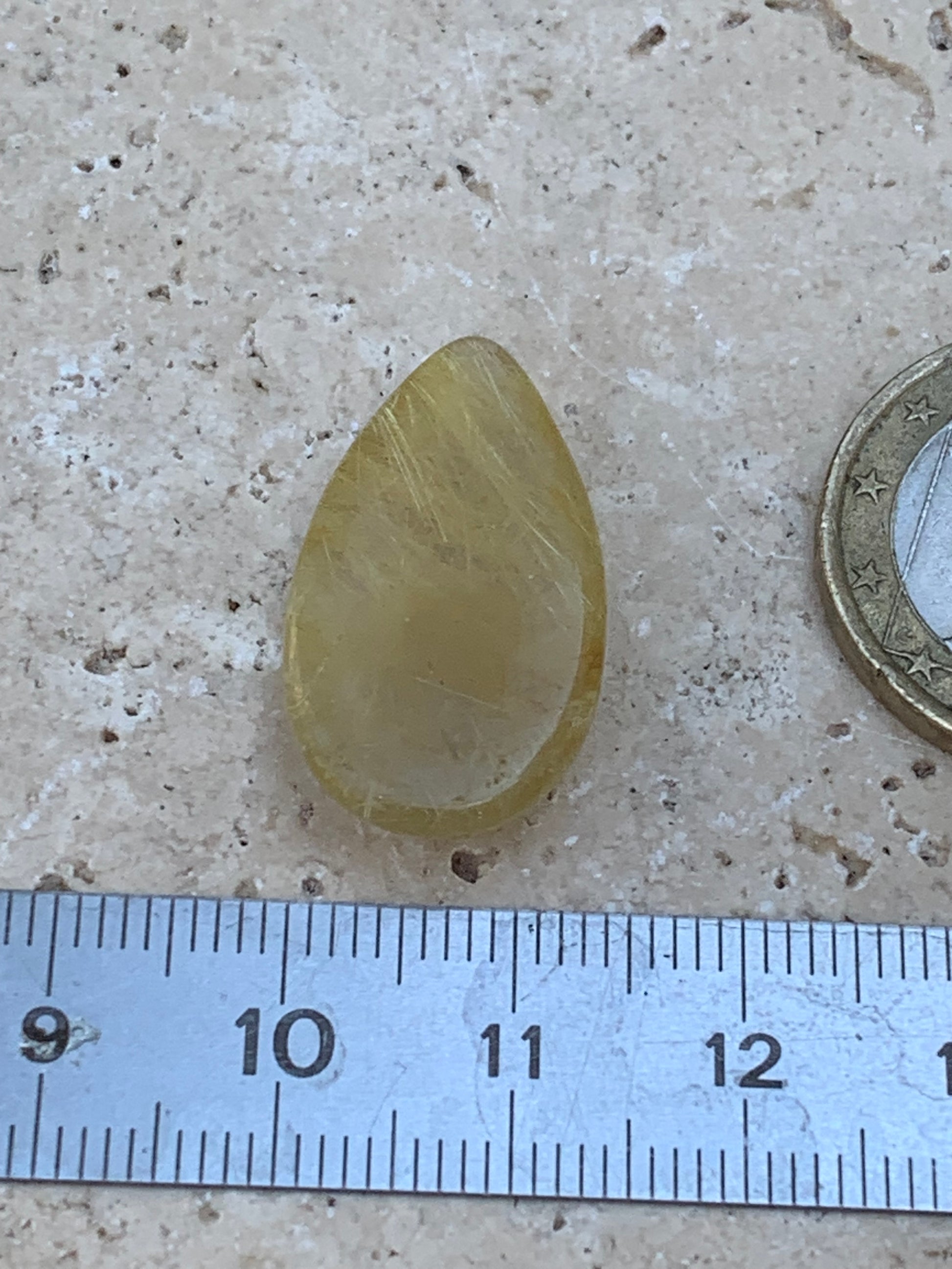 Cristal de roche/ quartz à rutiles dorés, cabochon de 25mm x15 x6 - 15,5 carats. Parfait en bijouterie, collection ,exposition...