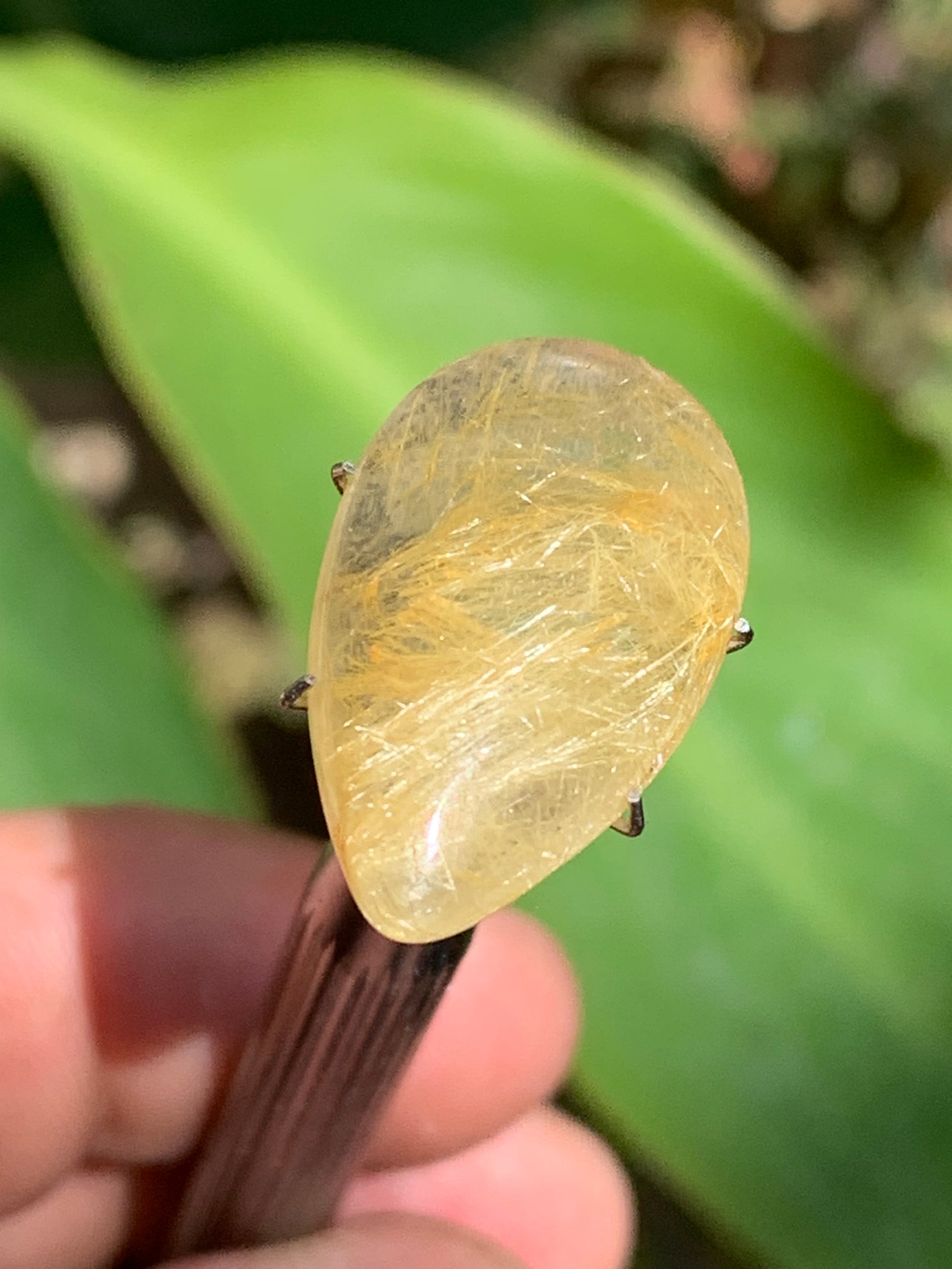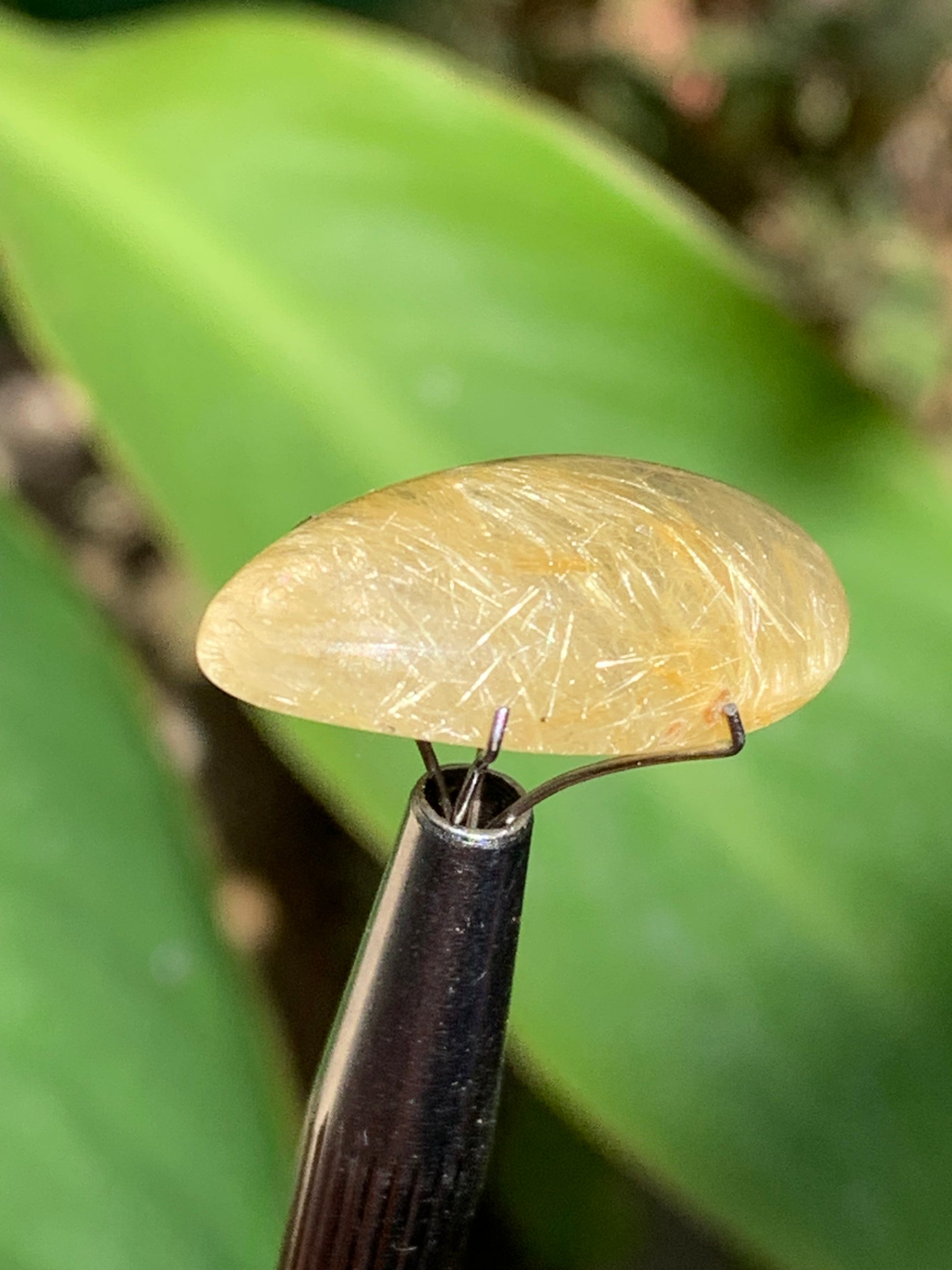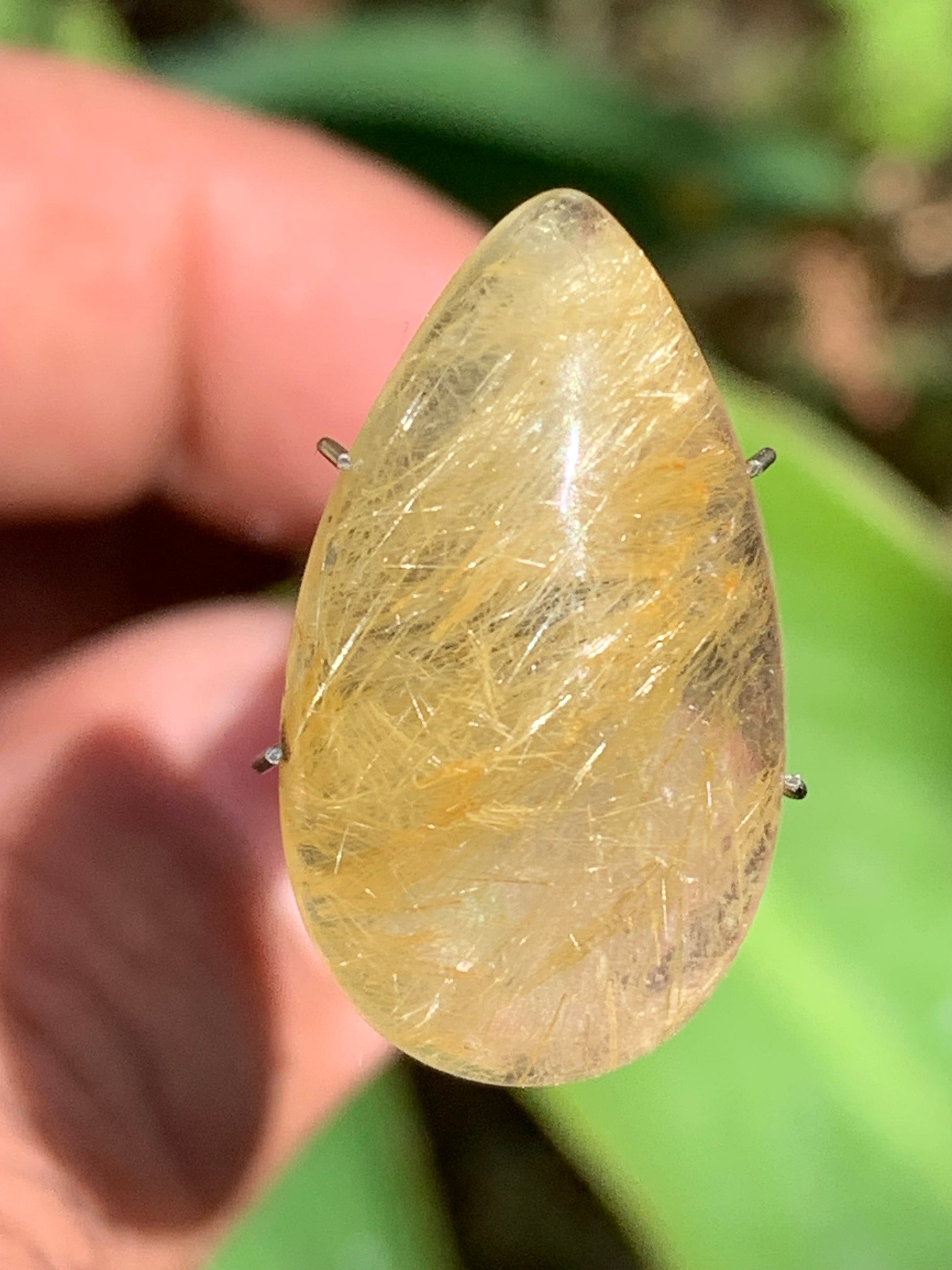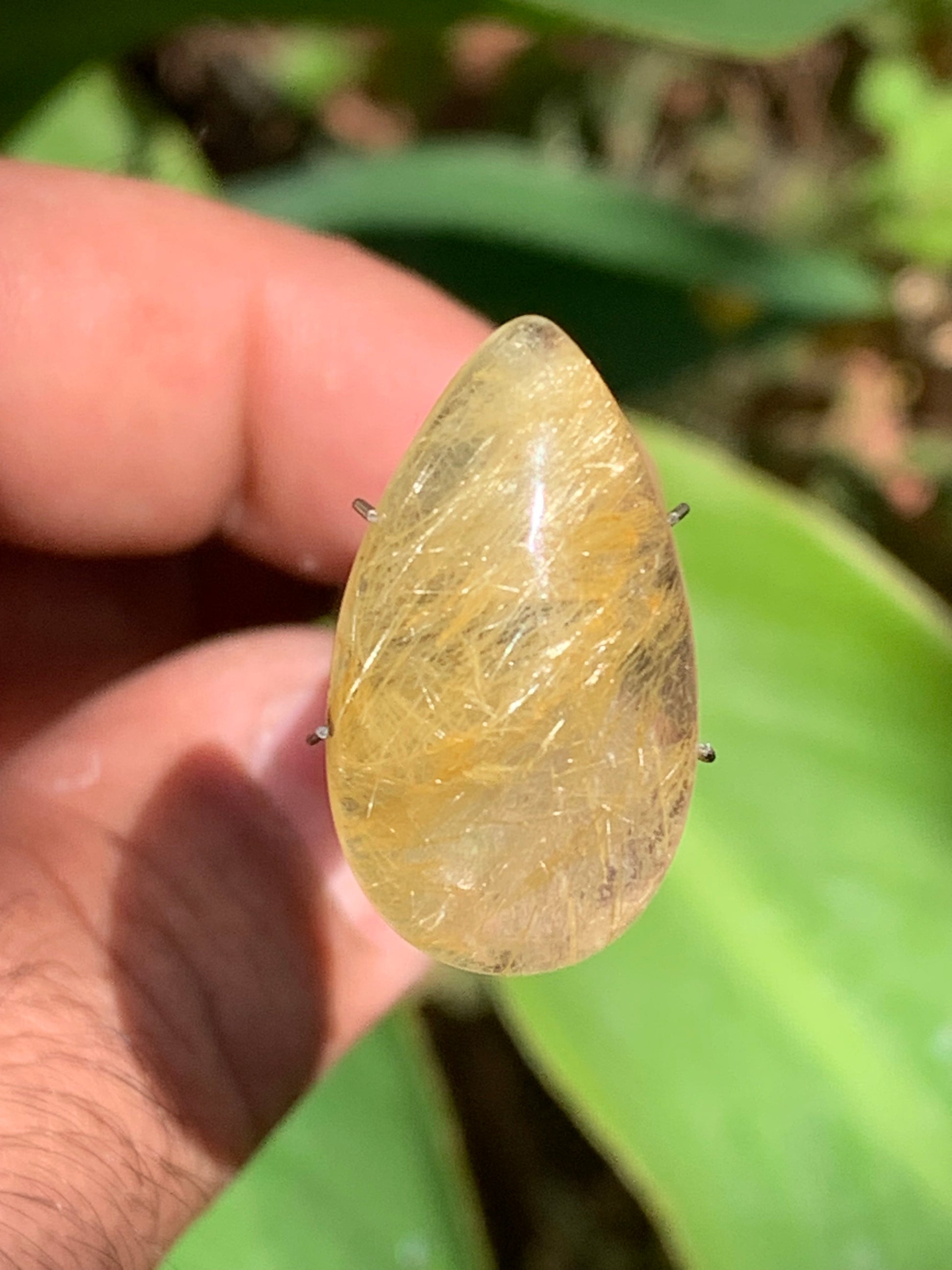 Cristal de roche/ quartz à rutiles dorés, cabochon de 25mm x15 x6 - 15,5 carats. Parfait en bijouterie, collection ,exposition...