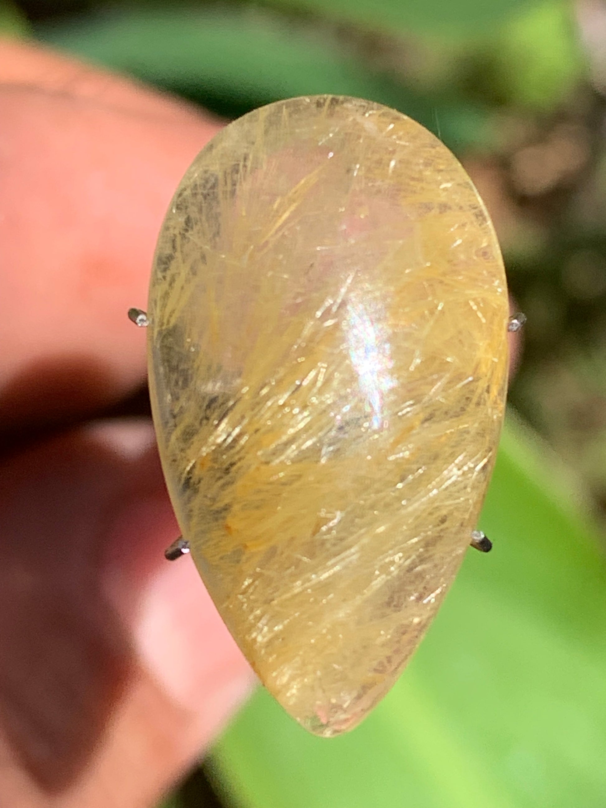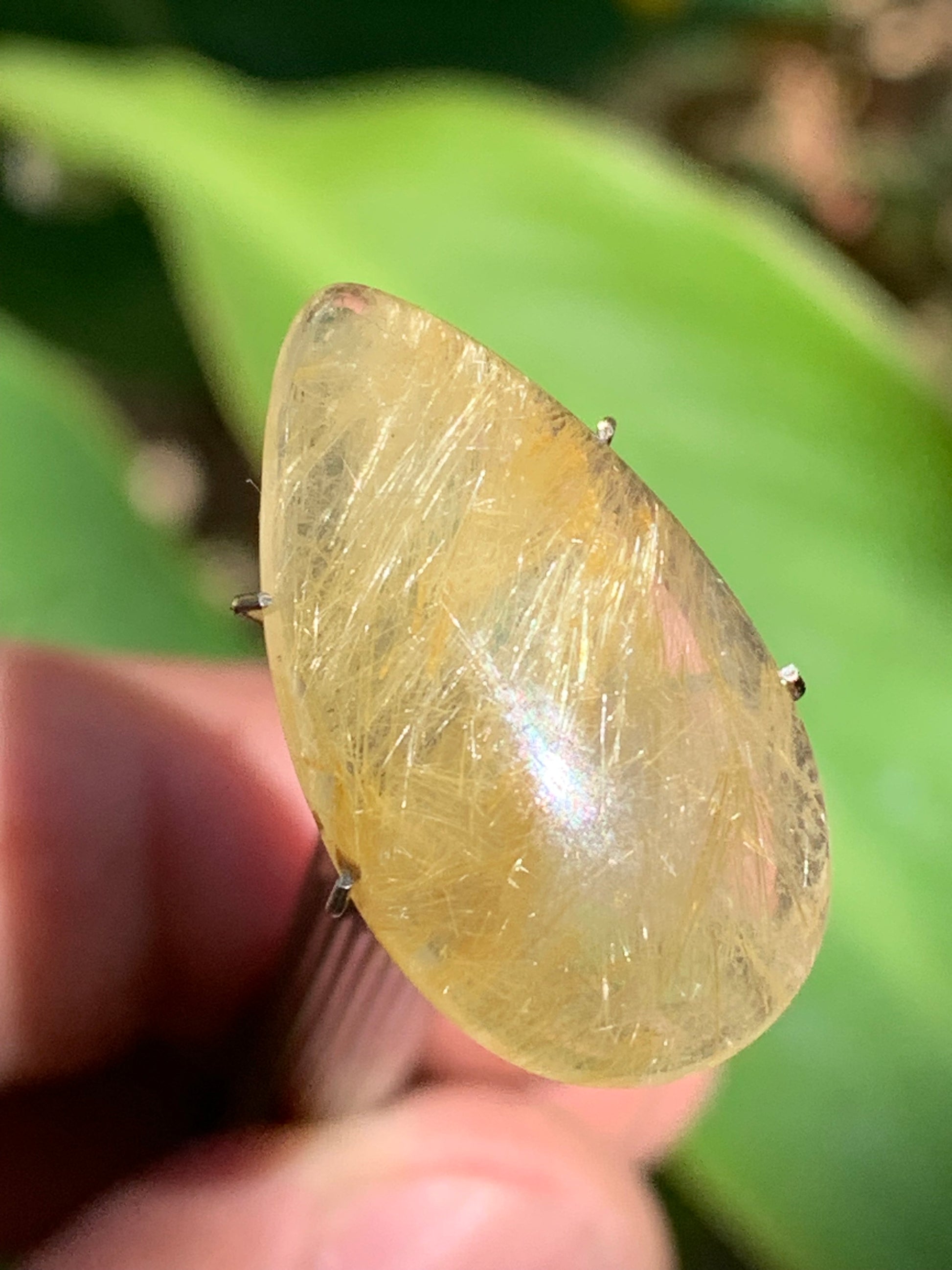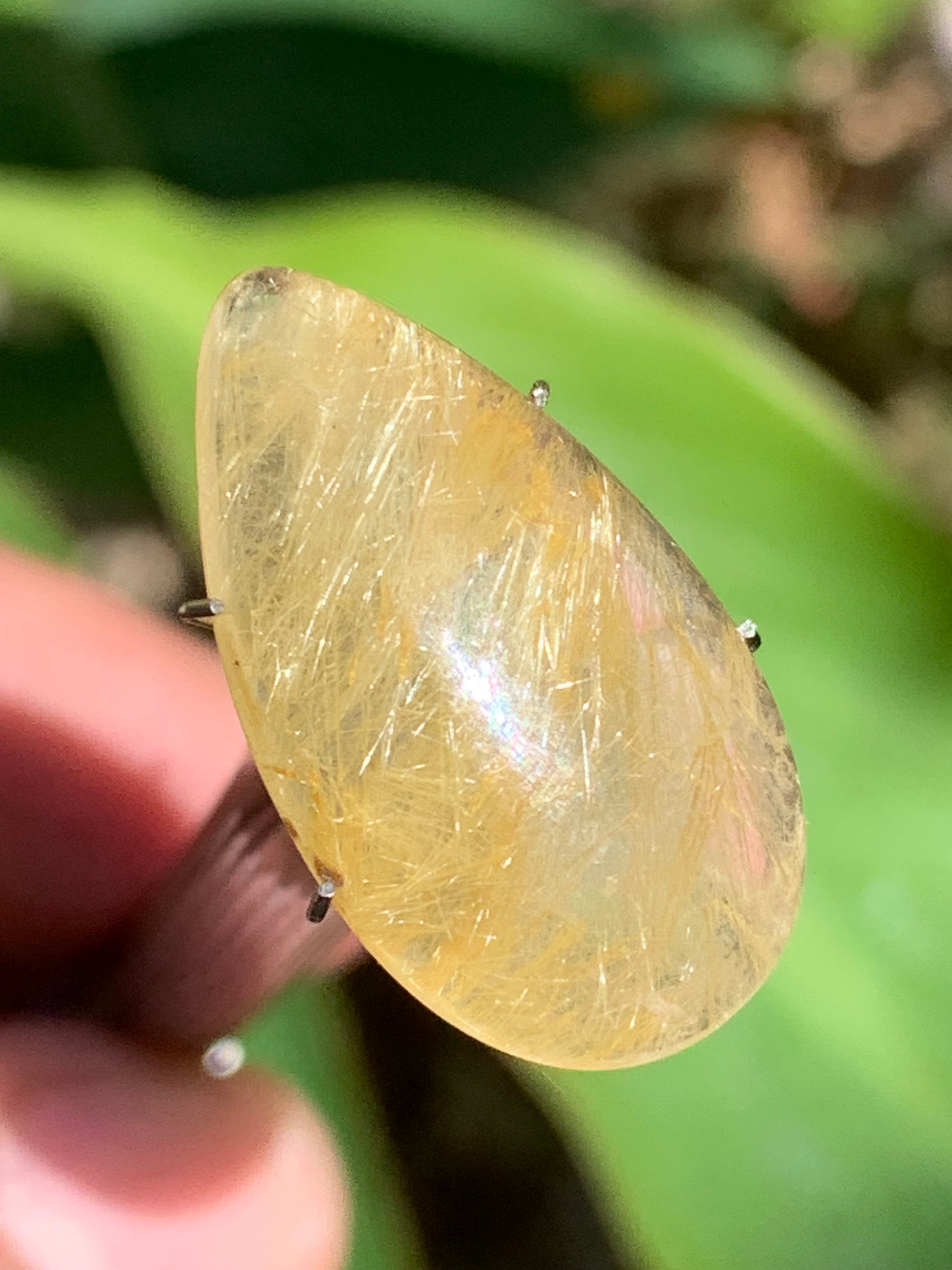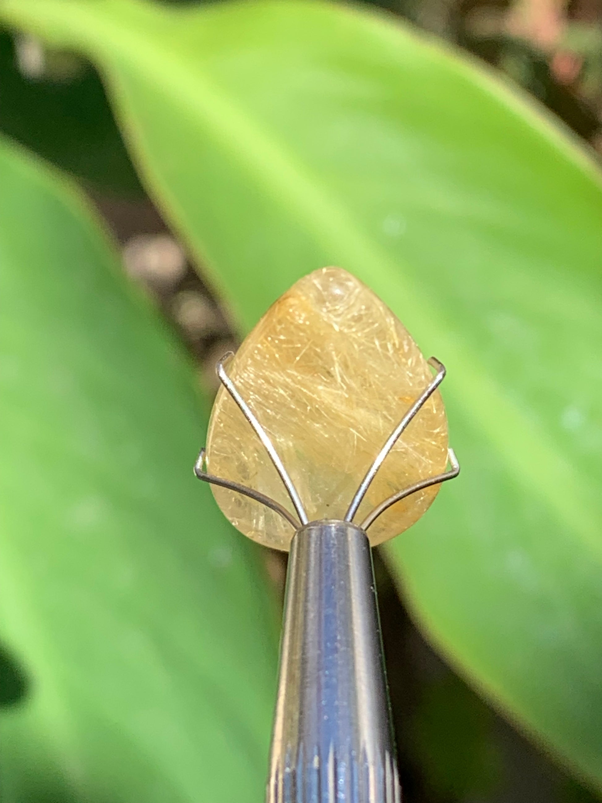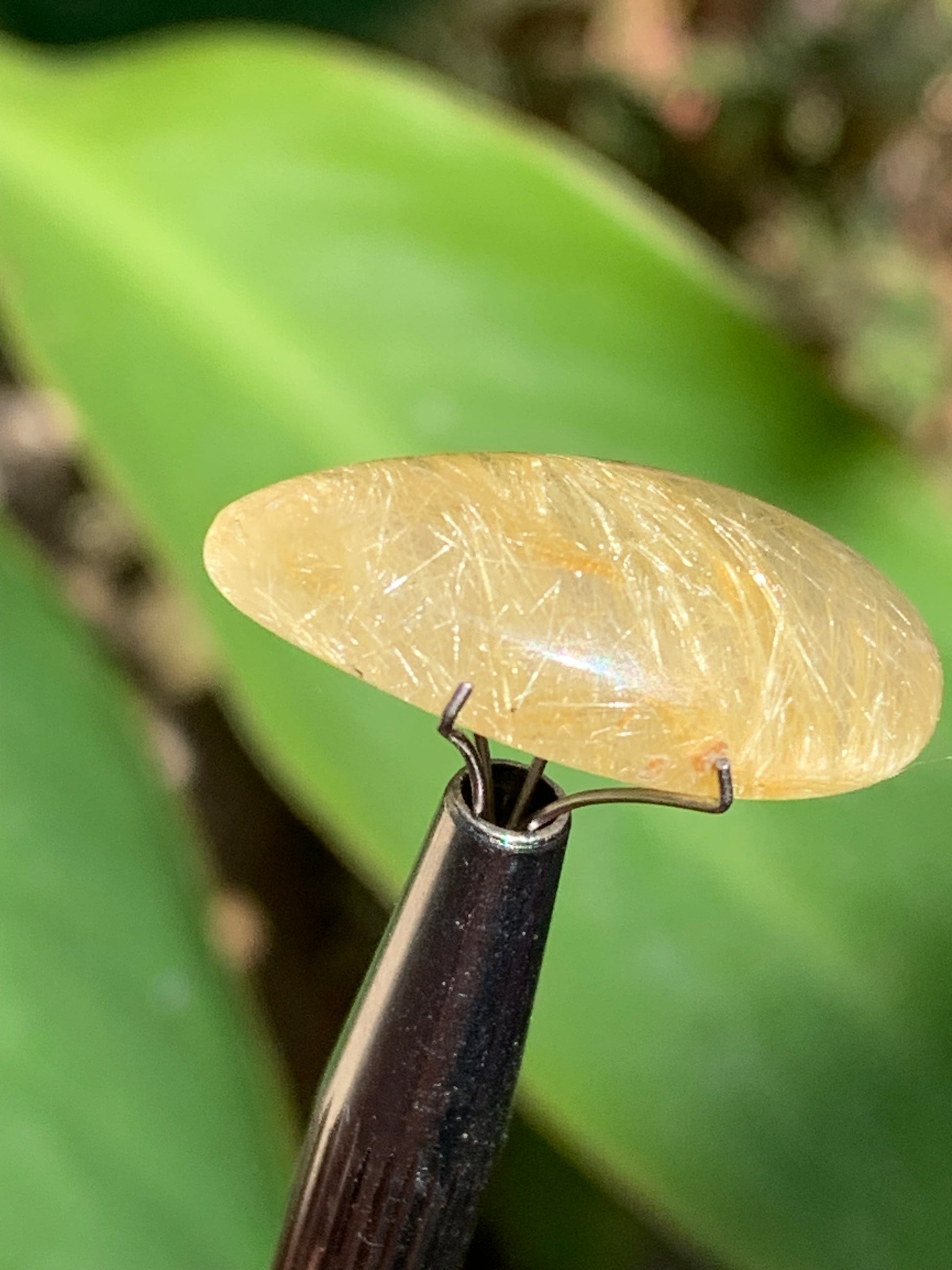 Cristal de roche/ quartz à rutiles dorés, cabochon de 25mm x15 x6 - 15,5 carats. Parfait en bijouterie, collection ,exposition...
