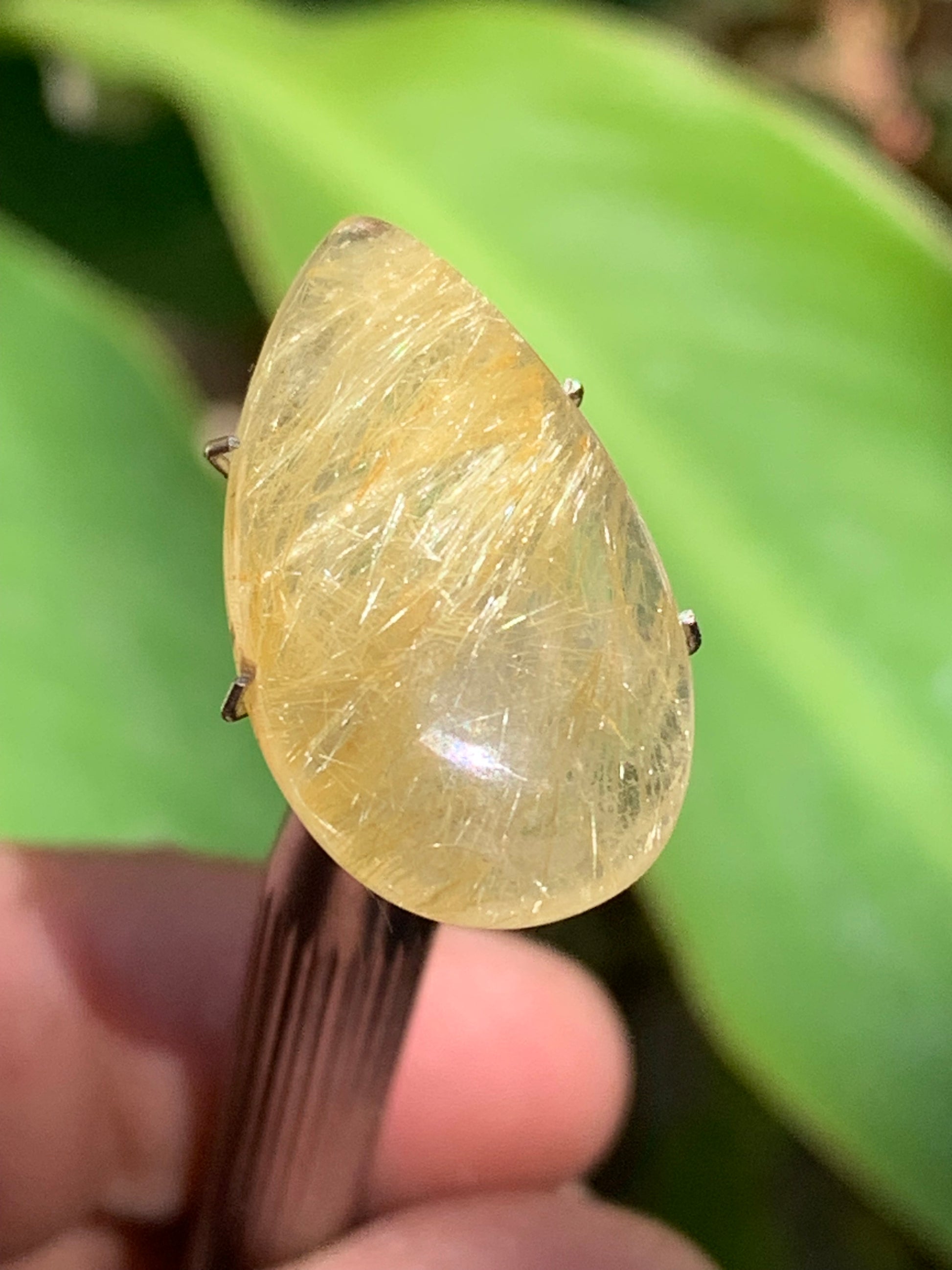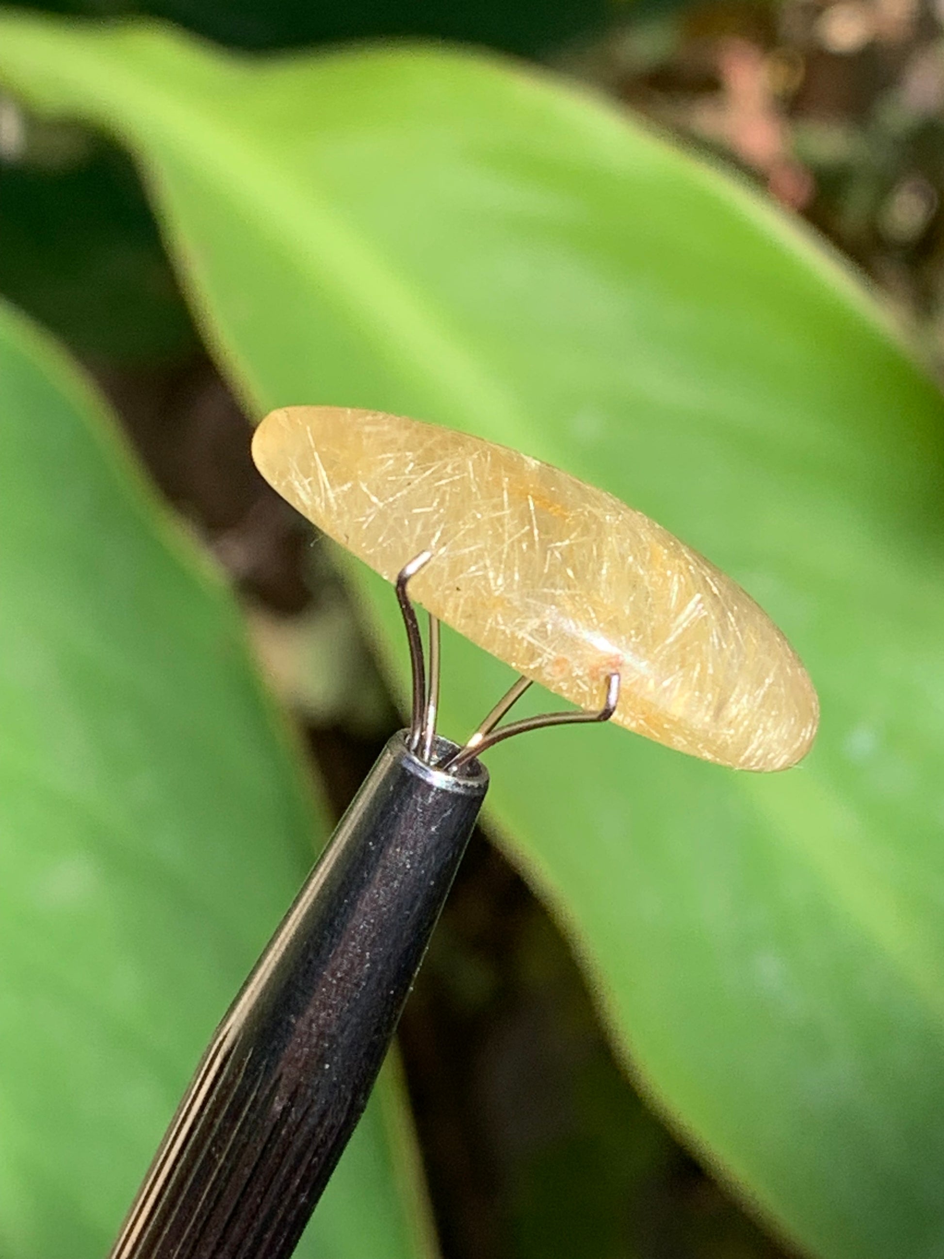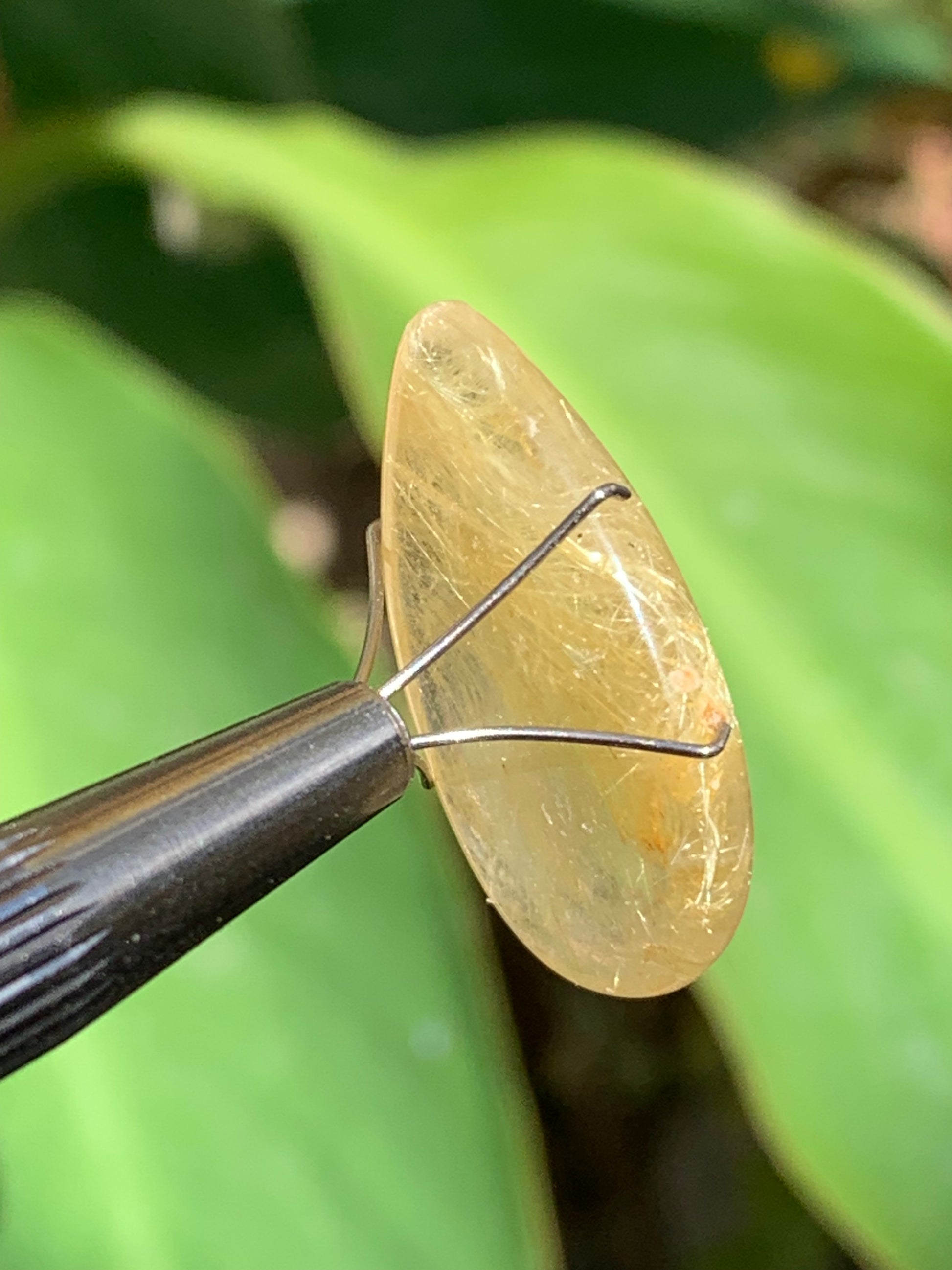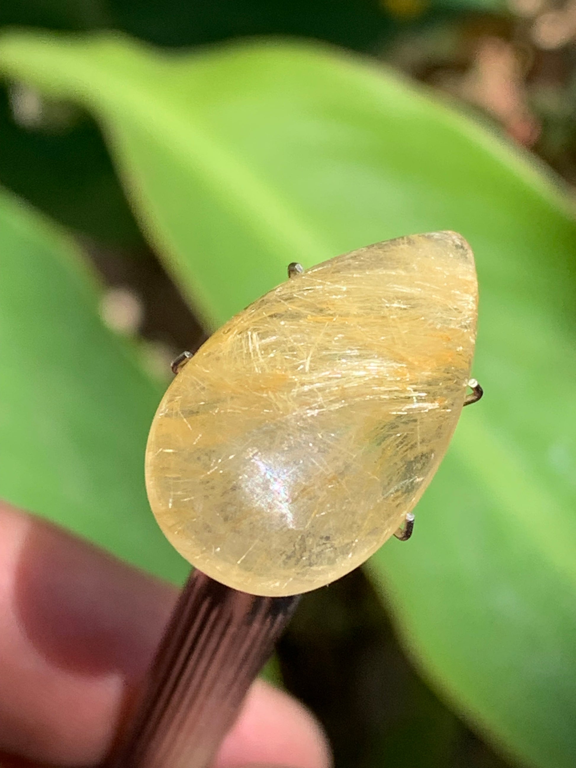 Cristal de roche/ quartz à rutiles dorés, cabochon de 25mm x15 x6 - 15,5 carats. Parfait en bijouterie, collection ,exposition...