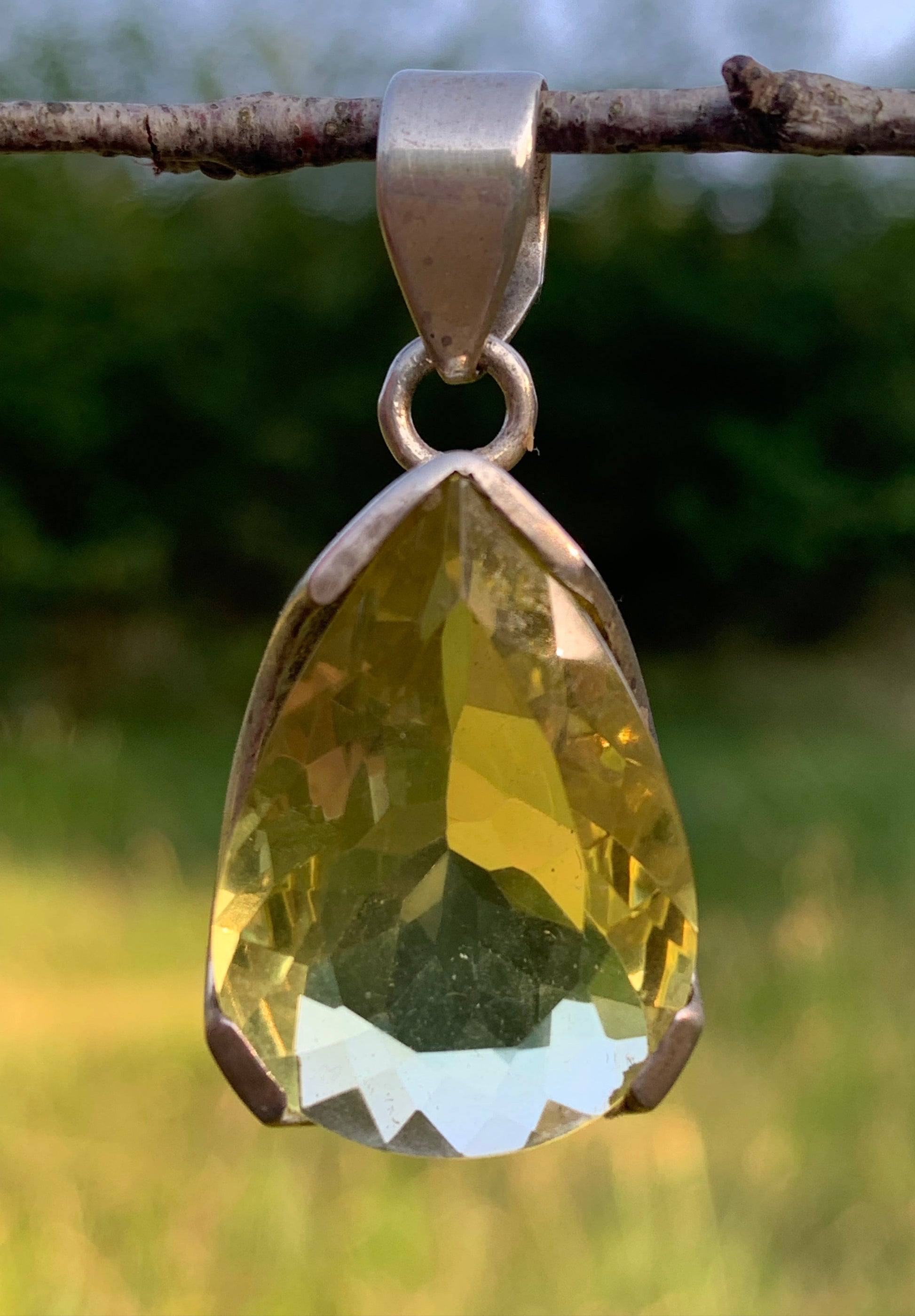 Cristal de roche/ quartz Lemon, pendentif en Argent massif de 42mm de hauteur x 20 x 12. Vendu avec cordon réglable, prêt à porter !