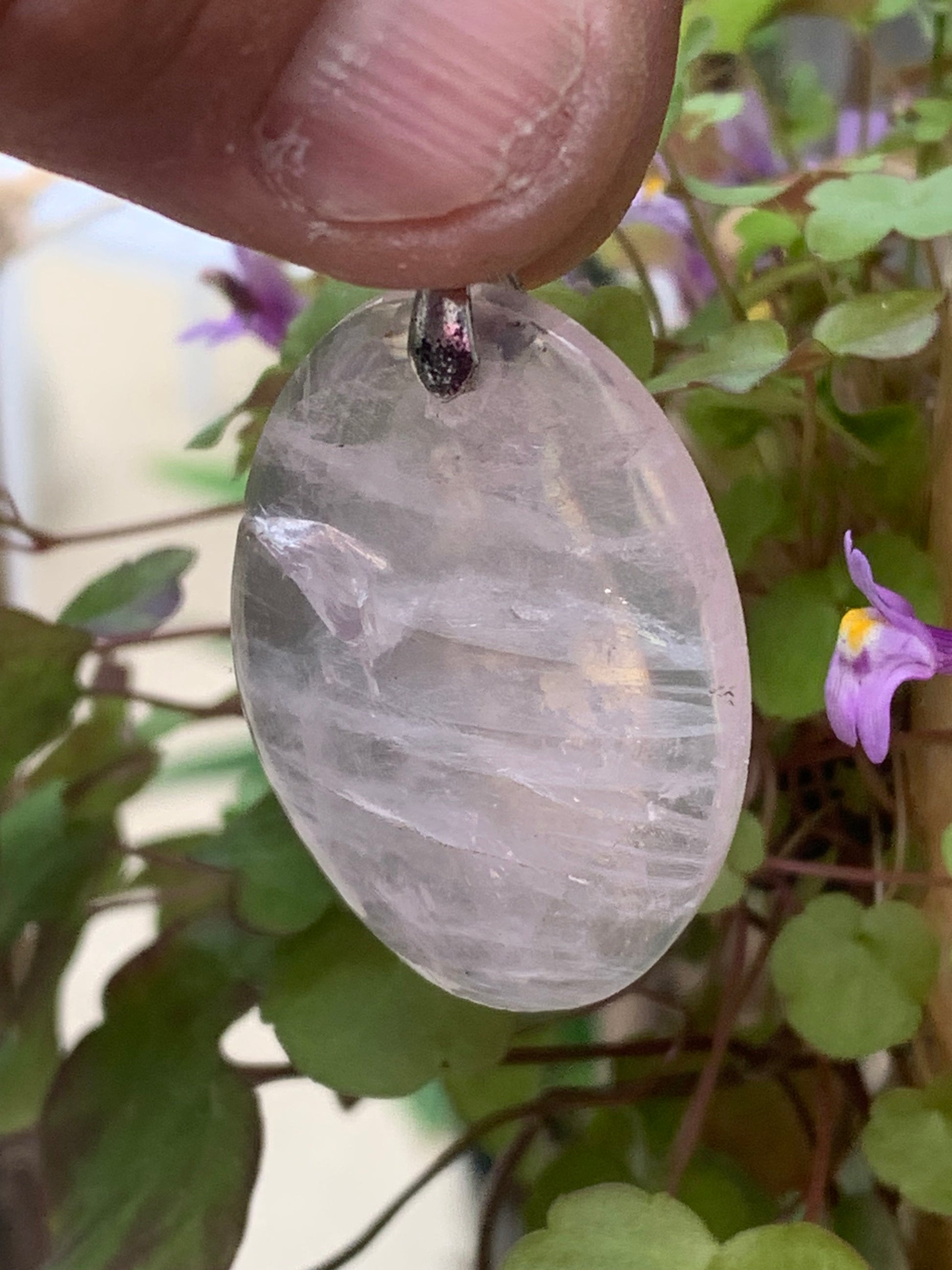 Cristal de roche/ Quartz rose ! Pendentif de 50mm de hauteur x 28 de largeur x 8 d'épaisseur. Vendu avec cordon réglable de couleur noire !
