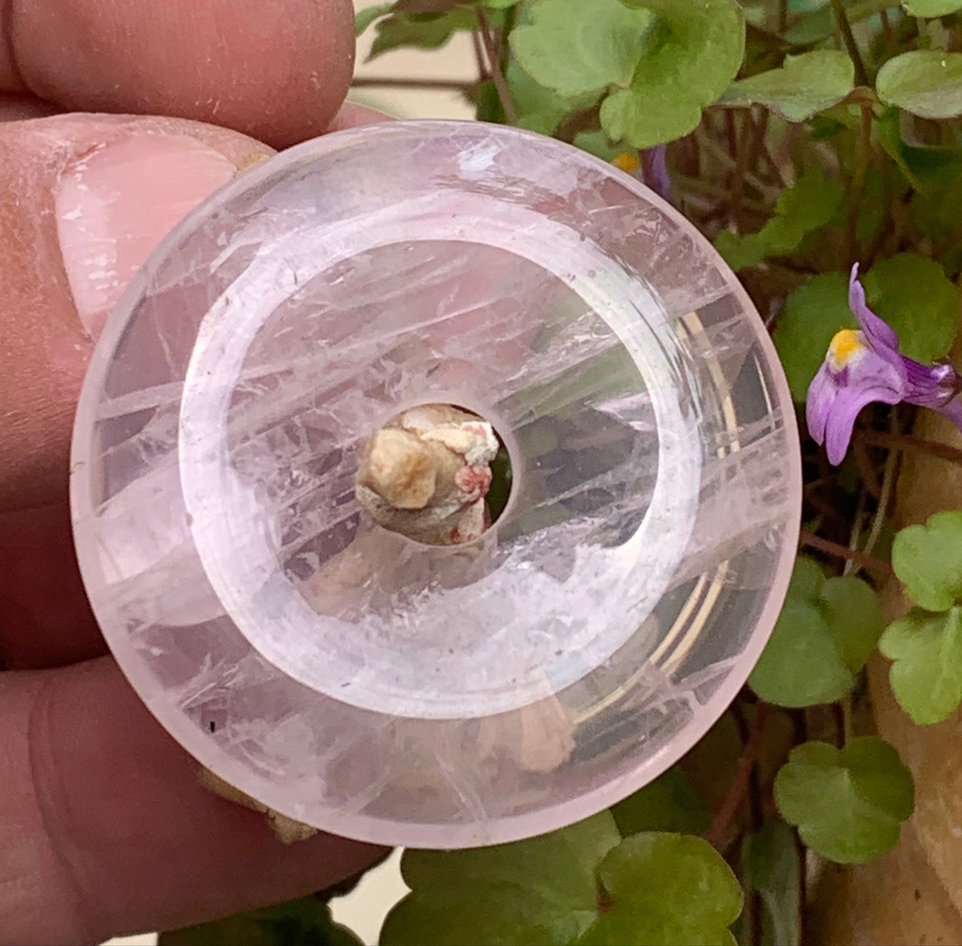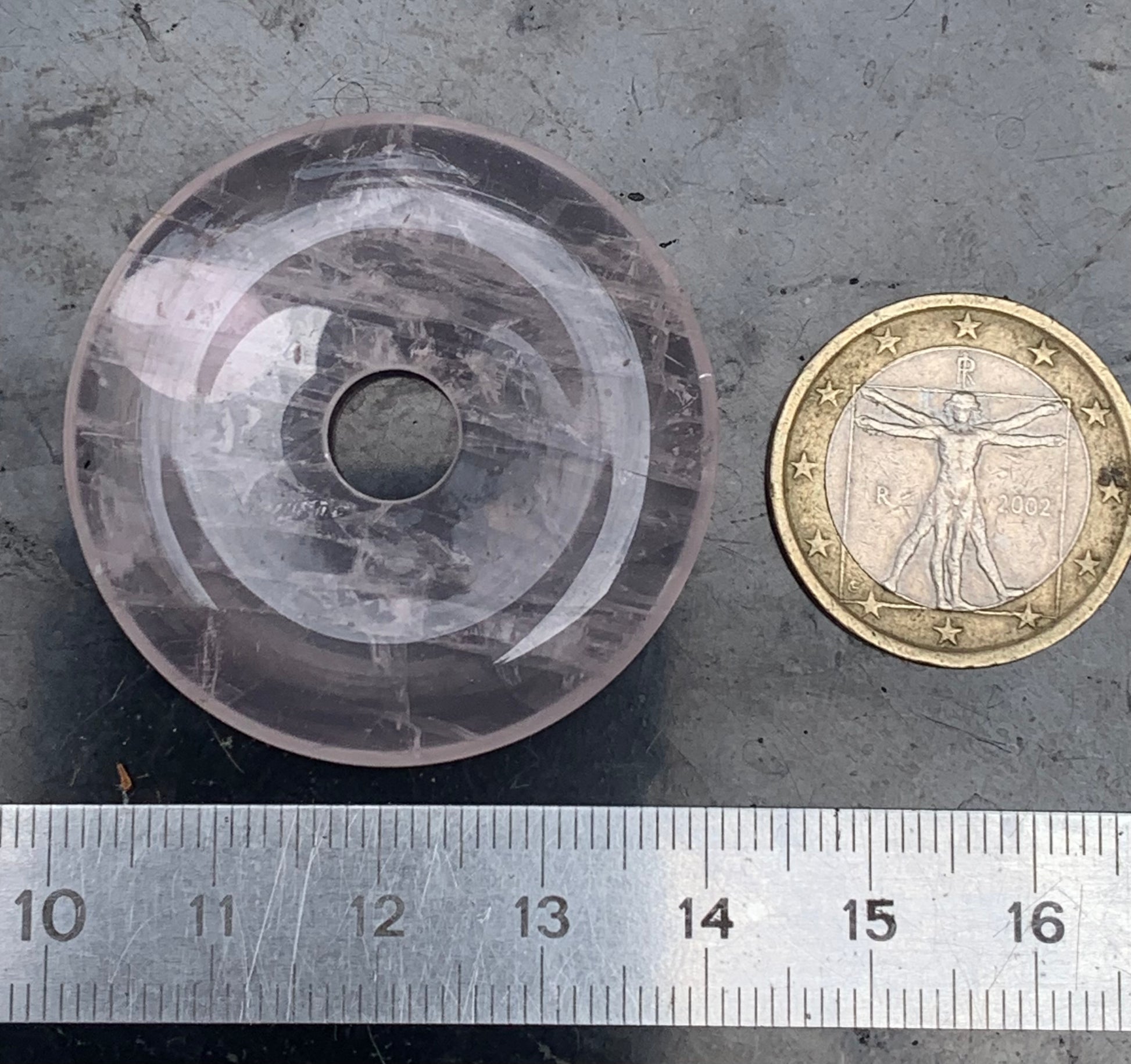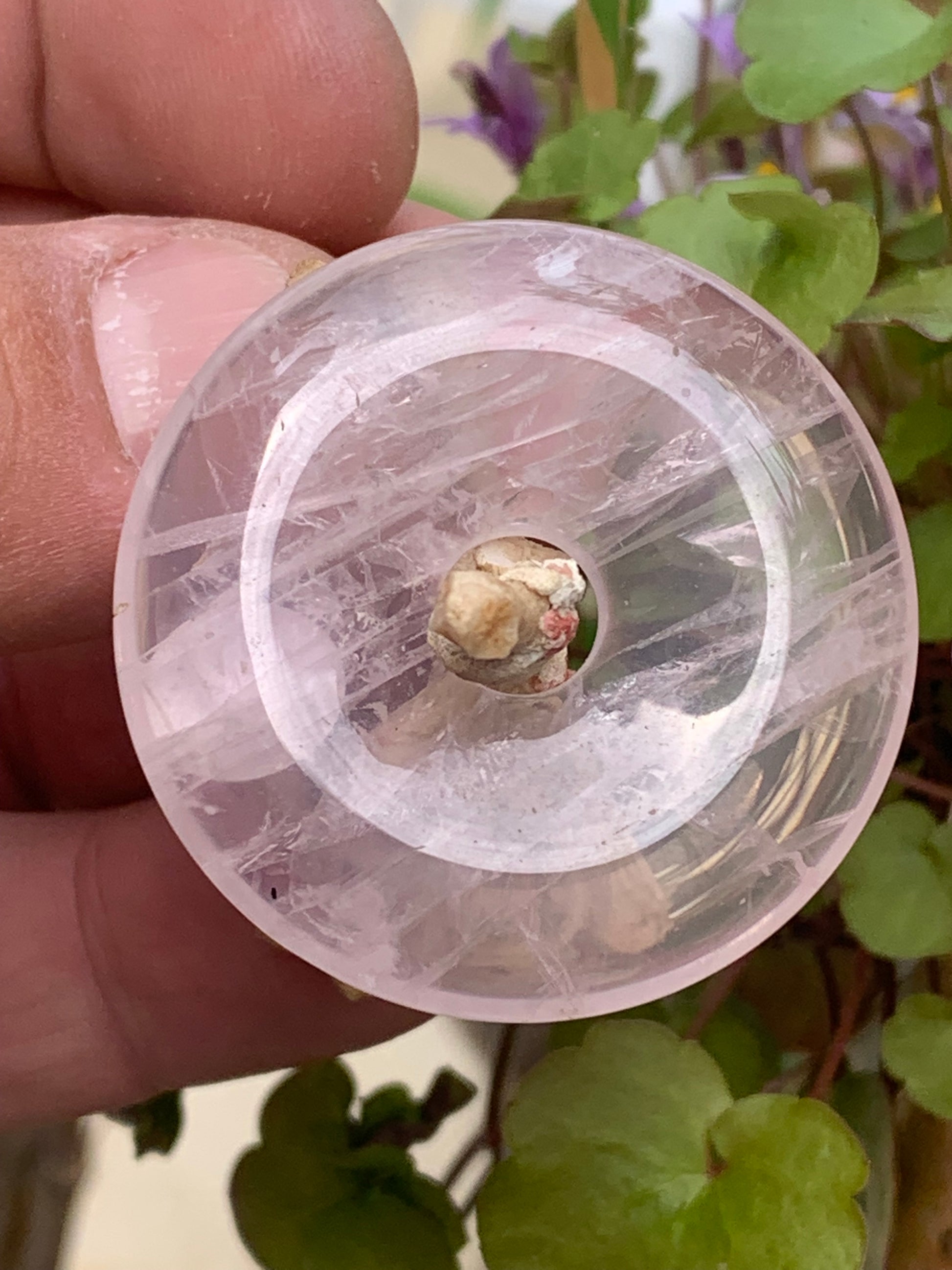 Cristal de roche/ Quartz rose, pendentif Donuts, 40mm de hauteur x 40 de largeur x 7 d'épaisseur. Vendu avec cordon réglable de couleur noire !