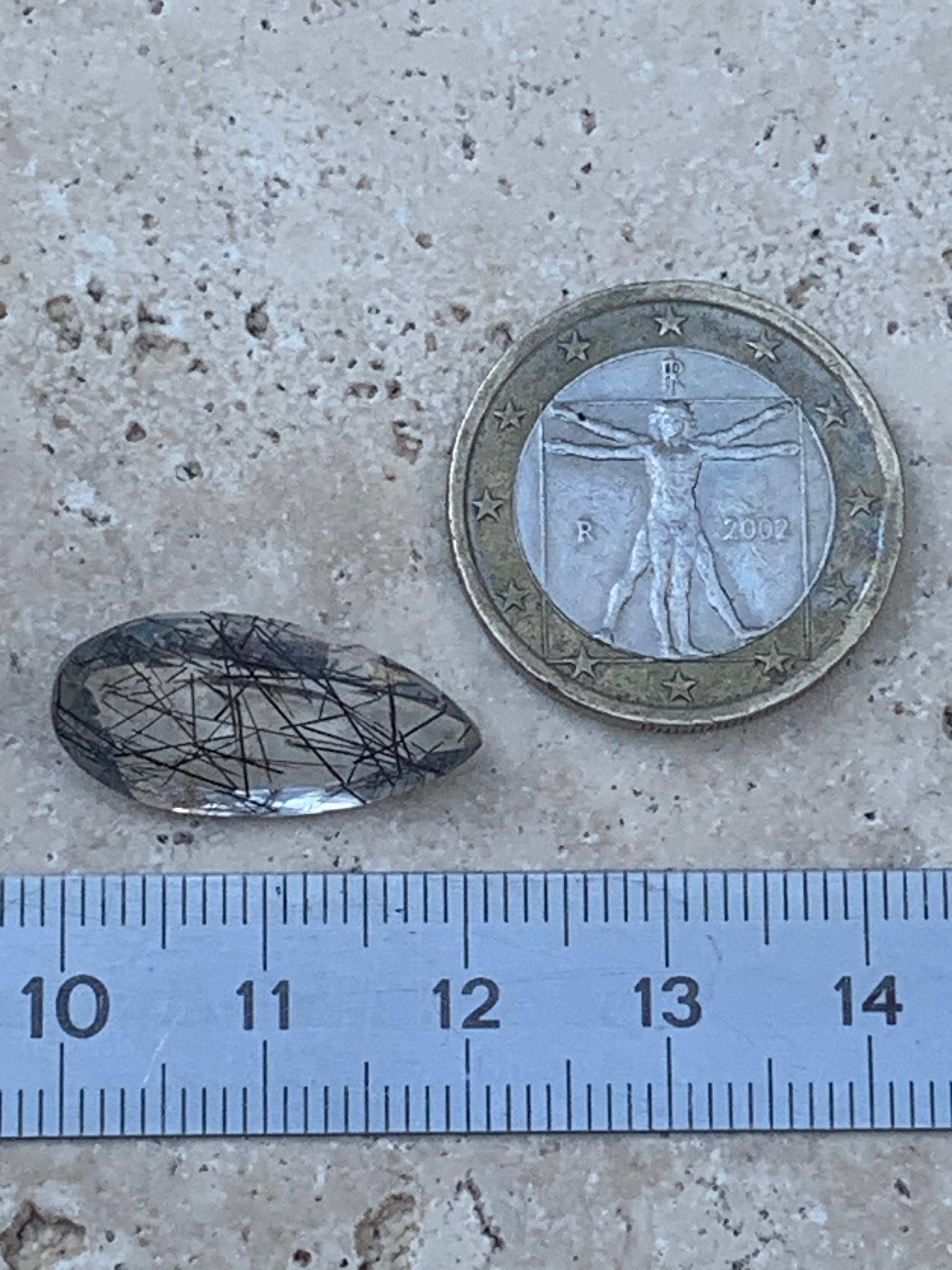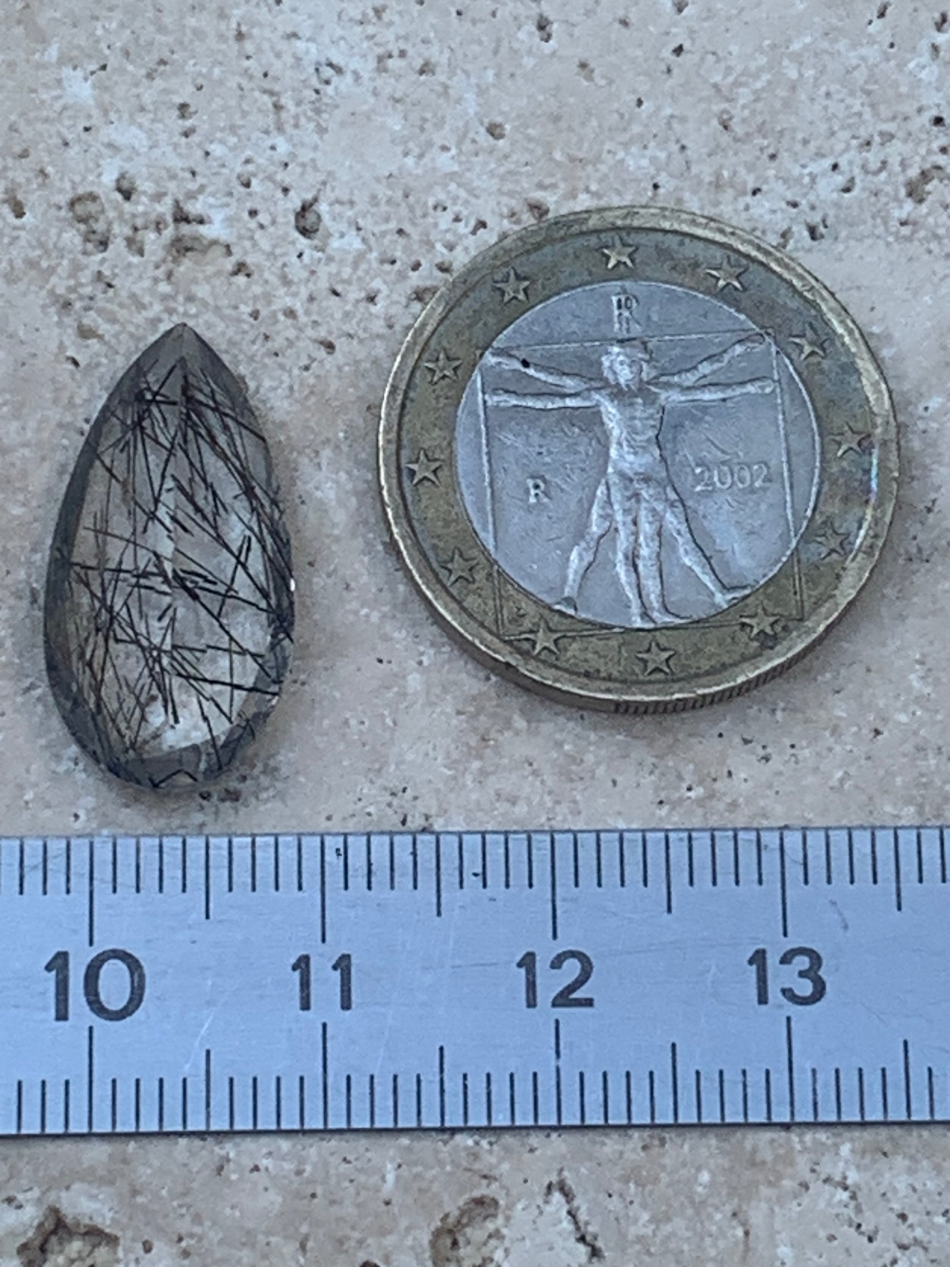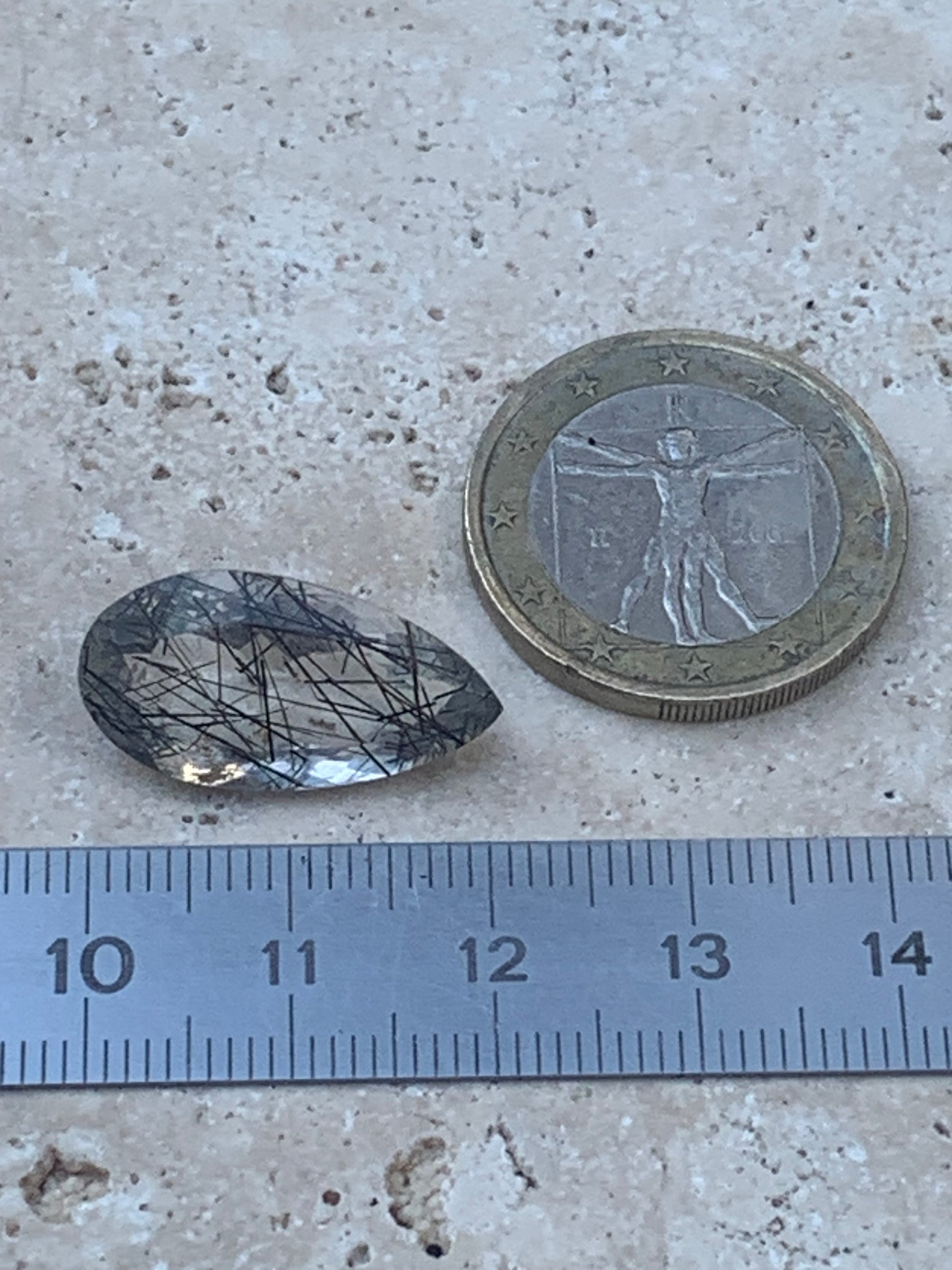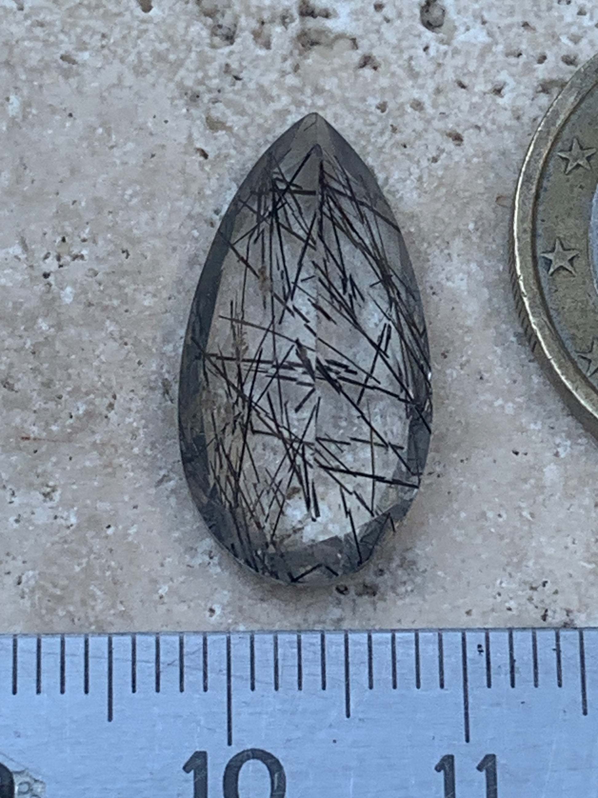 Cristal de roche/ quartz tourmaline noire, pierre taillée de 21mm x12 x 7 - 9 carats. Parfait en bijouterie, collection ,exposition, etc