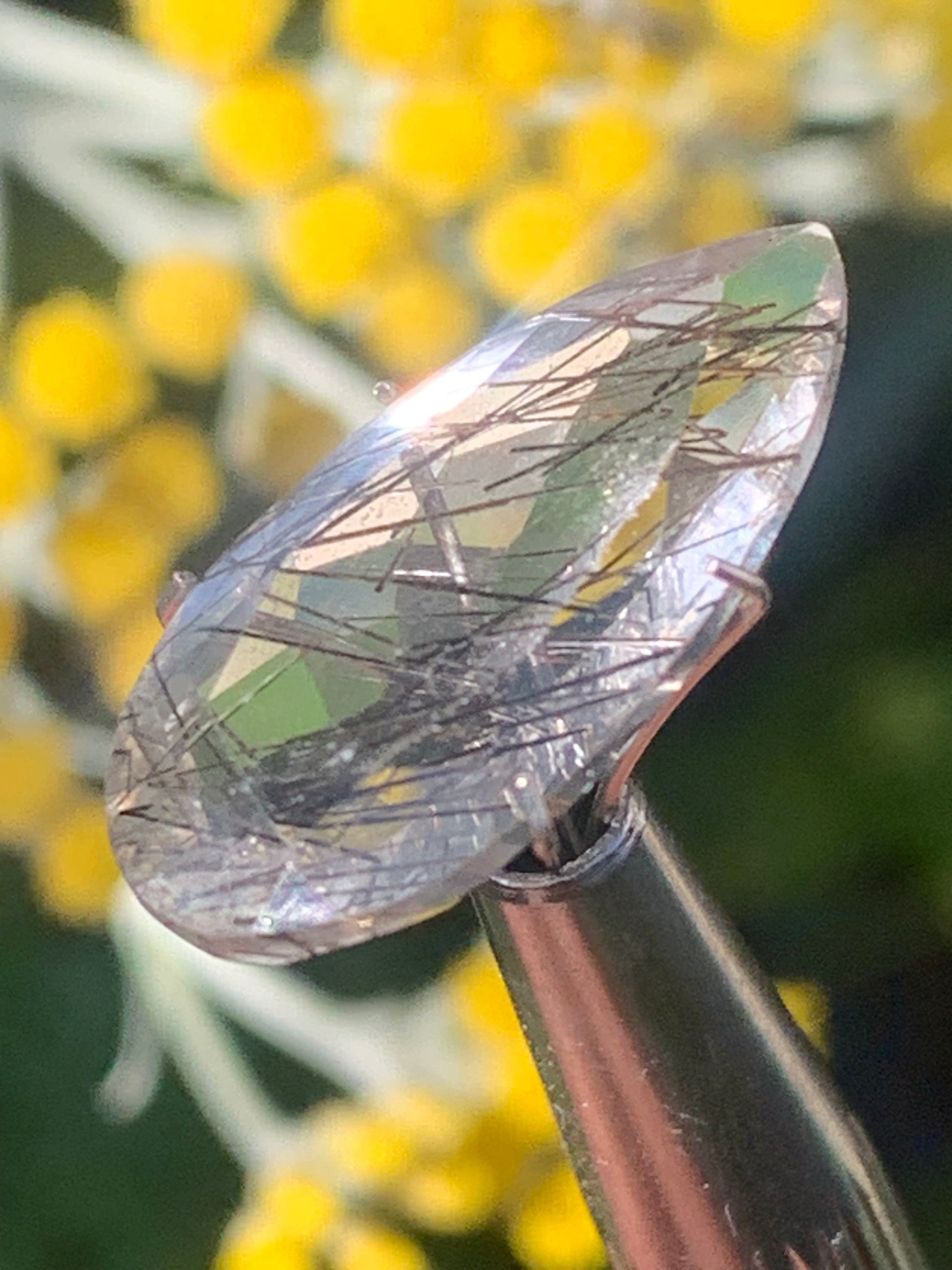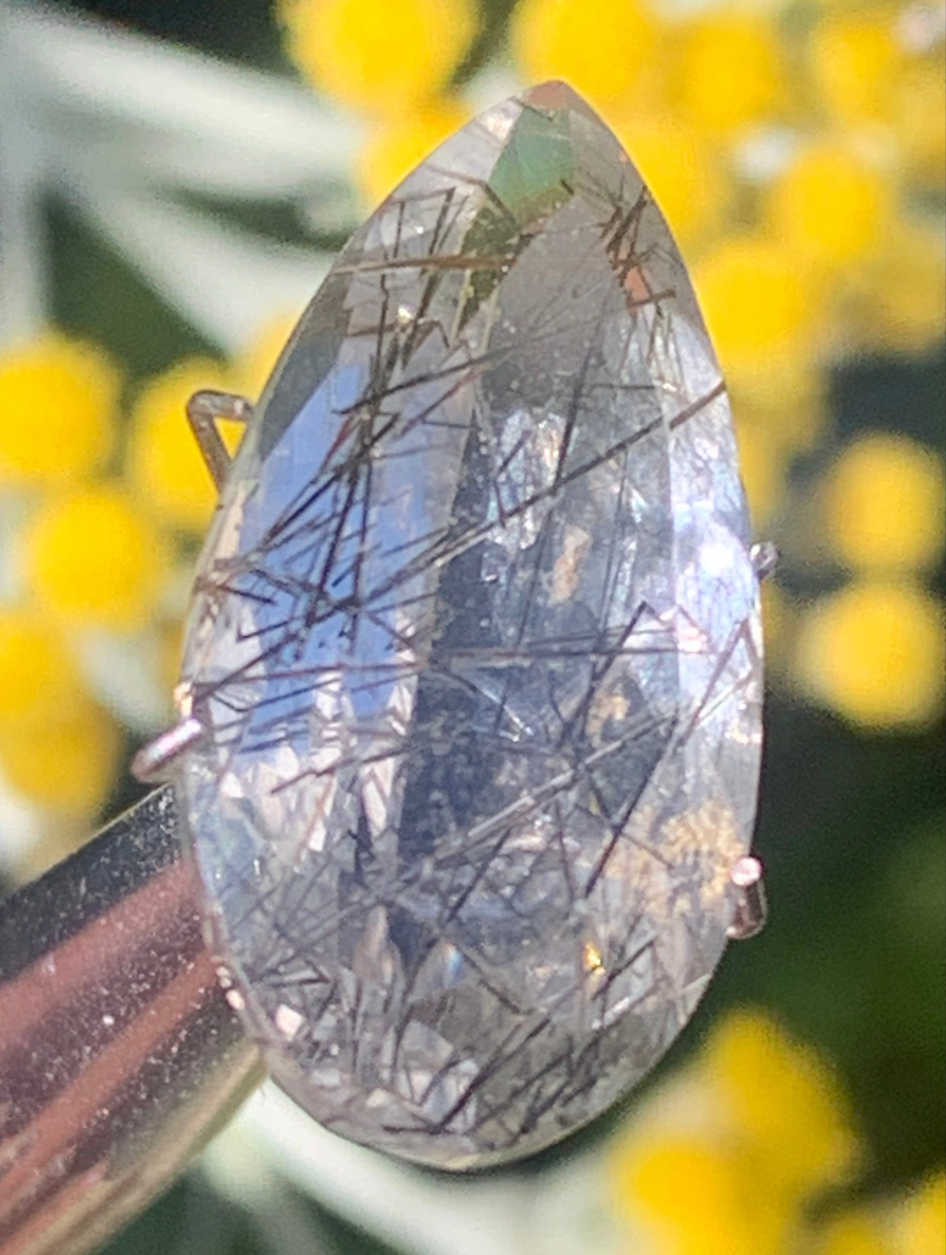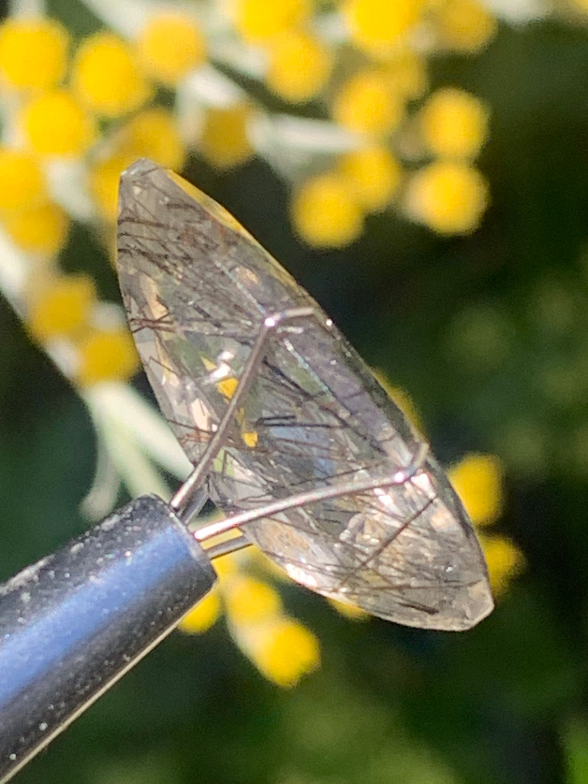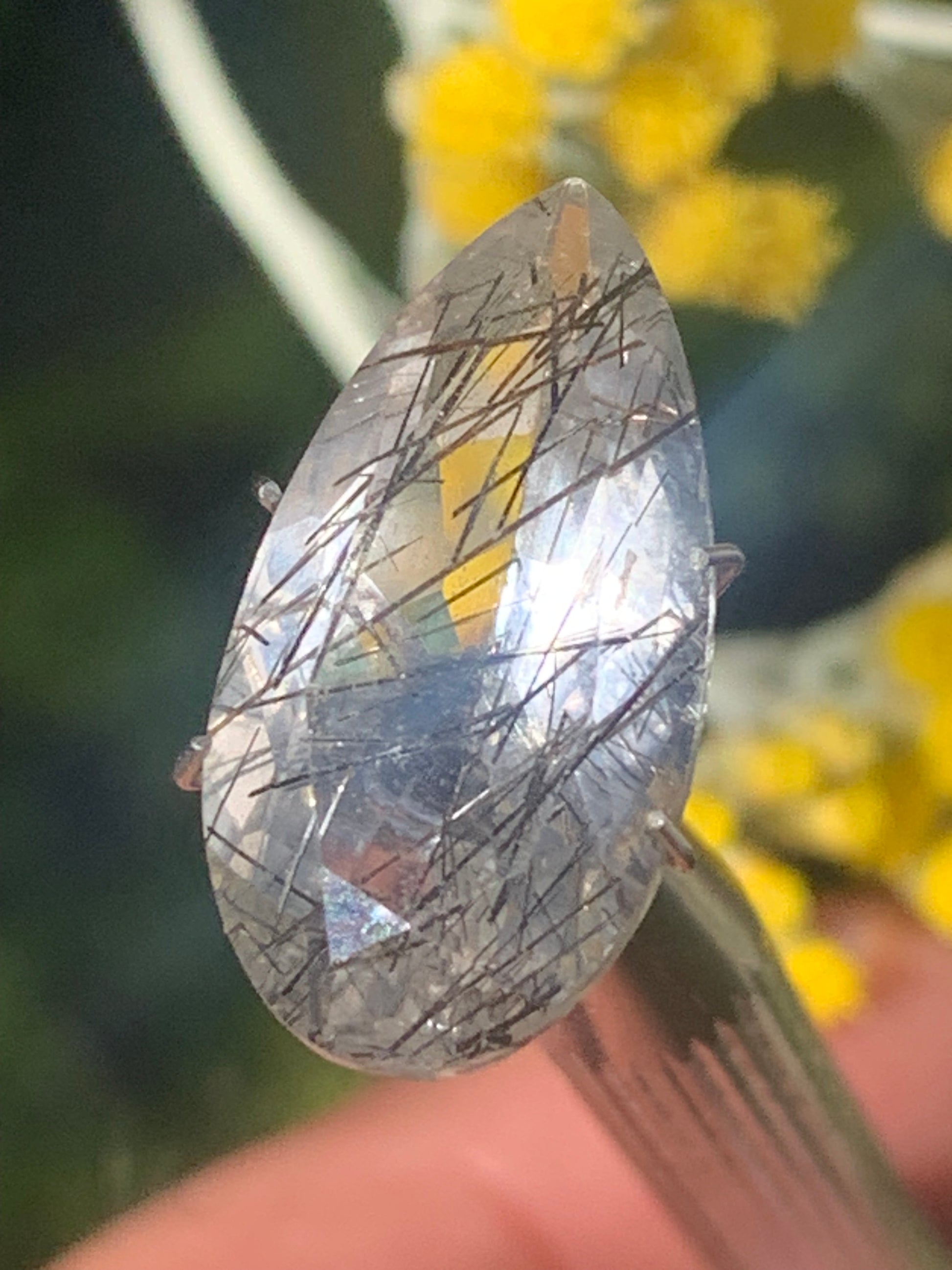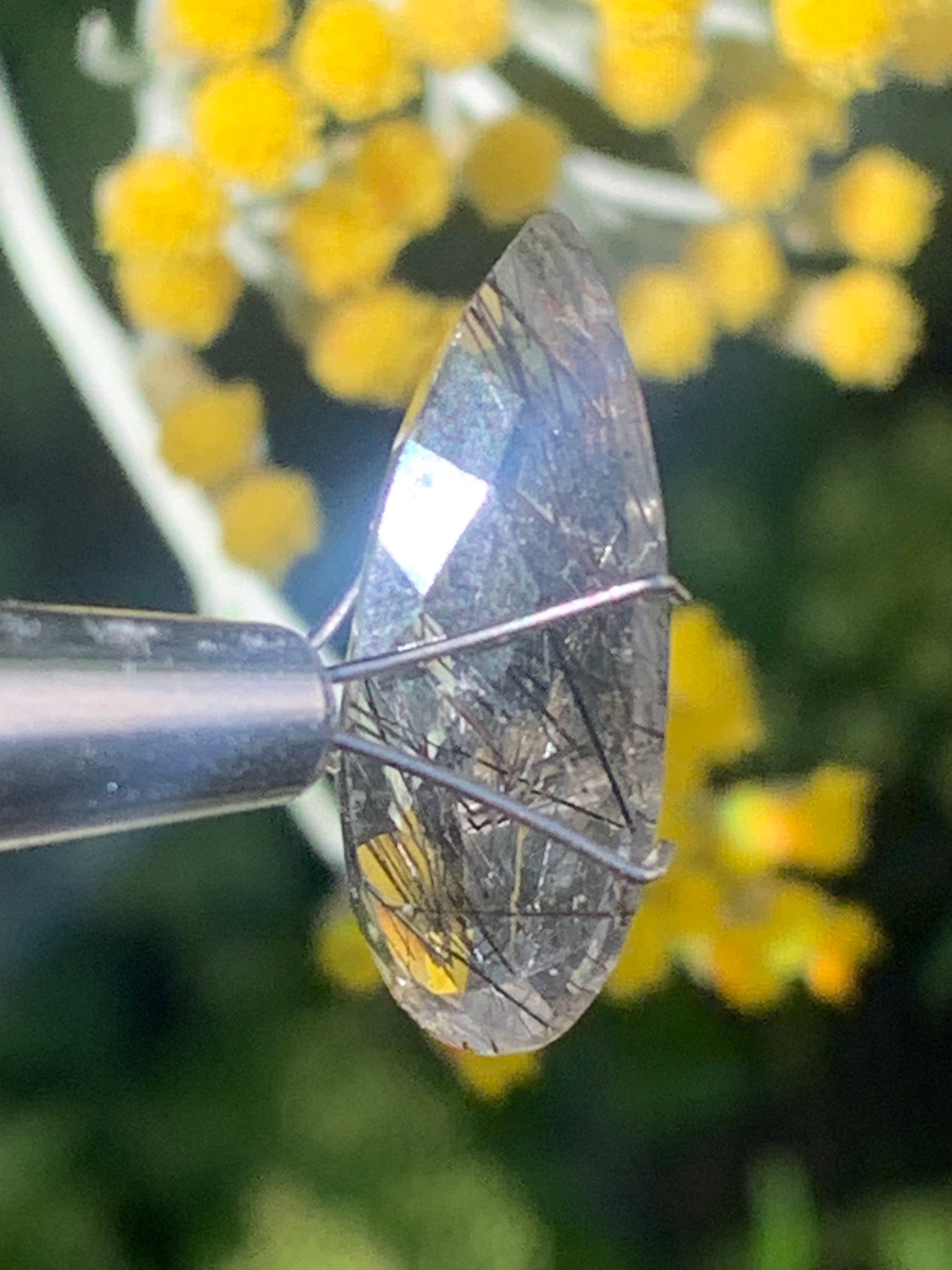 Cristal de roche/ quartz tourmaline noire, pierre taillée de 21mm x12 x 7 - 9 carats. Parfait en bijouterie, collection ,exposition, etc