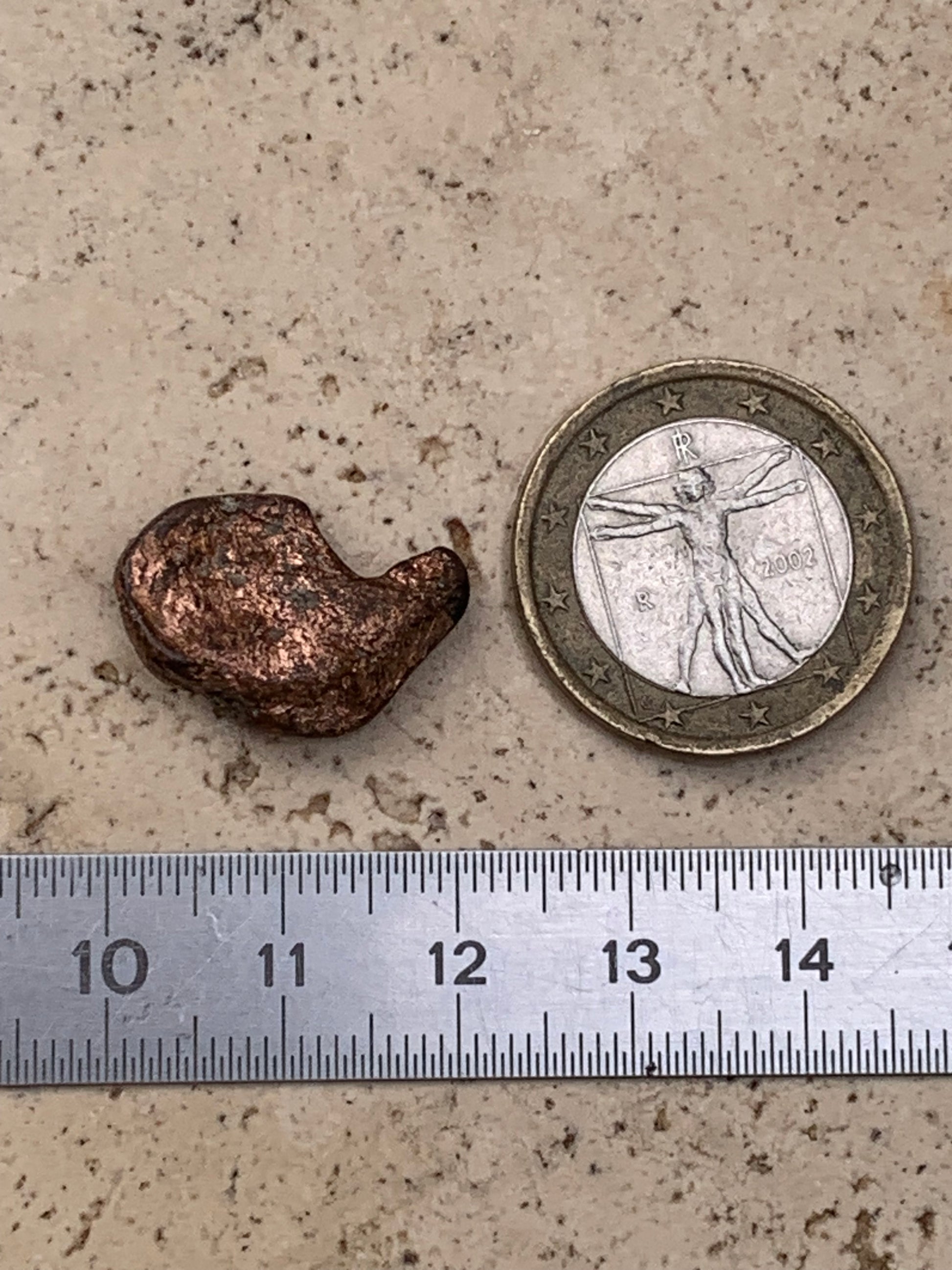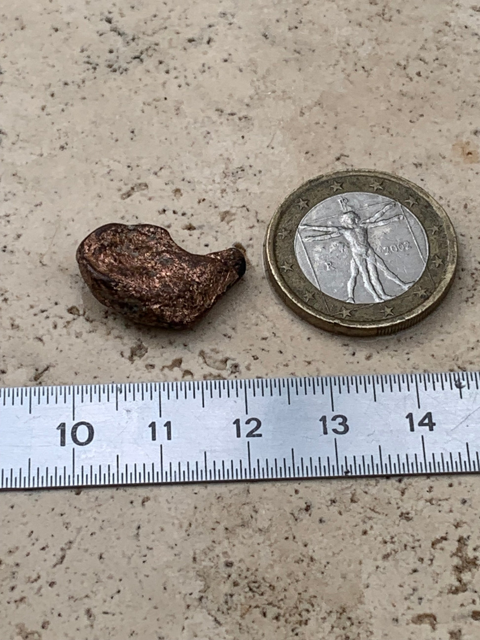 Cuivre natif, pépite naturelle de 20mm de long x14 x6 - 5,8 grammes. Parfait pour collection, exposition...