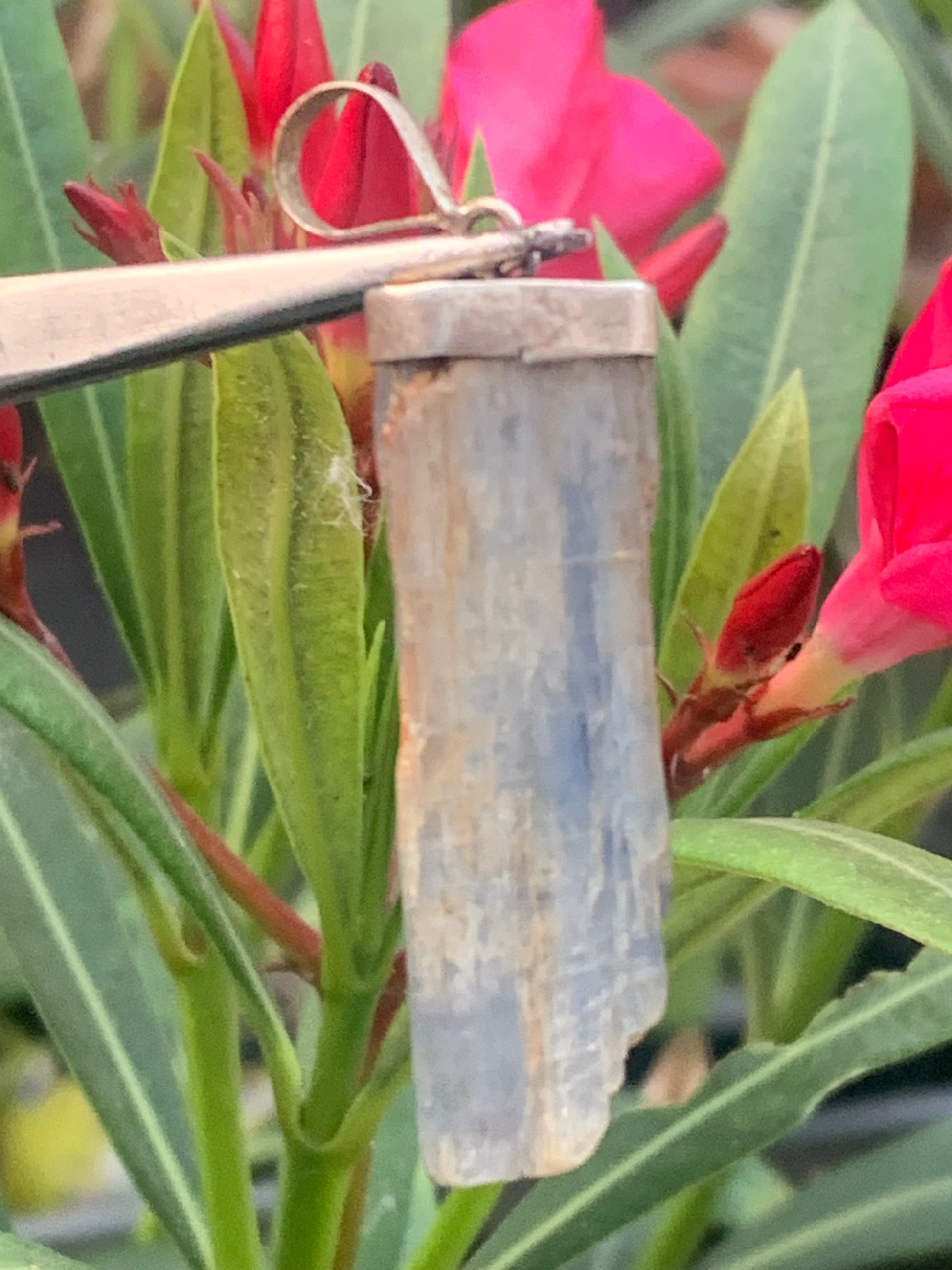 Cyanite disthène, pendentif de 60 millimètres x14x2. Vendu avec ou sans cordon noir et réglable de 60 cm !