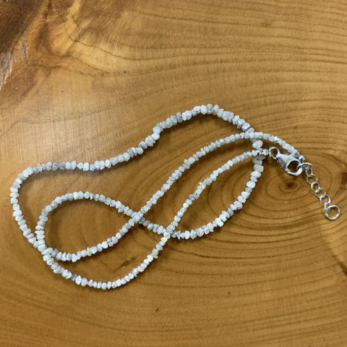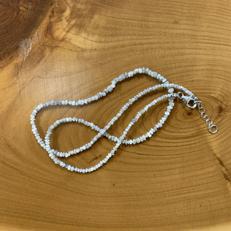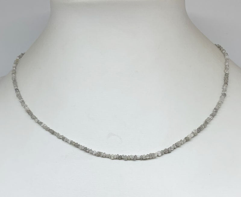 Diamant brut et naturel (diamant gris clair), perles facettées de 2/3 millimètres ! En bracelet de 17 à 19 cm ou en collier de 44 cm. Qualité AA à AAA !