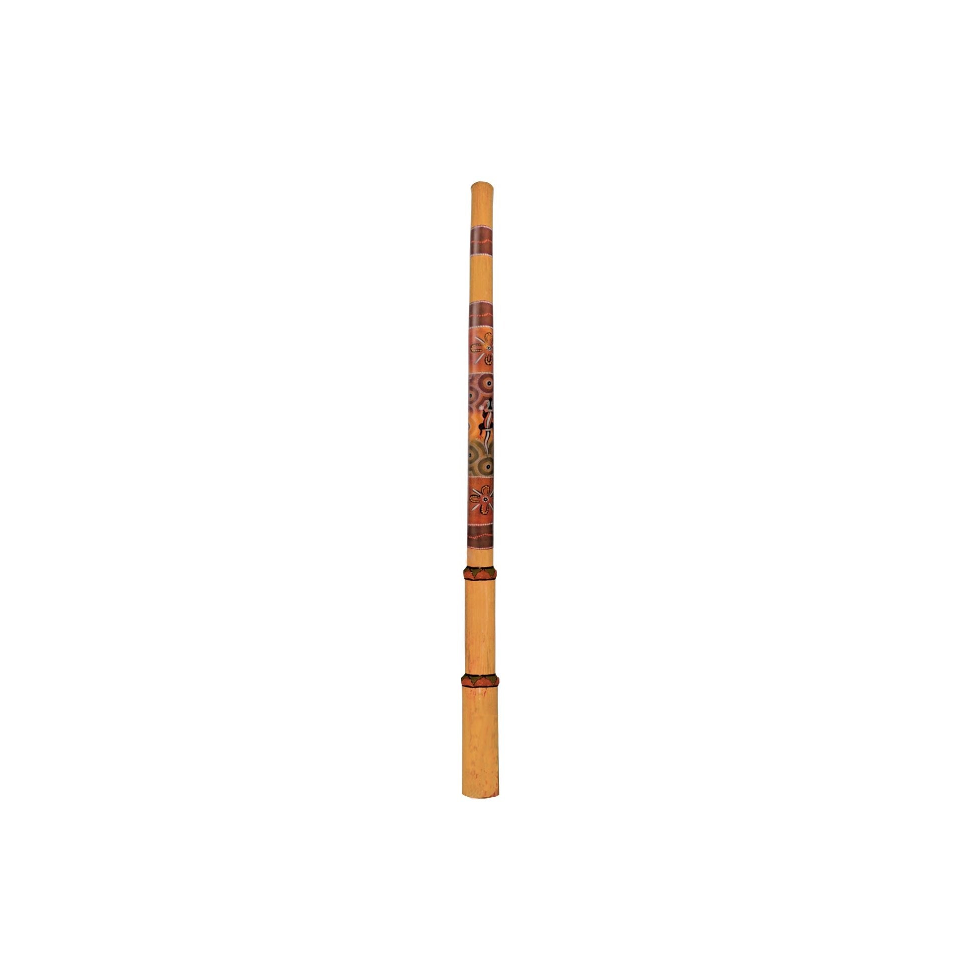 Didgeridoo en bambou avec décoration authentique. Modèle à coulisse/ téléscopique afin de régler la note, taille 1,20 m - 0,85 kgs. Parfait pour les voyages, très léger !