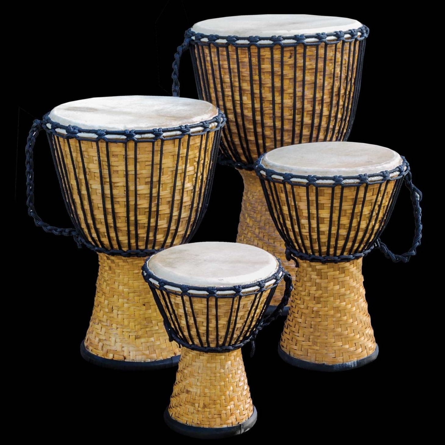 Djembé en bambou, 3 tailles au choix : de 30, 50 ou 60 cm - 1 ou 3 ou 3,5 kg. Recouvert de peau de chèvre ! Très bonne qualité, très léger, parfait pour le transport !