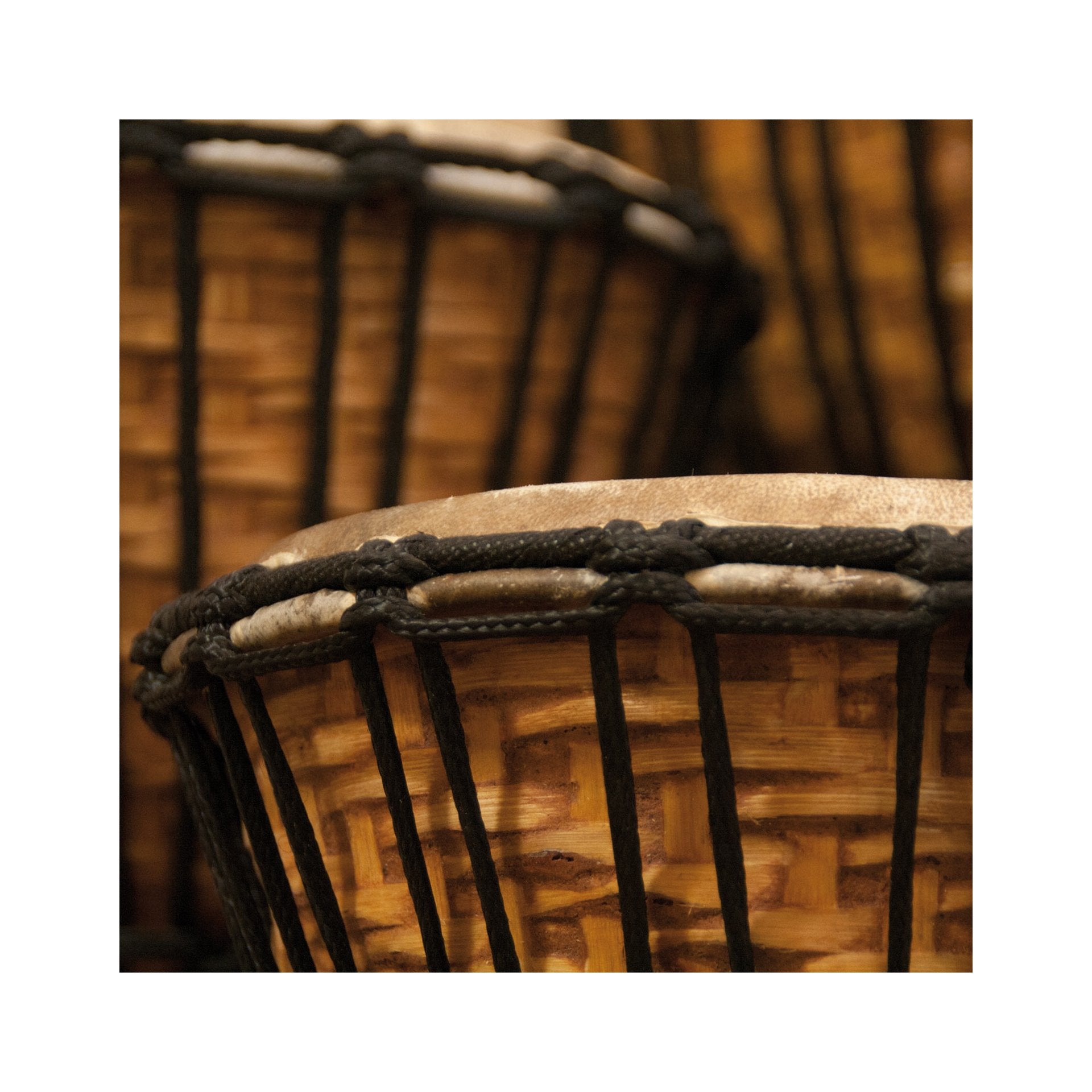 👉 Le corps de ce djembé est constitué de fibres de bambou perforées et recouvert de peau de chèvre à l'aide d'une cordelette multicouche nylon-polyester alpin.
