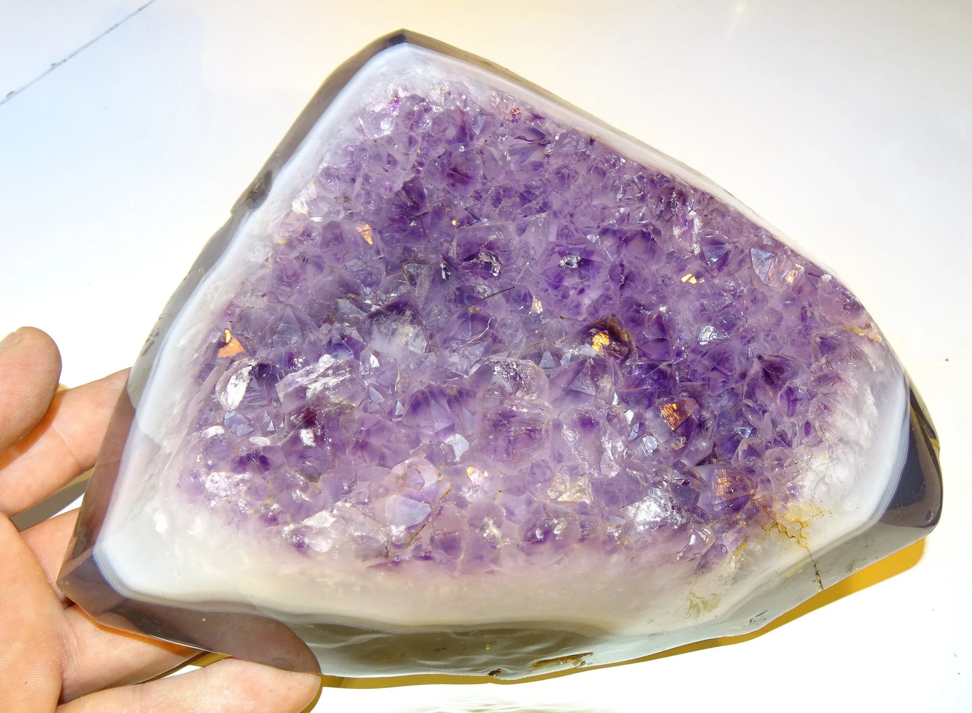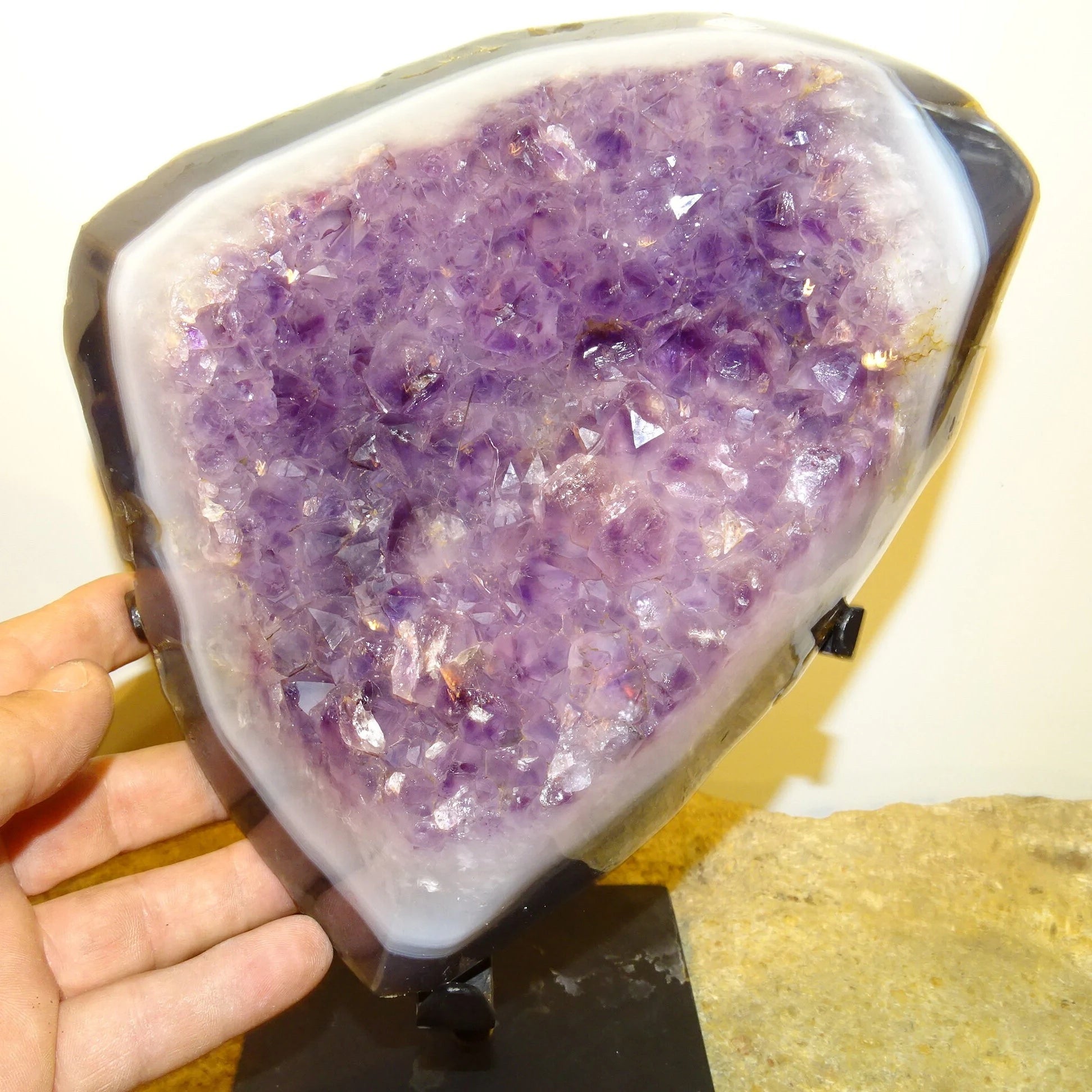 Druses en améthyste avec contours polis en agate, 4.3 kilogrammes - 20x20x14 centimètres. Vendu avec socle en métal sur mesure. Superbe qualité AA, en provenance du Brésil !