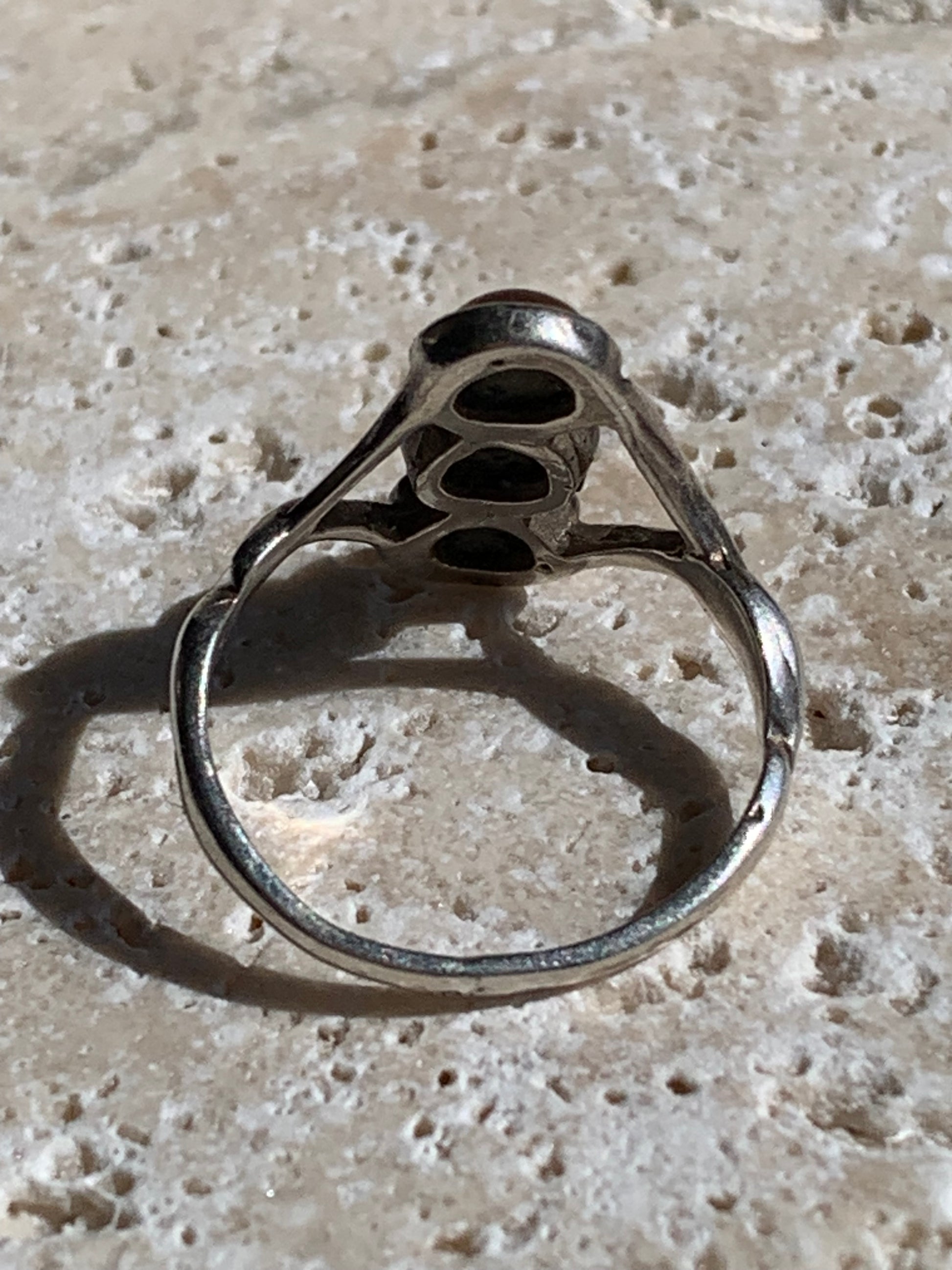 📐 Dimensions : Surface de la table/ tête : pierre seule 7 x 4 millimètres de hauteur x 3 pierres - Largeur de l'anneau : 2,5 millimètres - Épaisseur : 1,5 millimètre