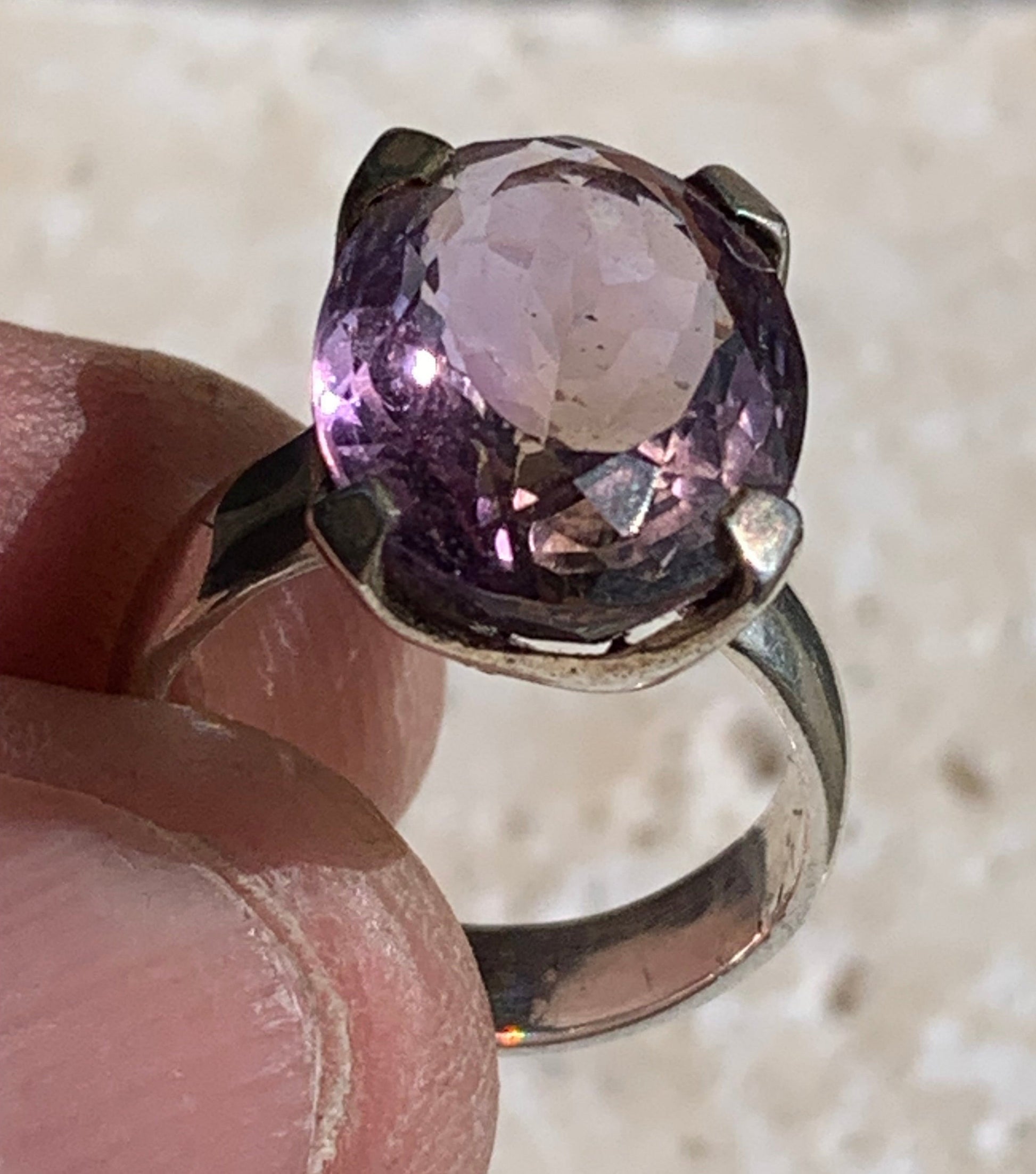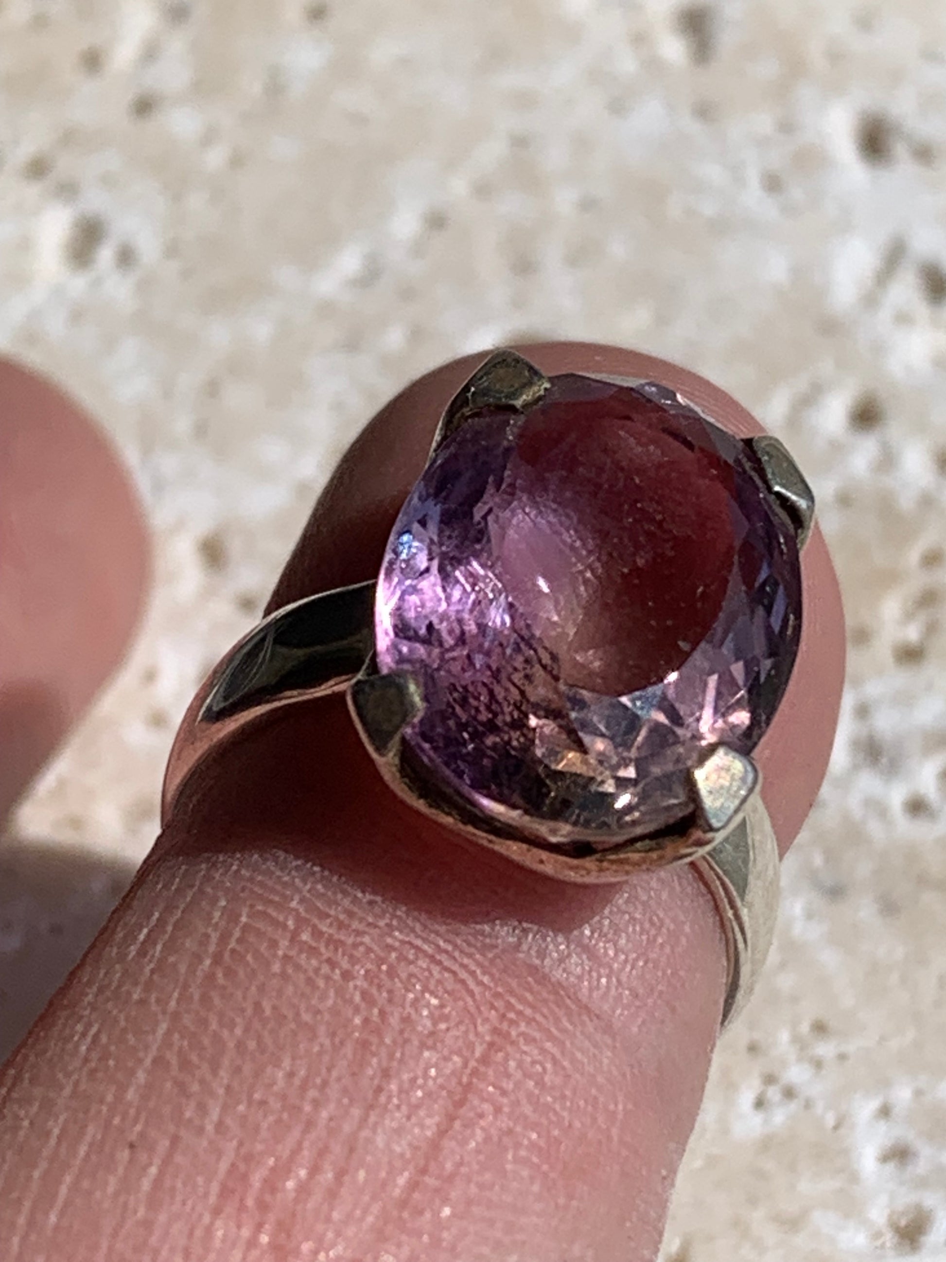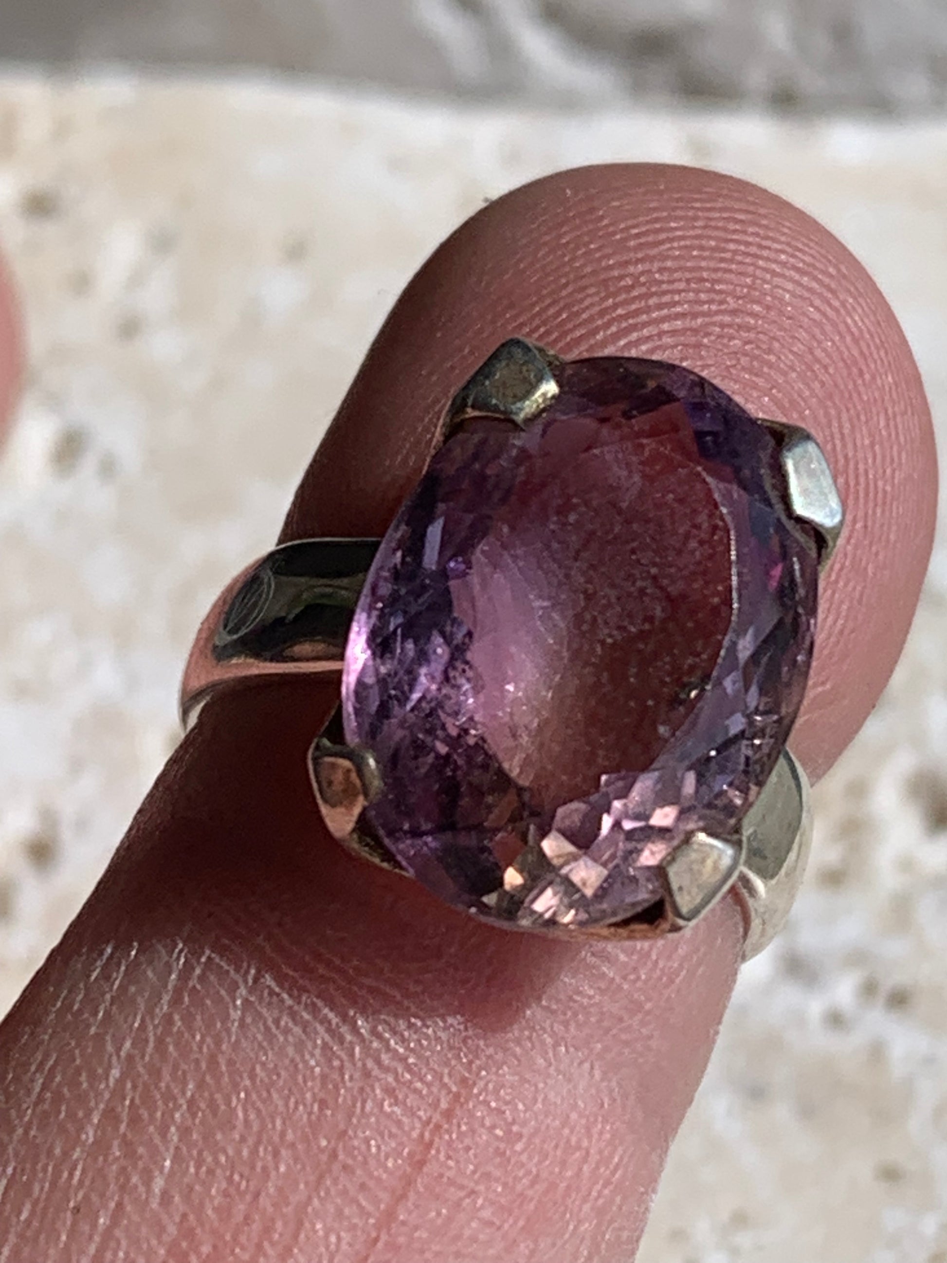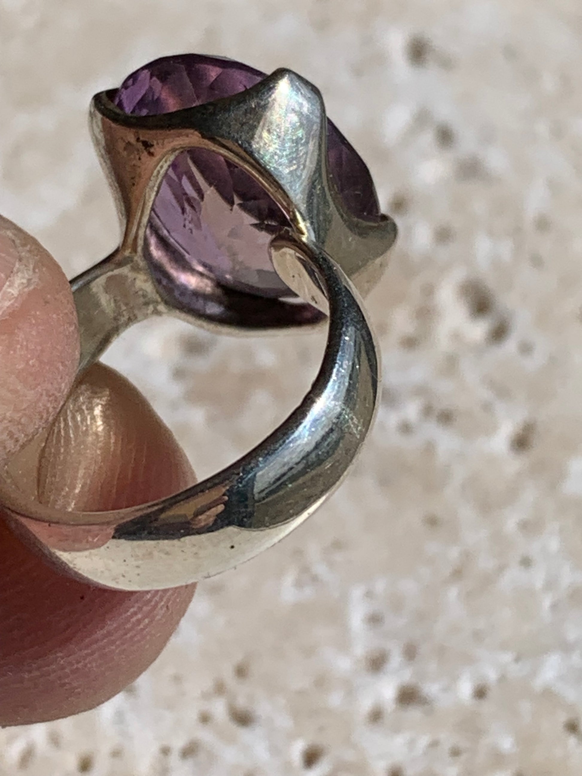 Superbe bague en Améthyste (pierre à facettes), sur monture en métal Argent 0.925 ! Superbe pierre, très belle réalisation. Réglable de 52 à 57 fr !