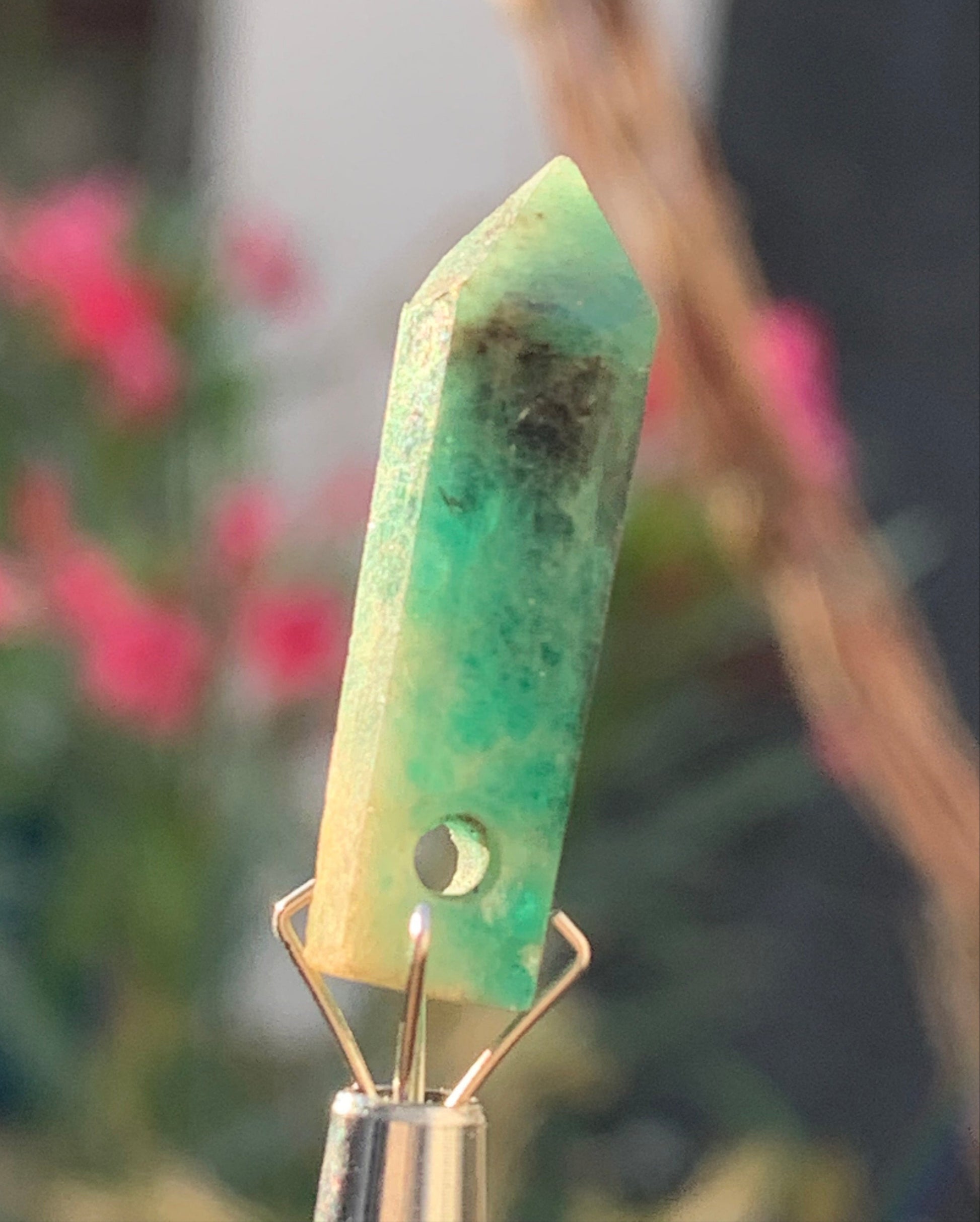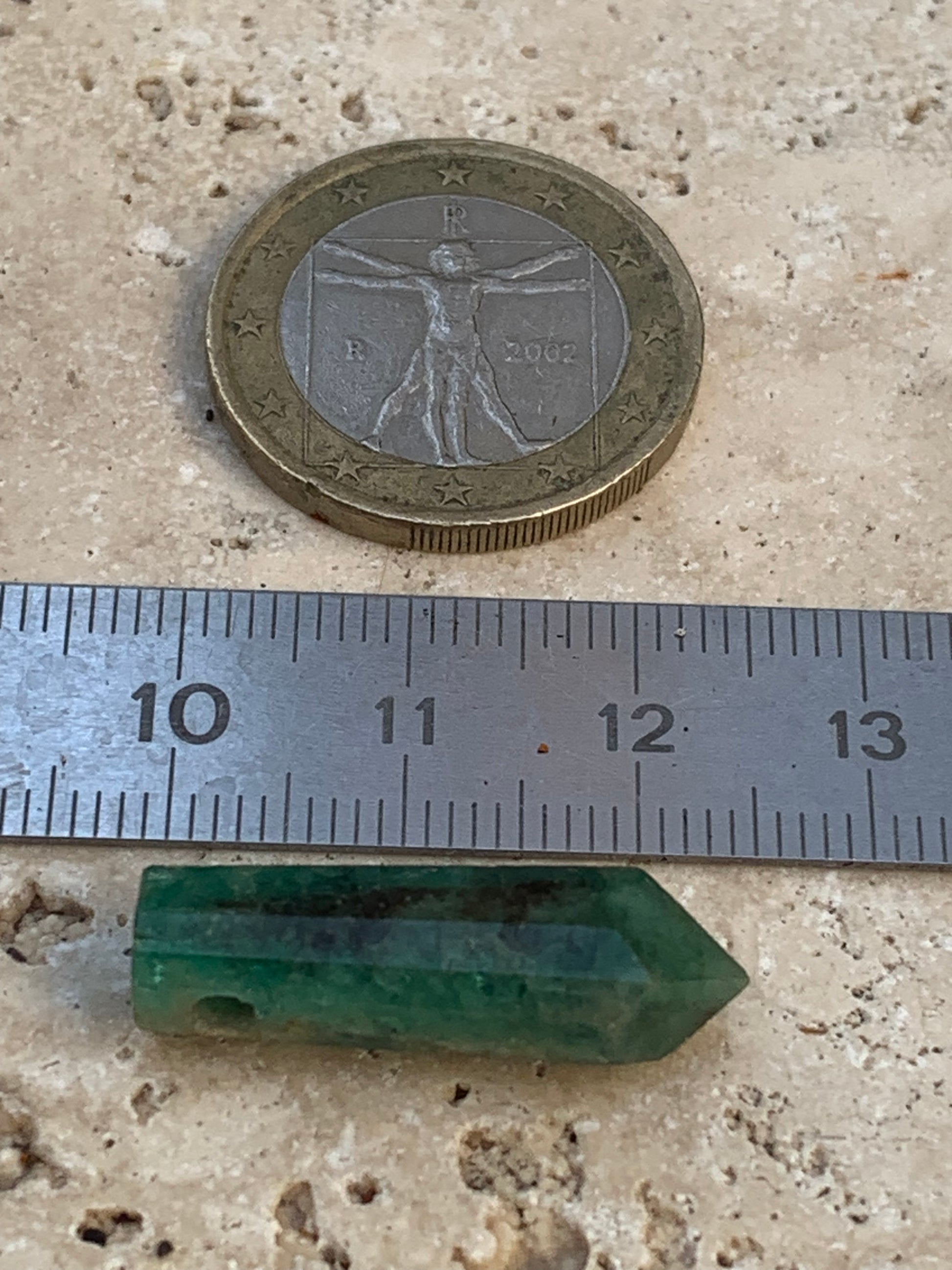 Émeraude, cristal taillé et percé de 25mm x8 x7 - 11,5 carats. Parfait en collection, bijouterie, exposition...